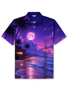 Alohadaddy® Hawaiian Night Beach Print Button Oversized Short Sleeve Polo Shirt