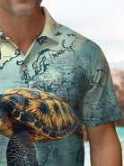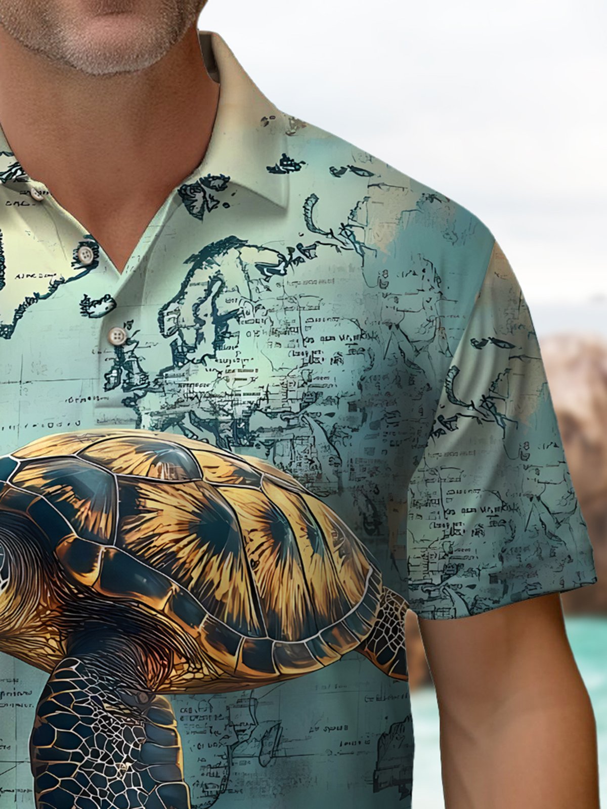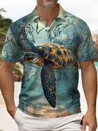 Alohadaddy® Hawaiian Sea Turtle Nautical Art Print Men's Short Sleeve Polo Big & Tall