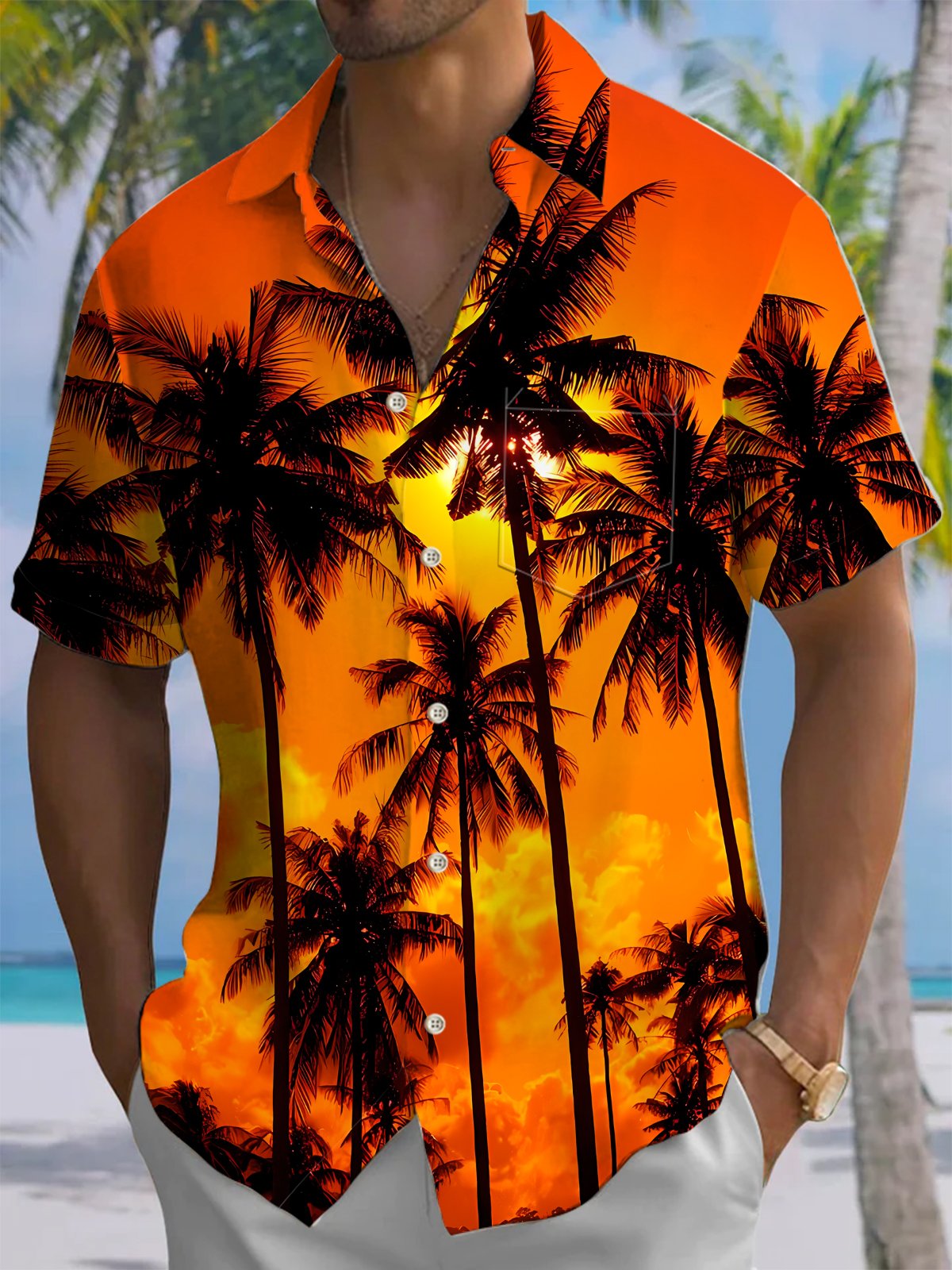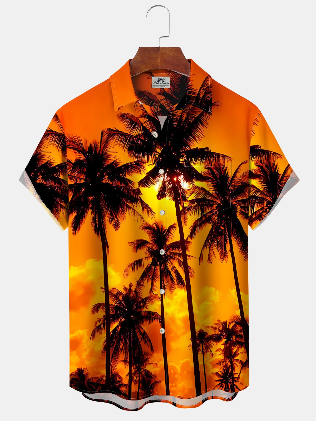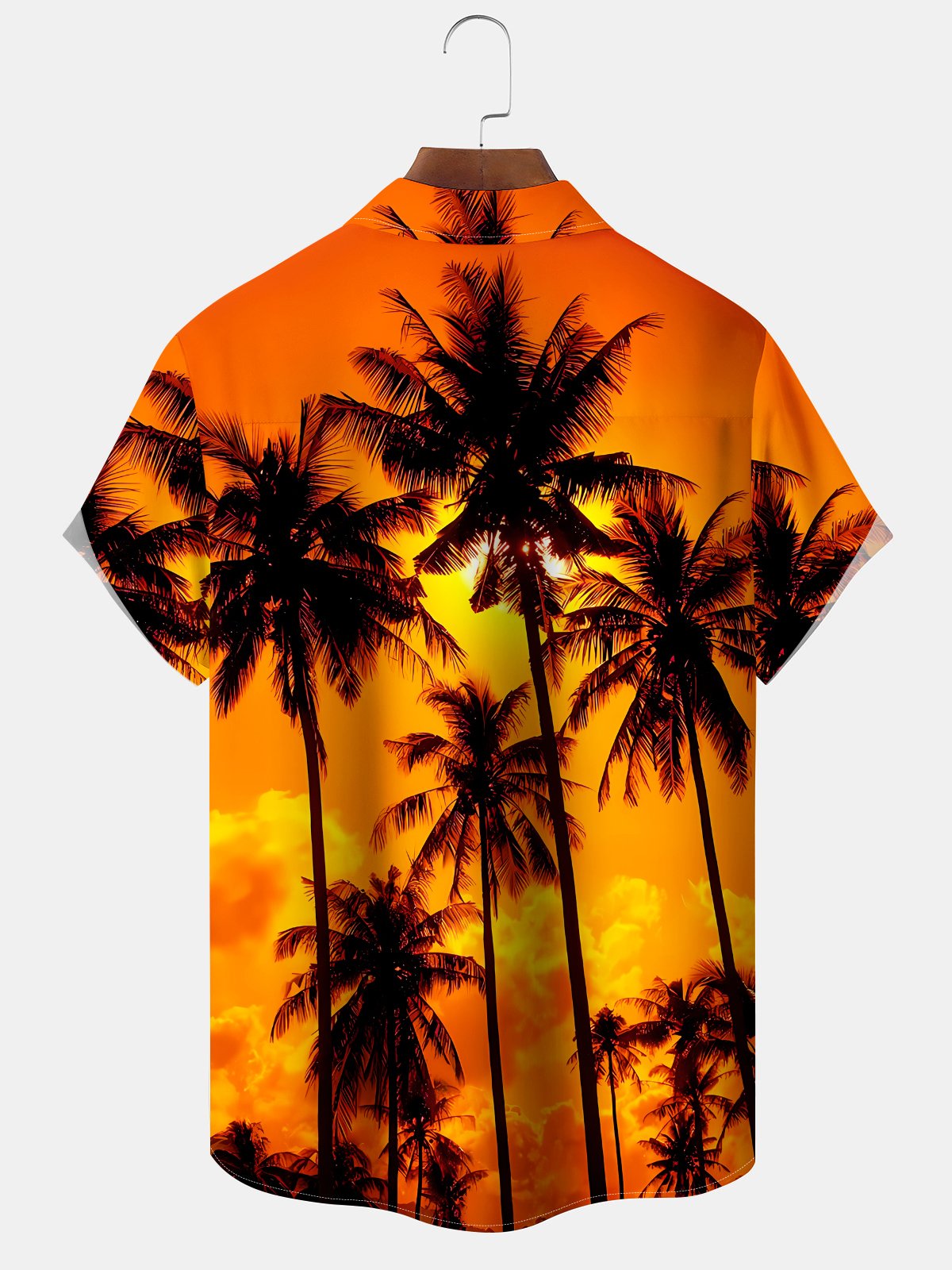 Alohadaddy® Palm Tree Sunset Chest Pocket Hawaiian Men's Short Sleeve Shirt Big & Tall