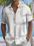 Alohadaddy Casual Collection Hawaiian Vacation Stripes Leaves Print Art Buttons Cardigan Pockets Fresh Stretch Polyester Short Sleeve Shirt