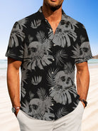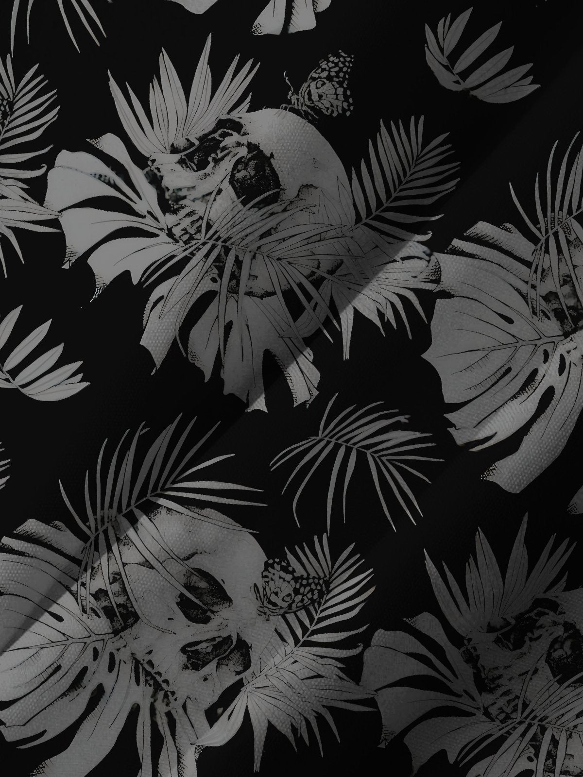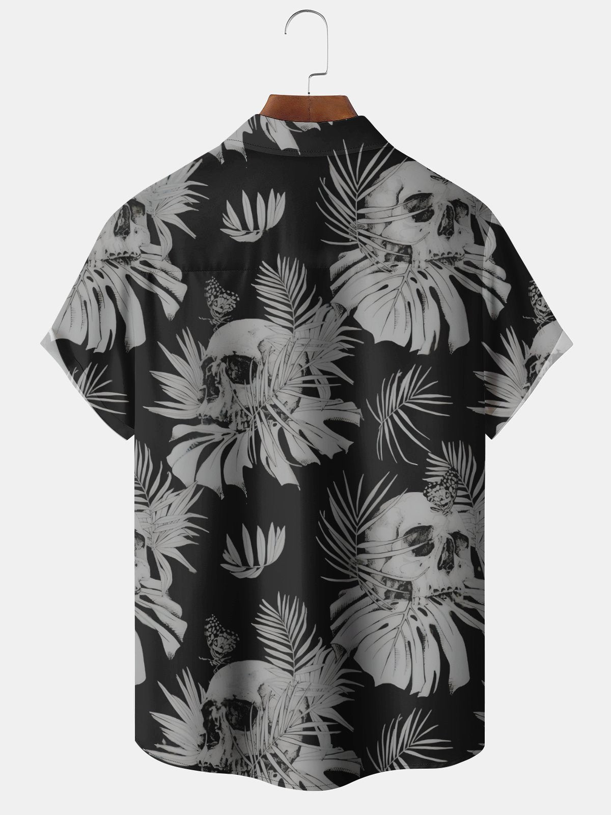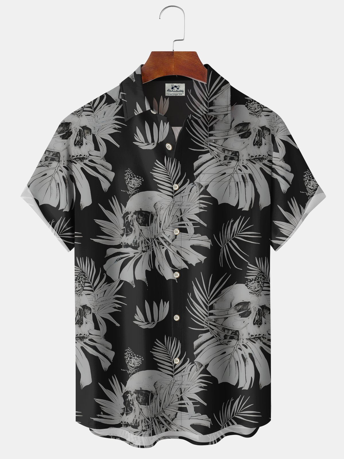 Alohadaddy Hawaii Skull Palm Leaves Painting Art Buttons Cardigan Pockets Stretch Large Size Long Short Sleeve Shirt