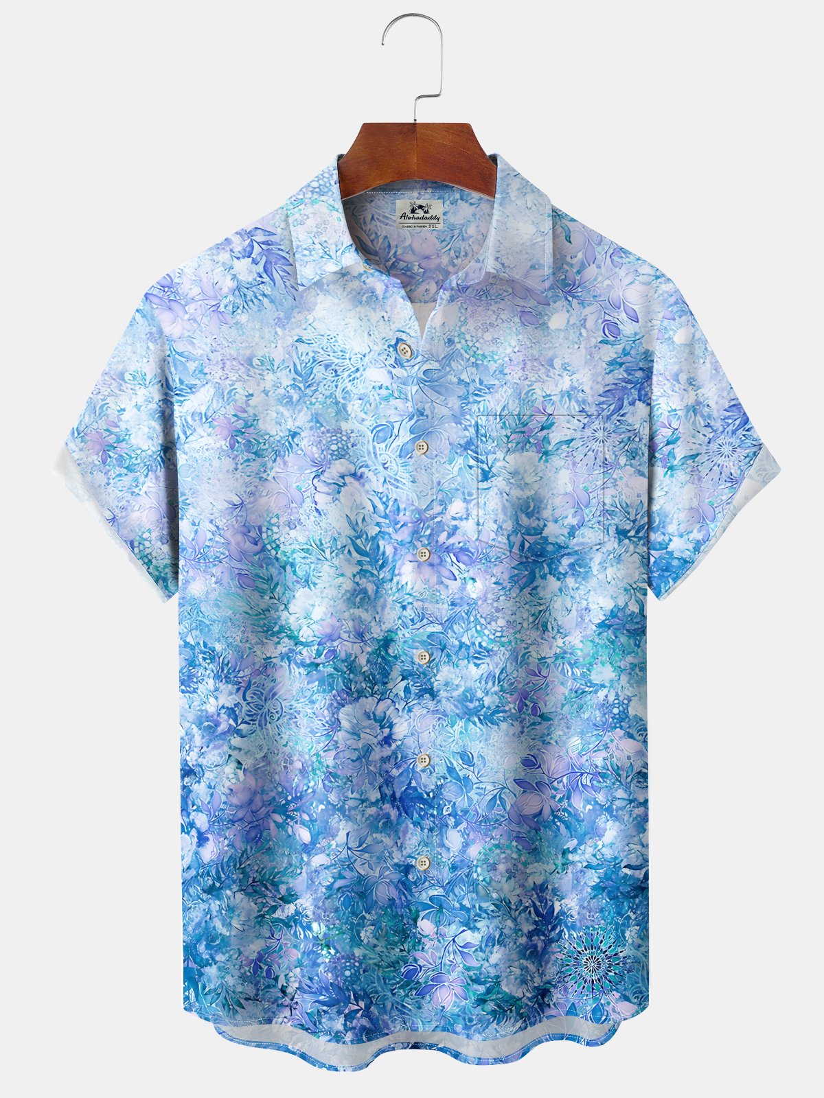 Alohadaddy Hawaiian Flowers Gradient Print Art Button Cardigan Pockets Breathable Soft Long Large Size Short Sleeve Shirt