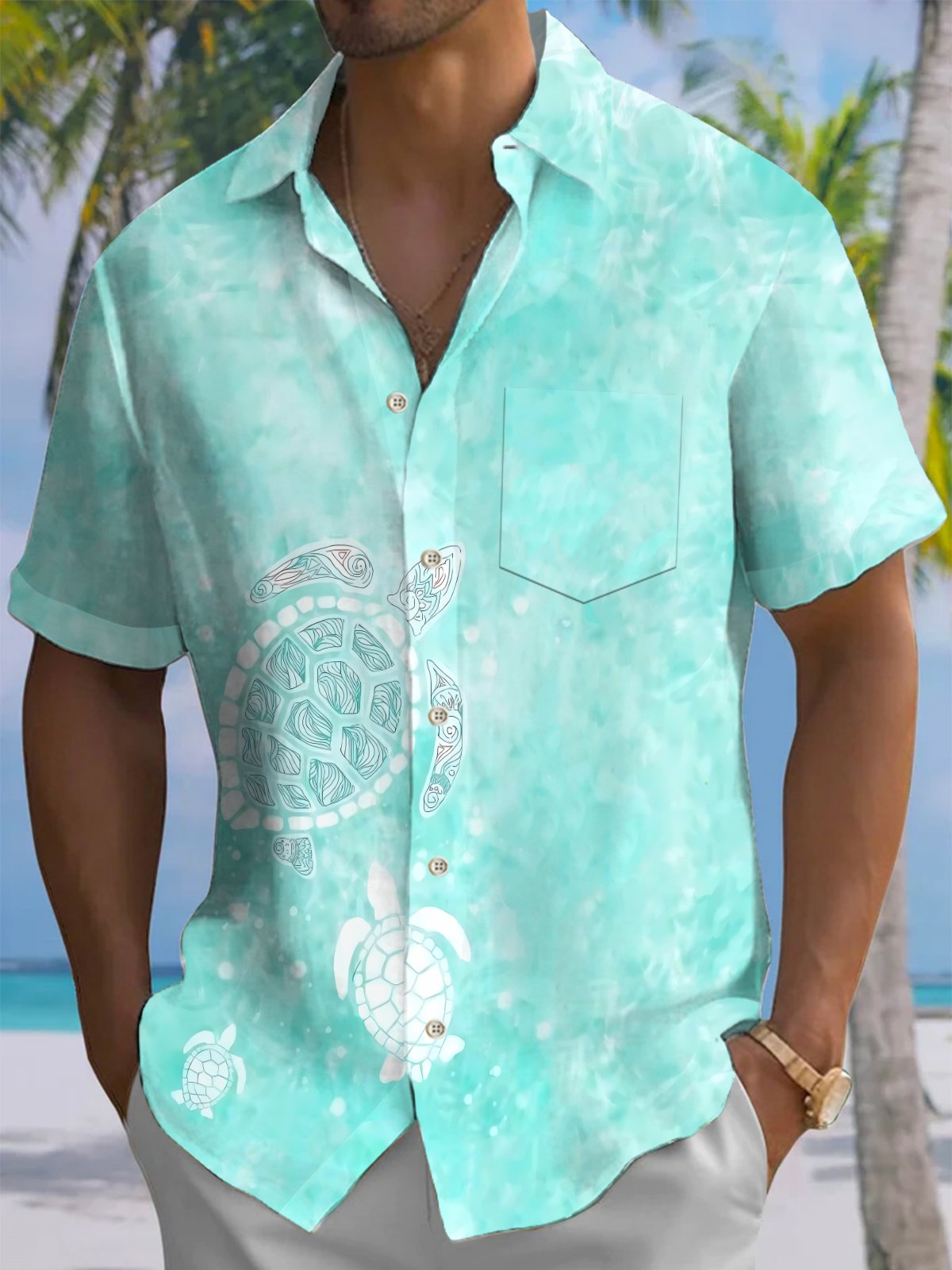 Alohadaddy® Casual Turtle Stretch Pocket Button Men's Short Sleeve Shirt Big & Tall