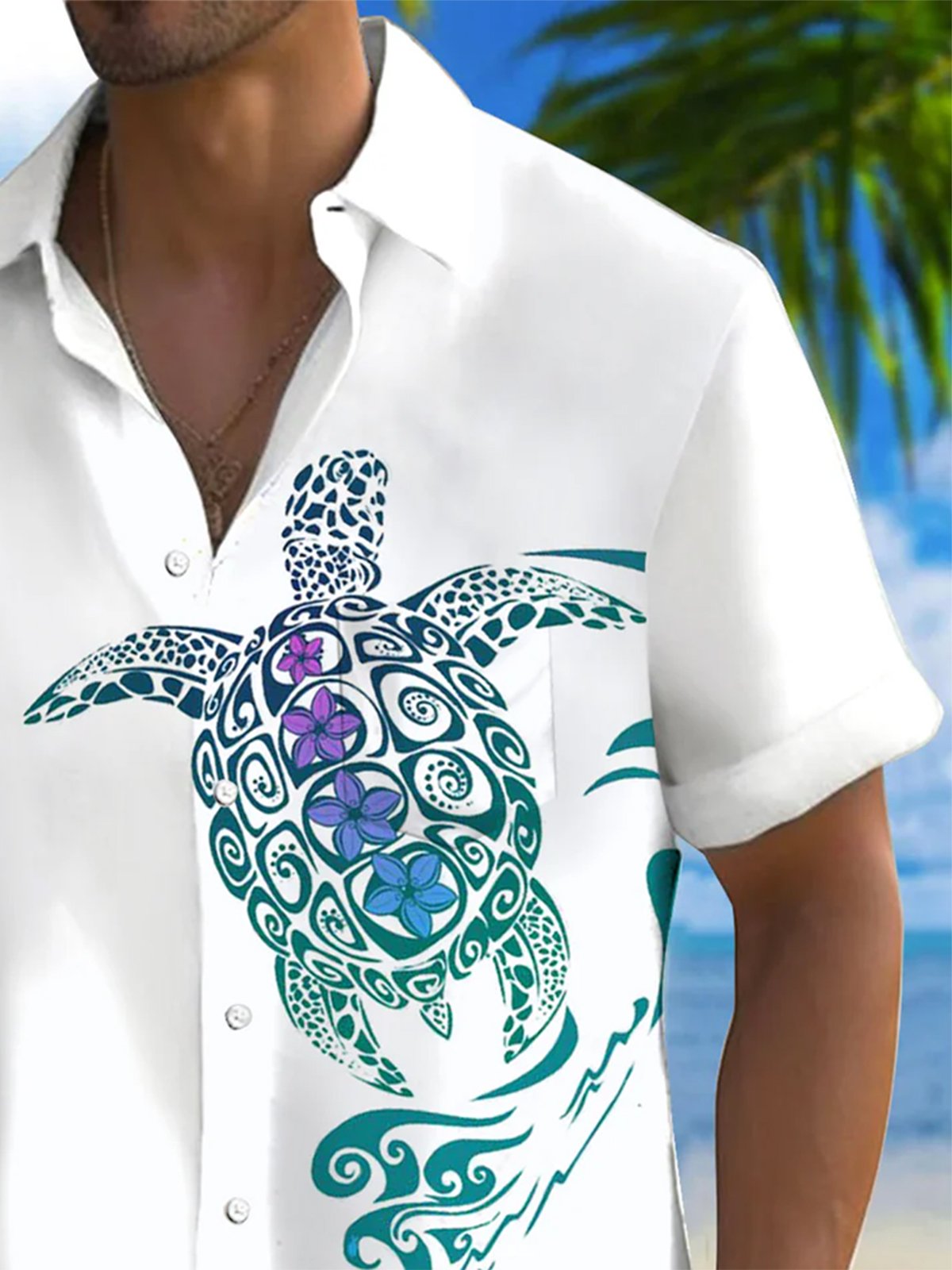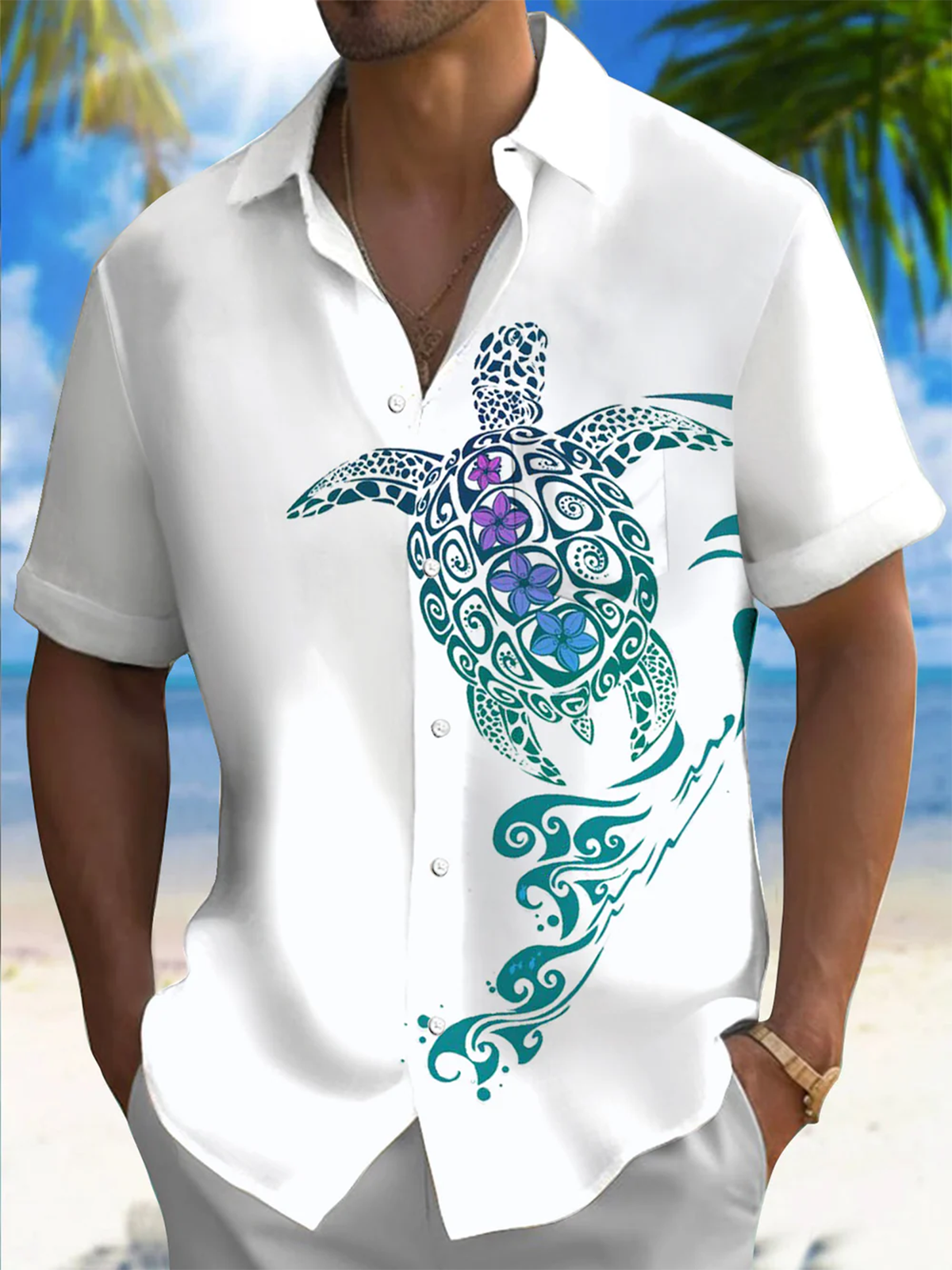 Alohadaddy® Hawaiian Turtle Art Print Chest Pocket Mens Short Sleeve Shirts Big & Tall