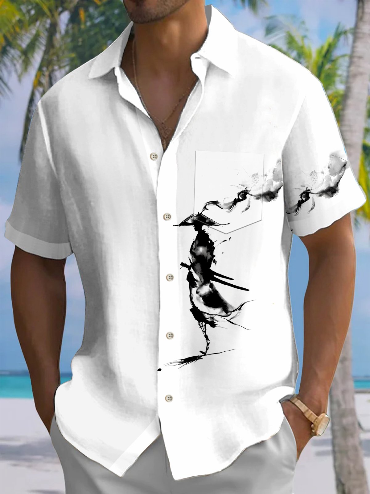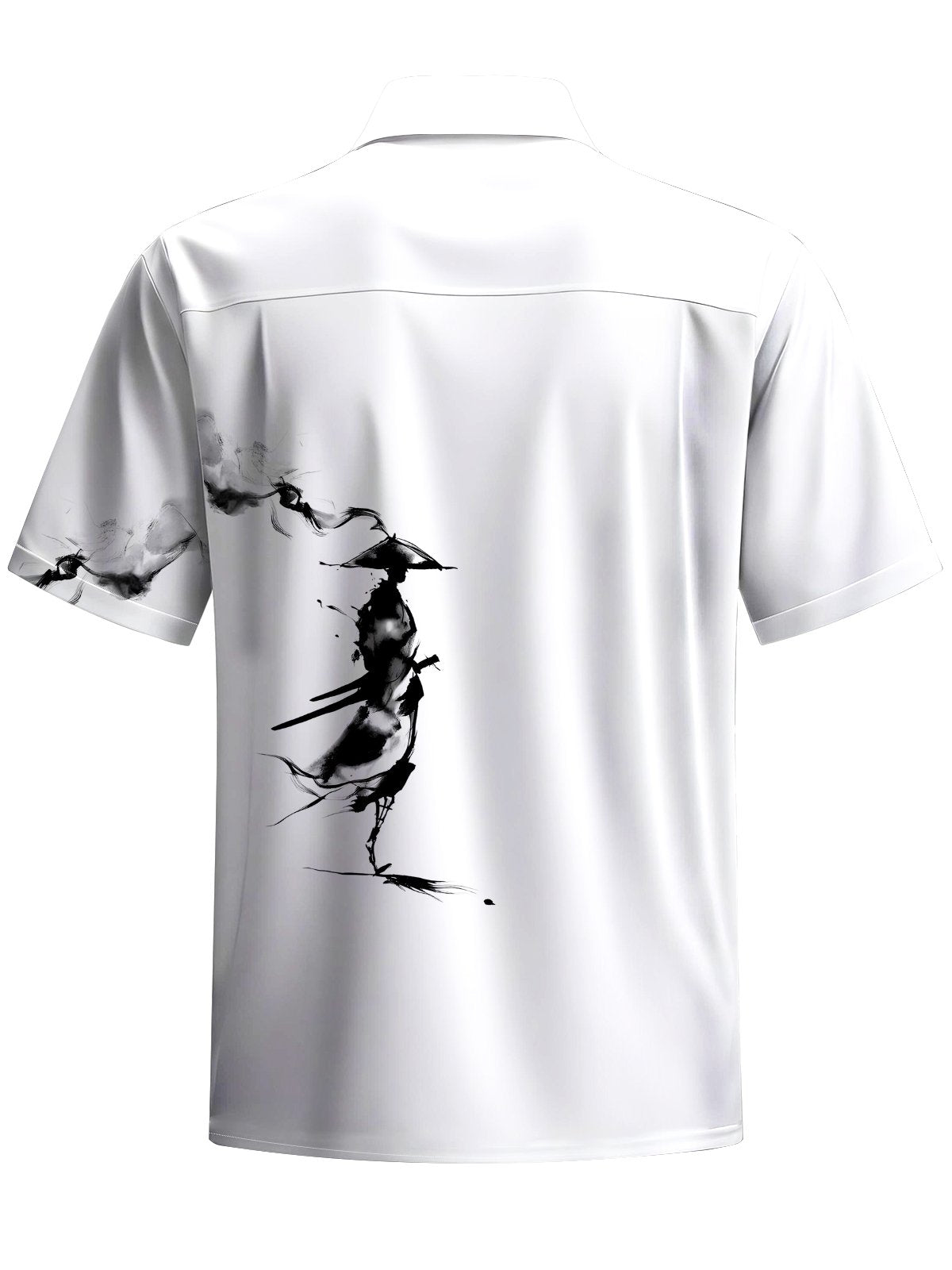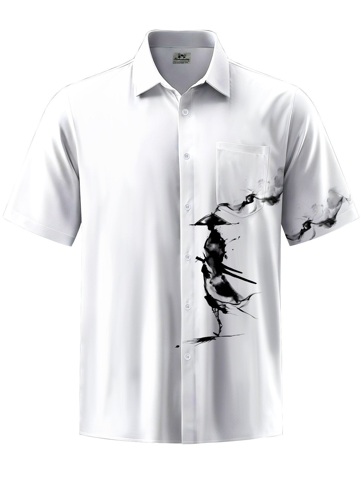 Alohadaddy® Casual Painting Knight Print Art Chest Pocket Men's Short Sleeve Shirt Big & Tall