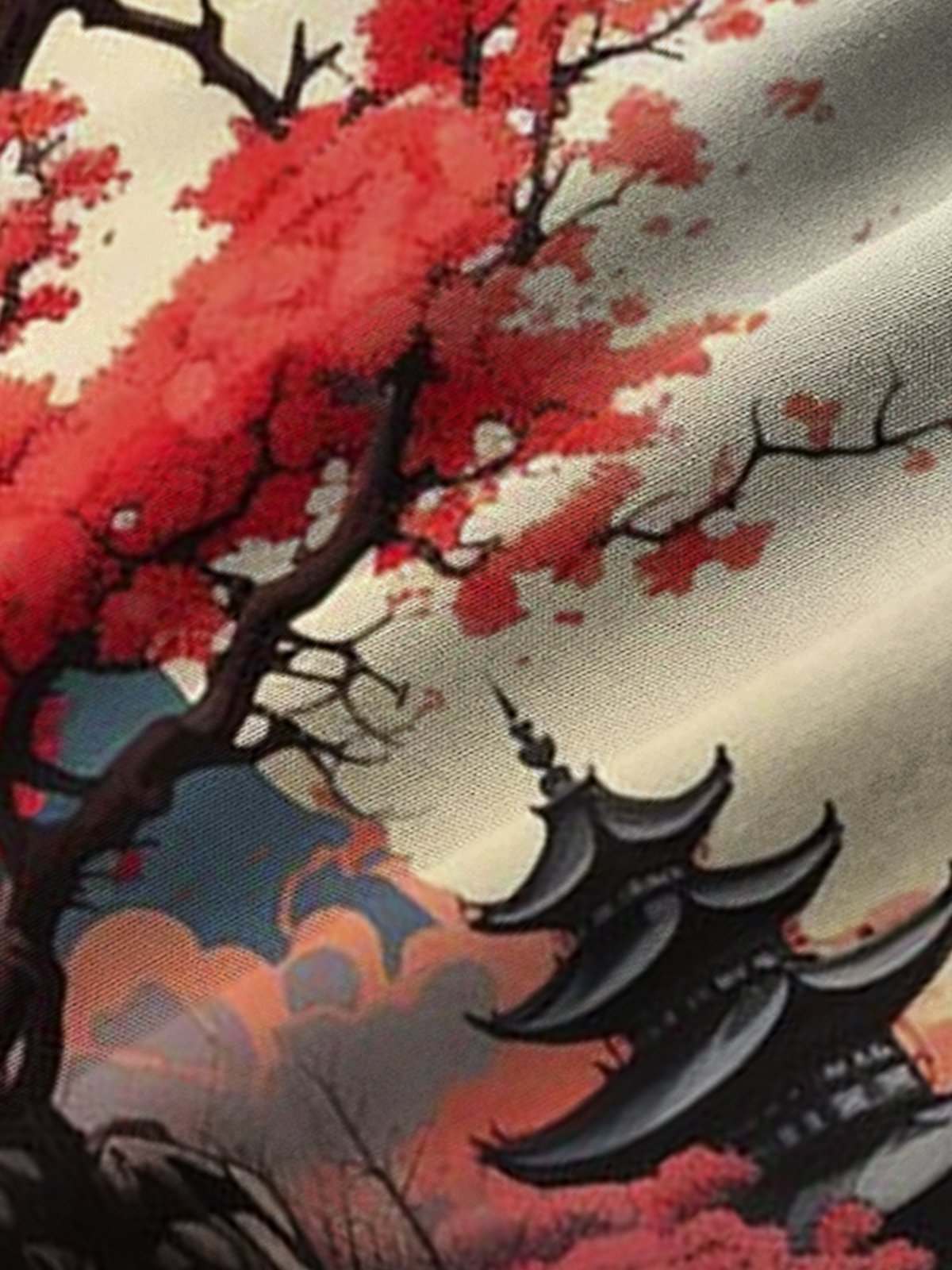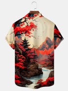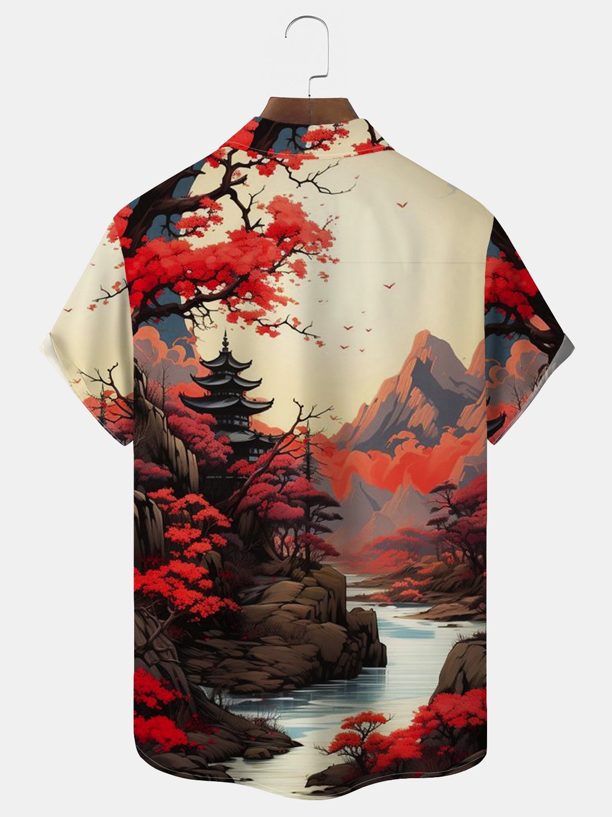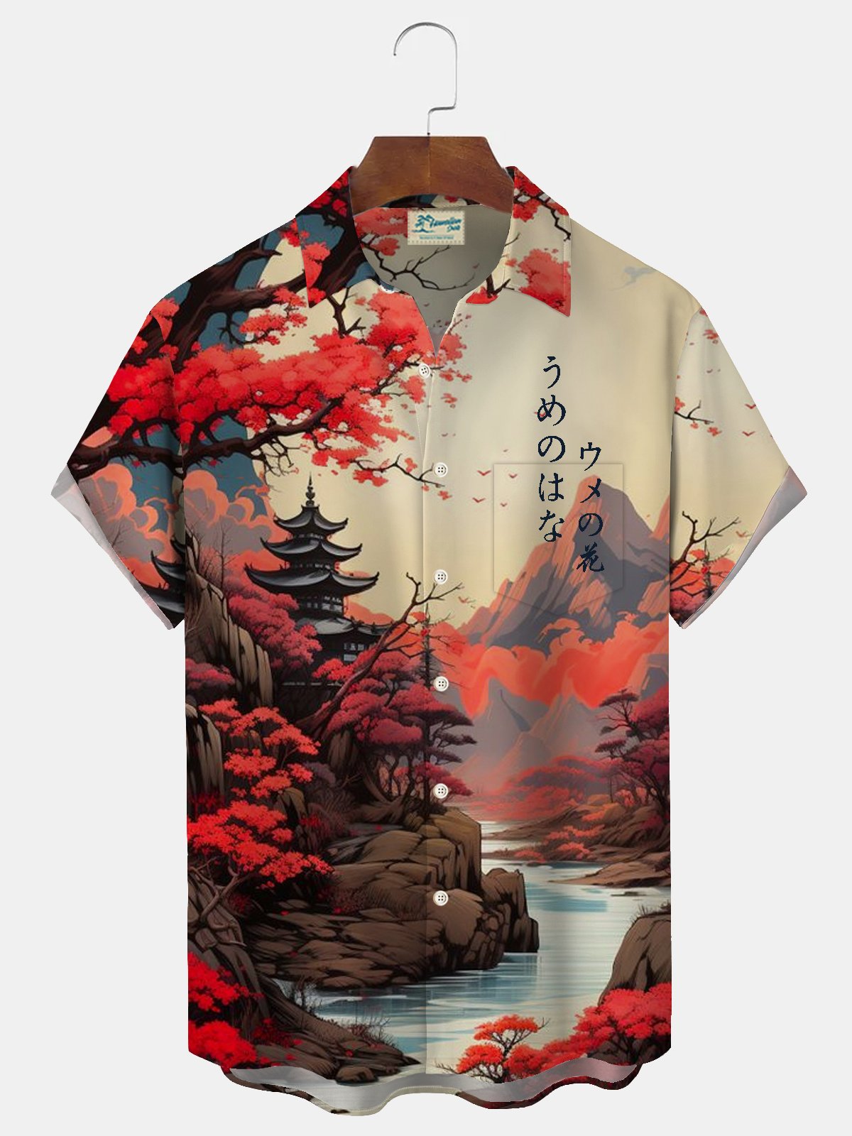 Alohadaddy Retro Japanese Plum Blossom Print Men's Button Pocket Short Sleeve Shirt