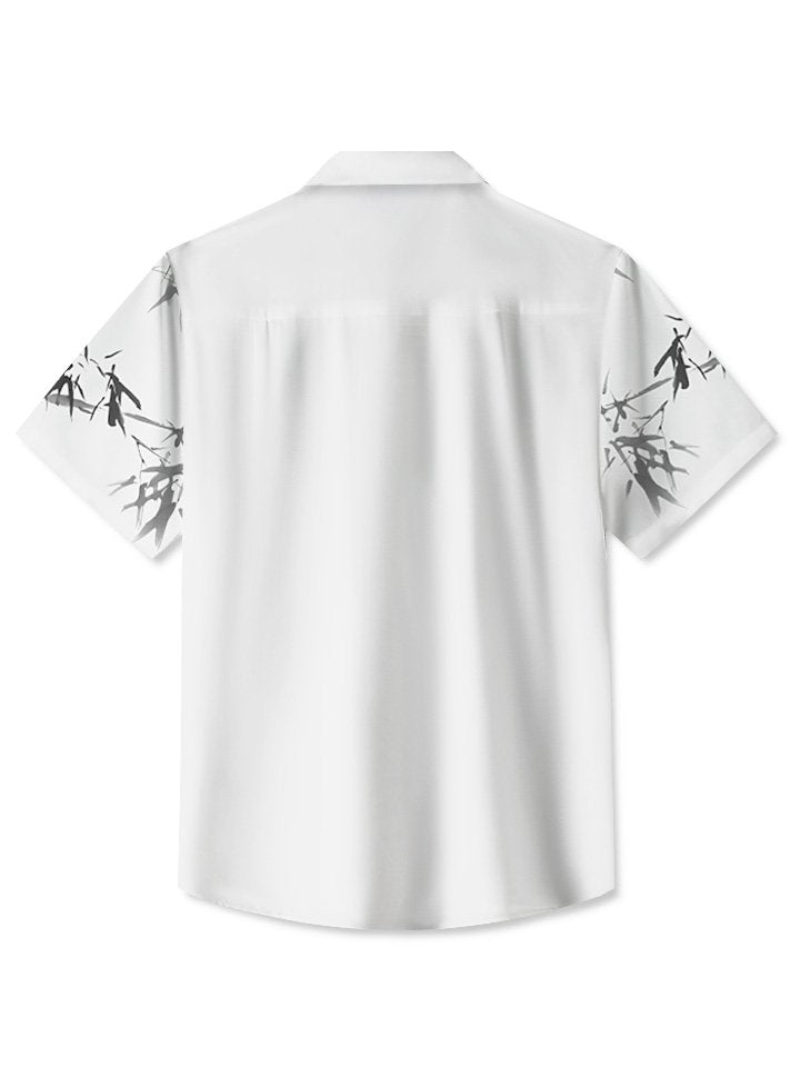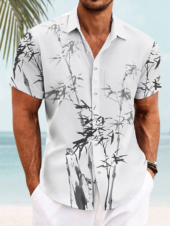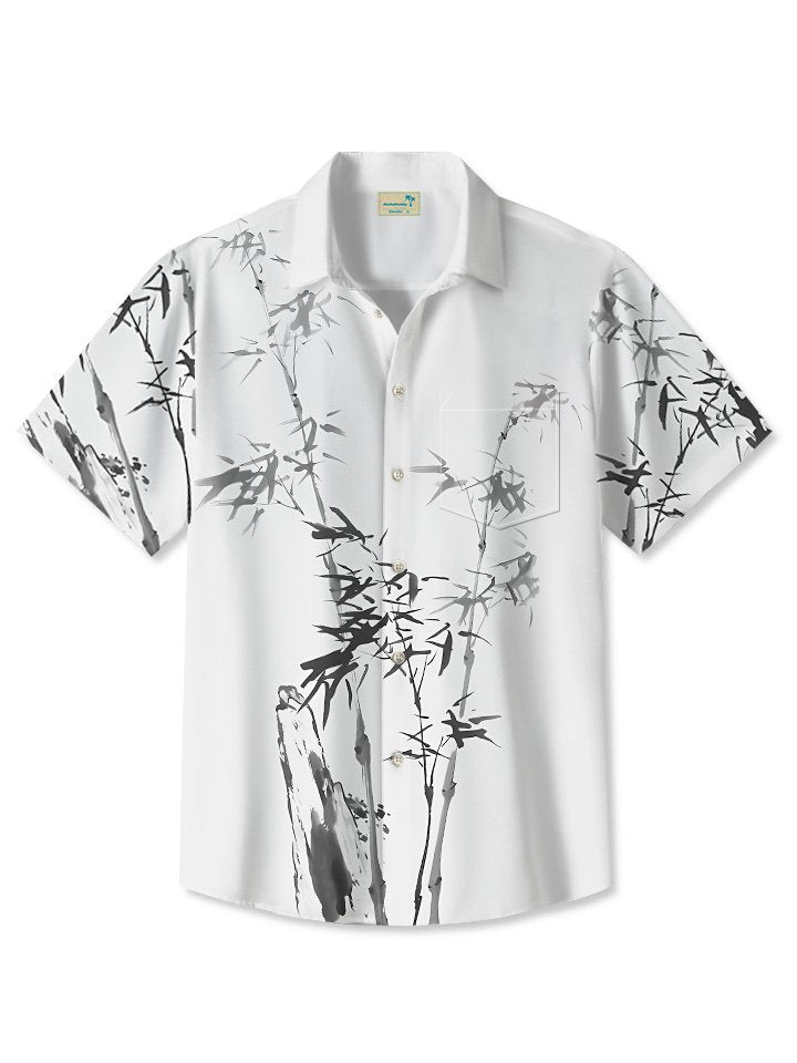 Alohadaddy Summer Plant Bamboo Commuter Men Pocket Button Casual Vacation Short Sleeve Shirt