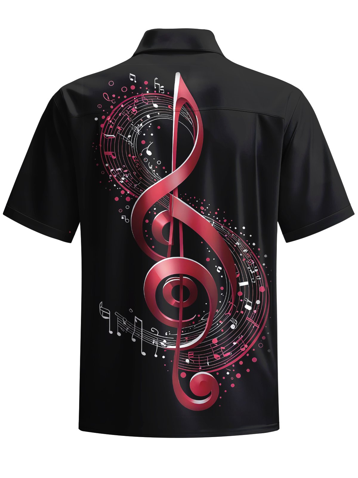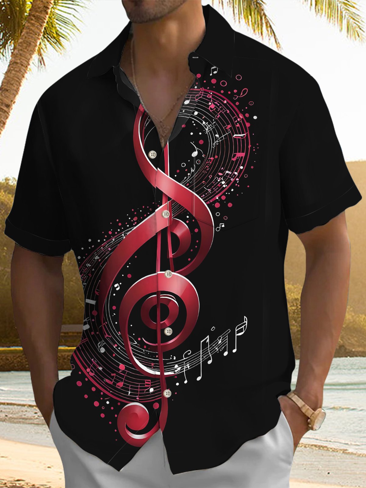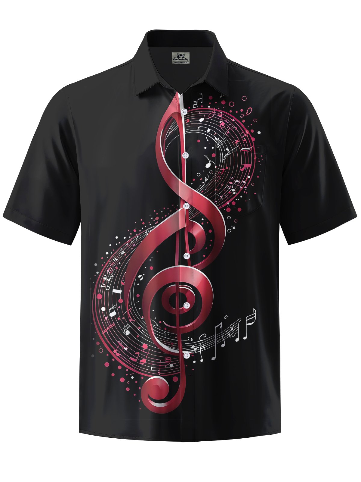 Alohadaddy® Casual Musical Notes Printed Chest Pocket Men's Stretch Short Sleeve Shirt Big & Tall