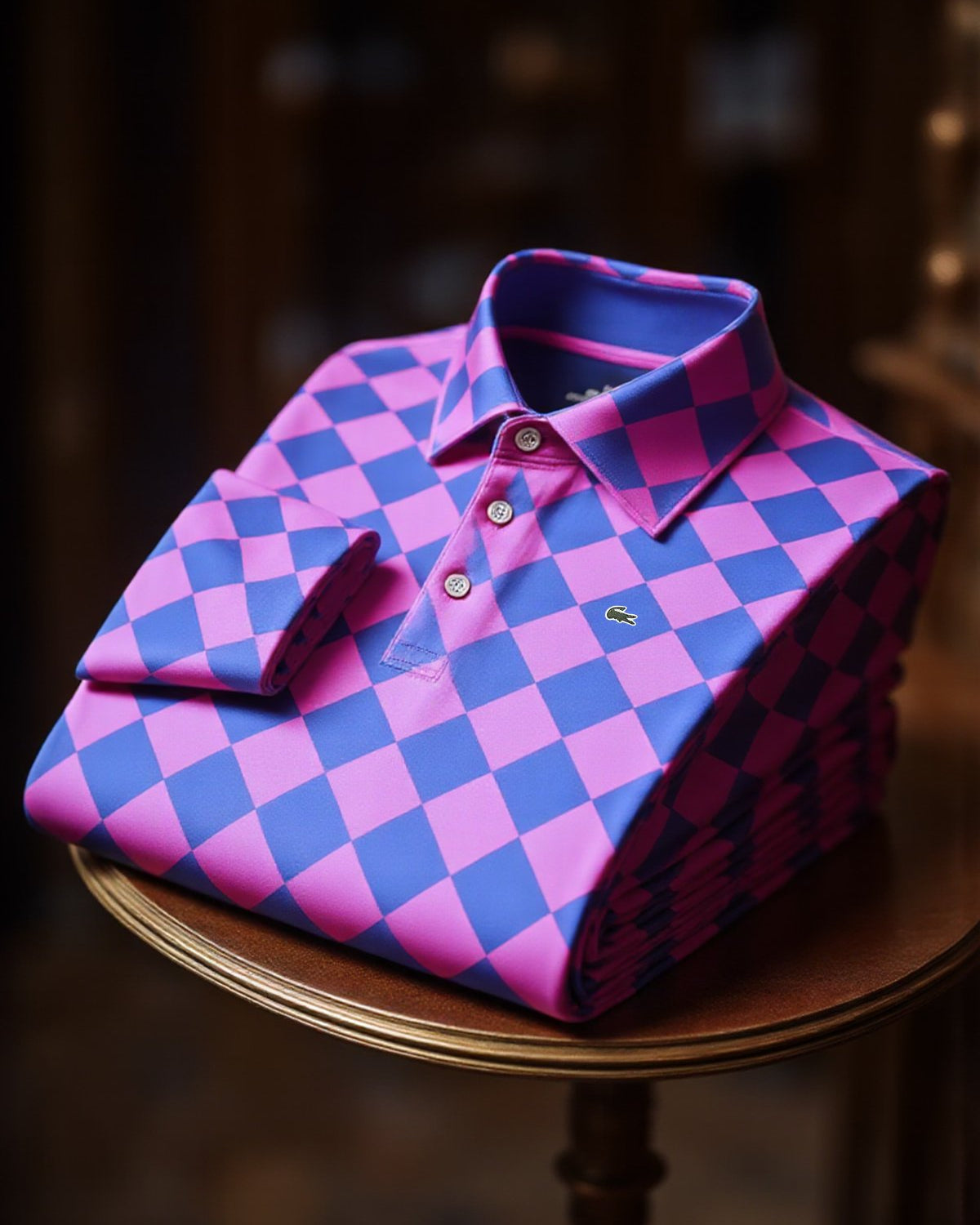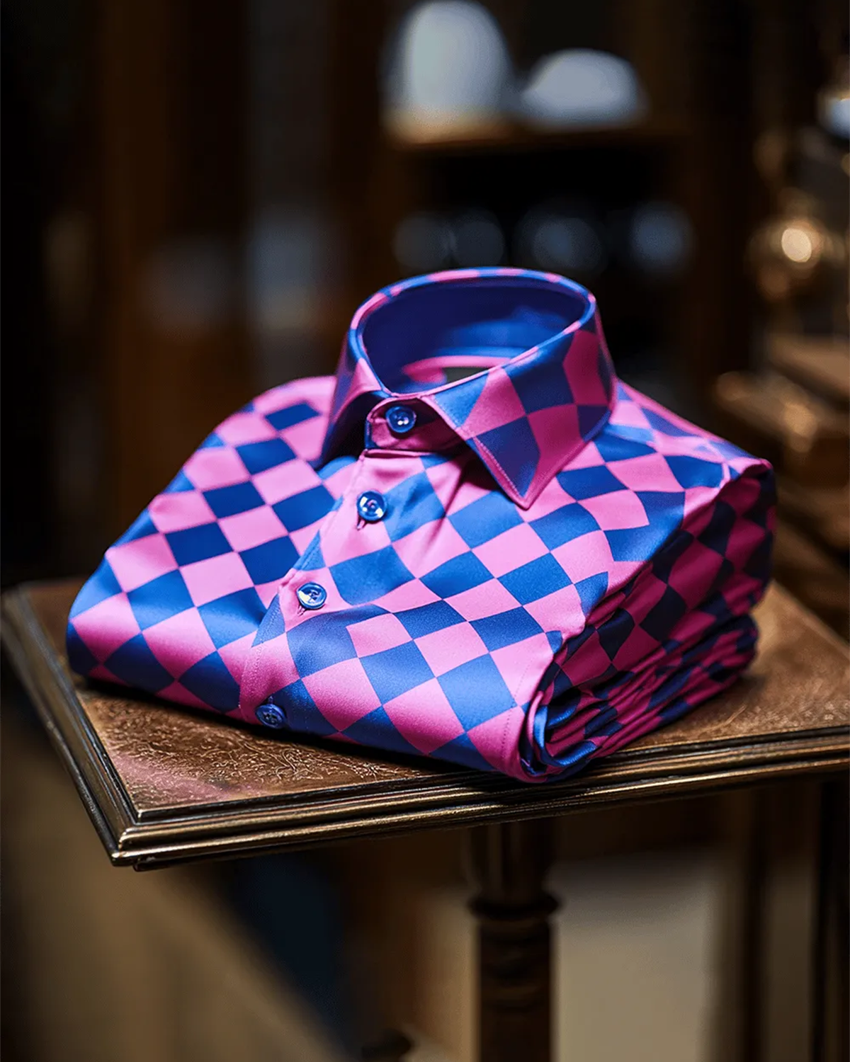 Alohadaddy® Vintage Checkerboard Print Elastic Button Men's Long Sleeve Shirt Big & Tall