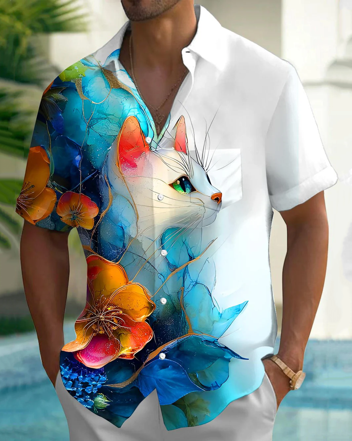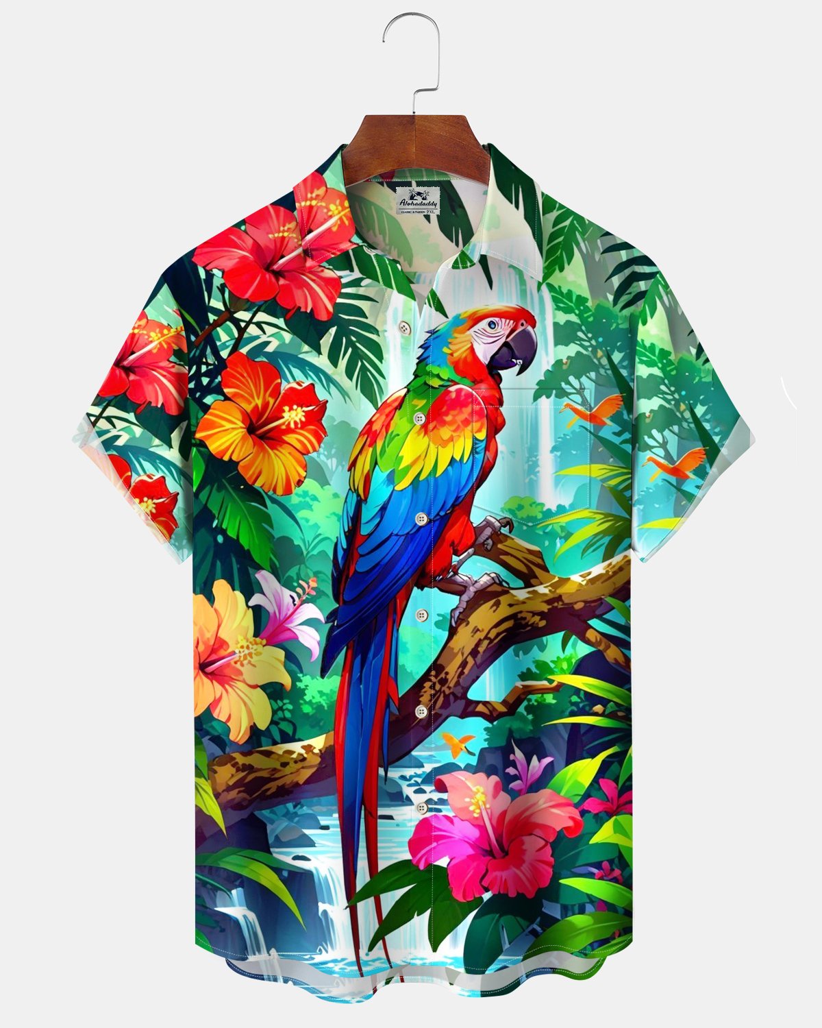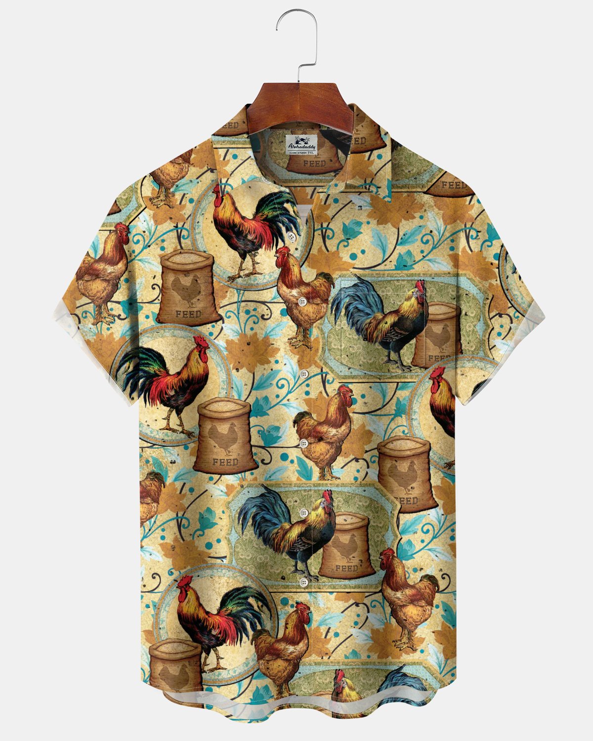 Alohadaddy Car Hollywood Coconut Tree Route 66 Sign Men Pocket Casual Short Sleeve Shirt