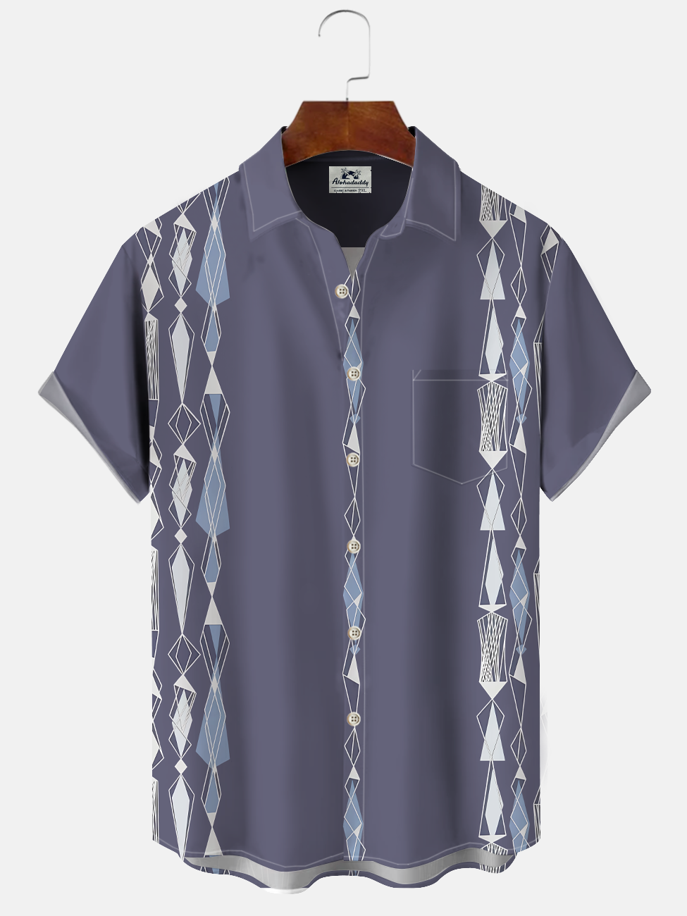 Alohadaddy Geometric Lines Buttons Pockets Casual 50S Bowling Commuter Short Sleeve Shirt