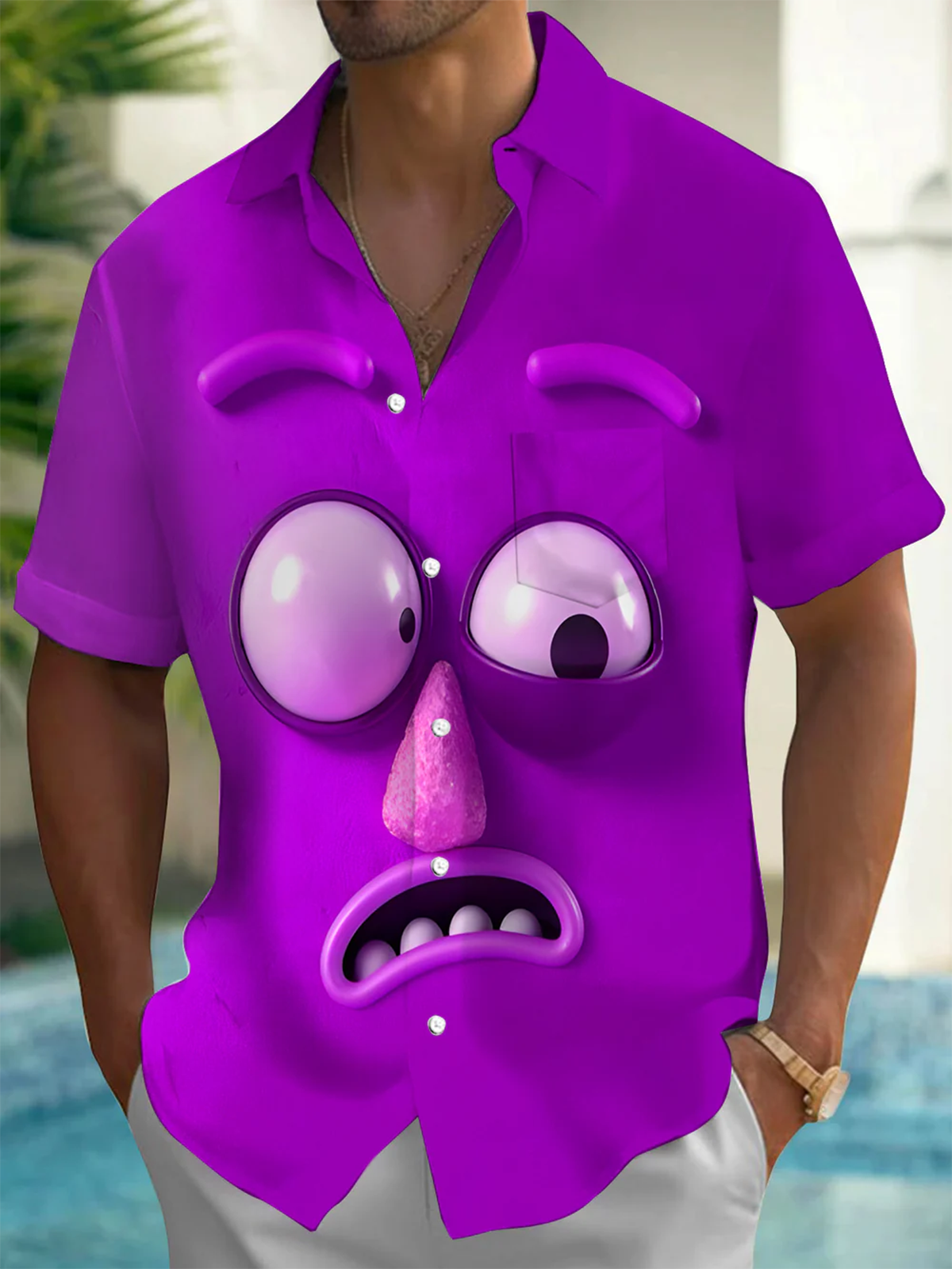 Aloha Daddy® Casual Cartoon Funny Expressions Print Art Men's Short Sleeve Shirt Big & Tall
