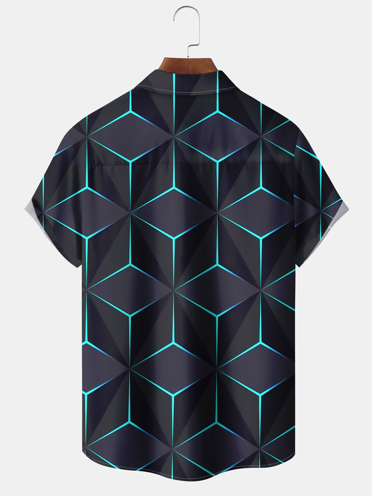 Alohadaddy® Casual Geometric Art Print Pockets Large Size Stretch Men's Short Sleeve Shirt