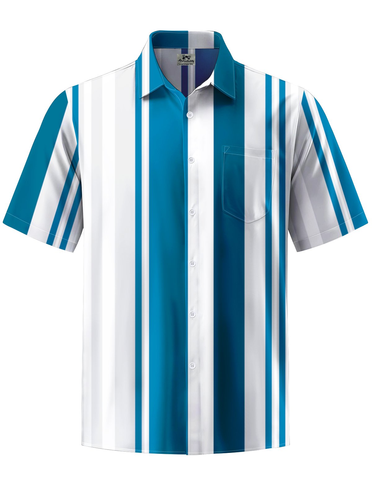 Alohadaddy® Casual Stripe Print Art Pocket Stretch Men's Short Sleeve Shirt Big & Tall