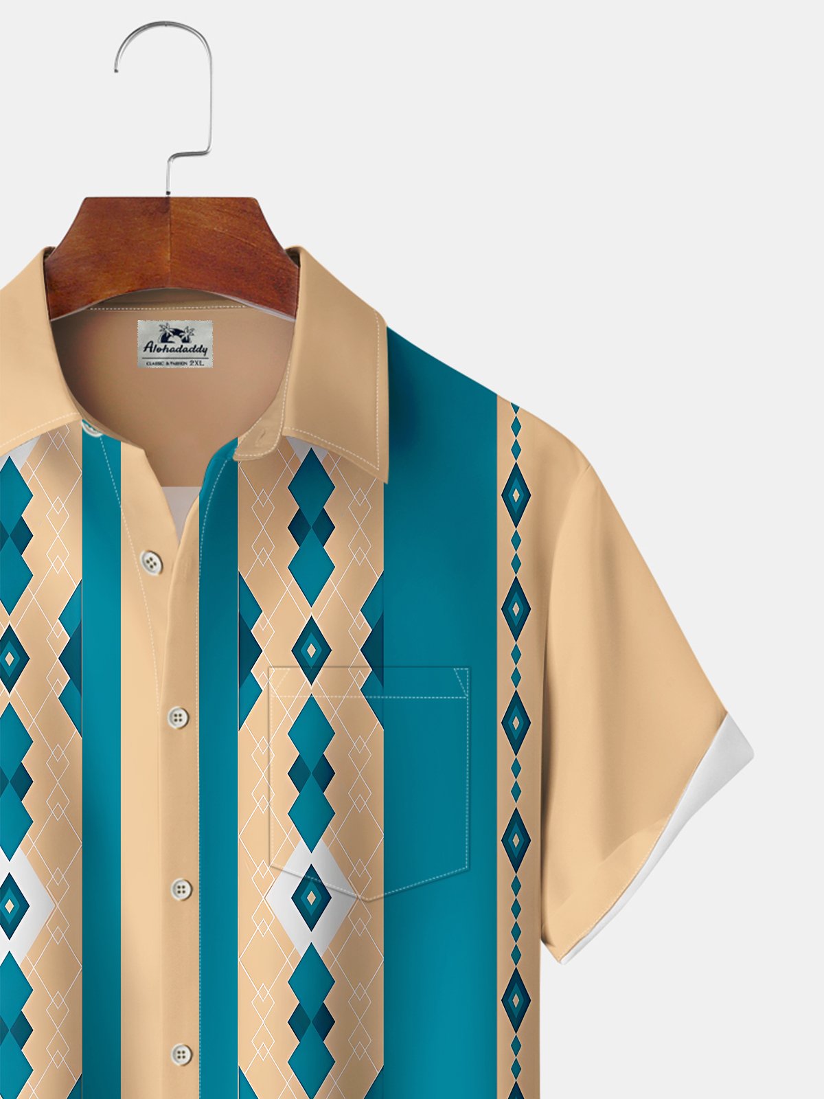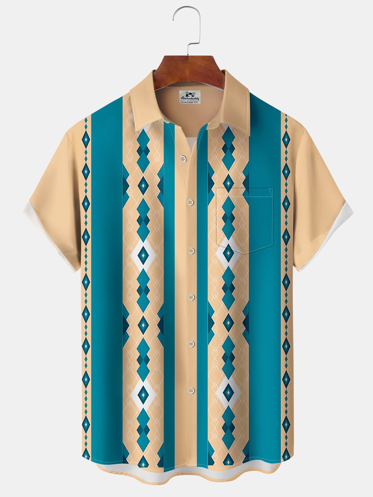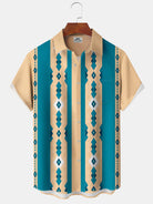 Alohadaddy® Vintage Stripes Geometric Art Print Chest Pocket Stretch Hawaiian Short Sleeve Shirt Big & Tall