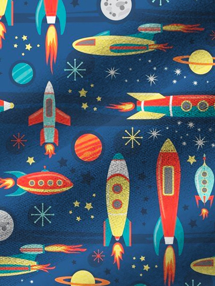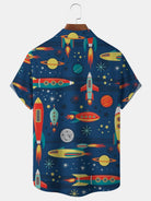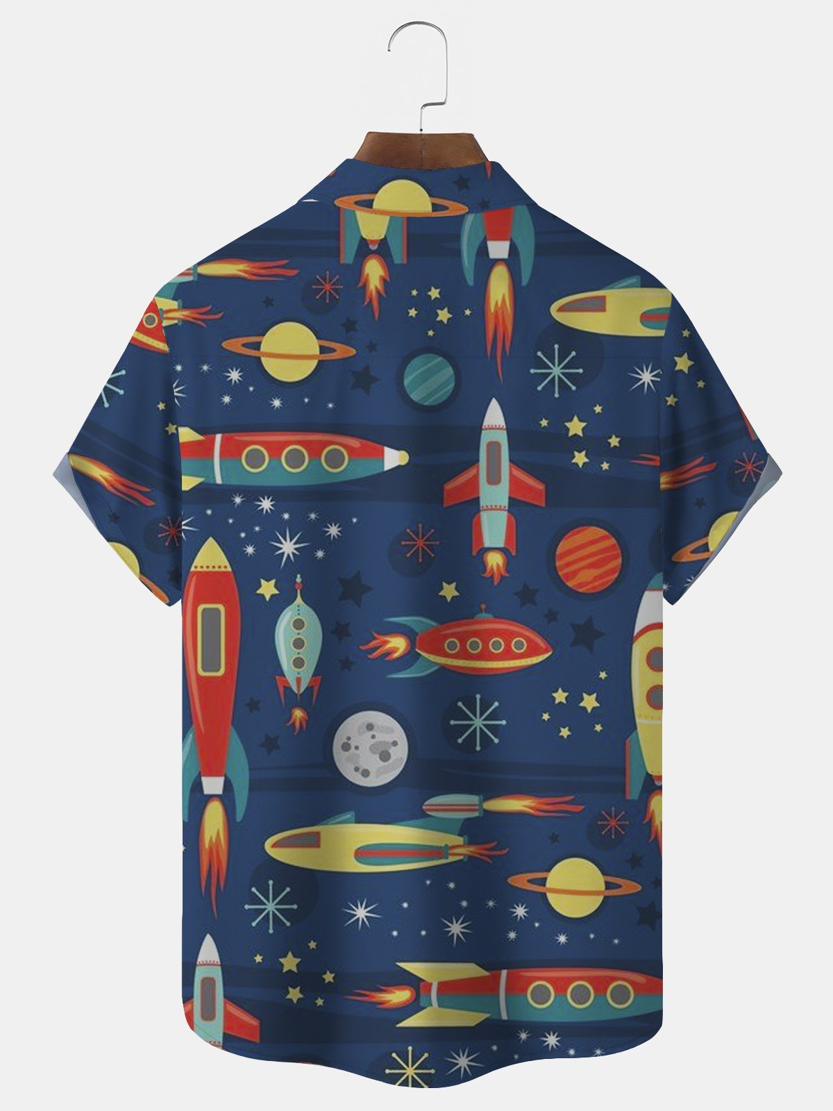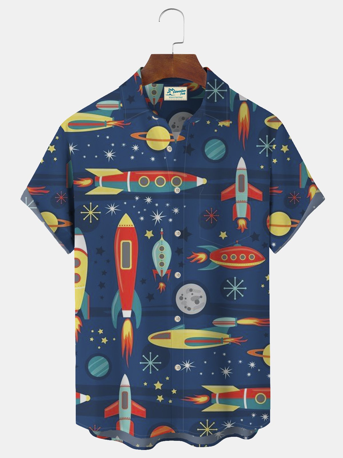 Alohadaddy 50s Cartoon Art Space Rocket Print Beach Men's Vacation Hawaiian Big and Tall Aloha Shirt