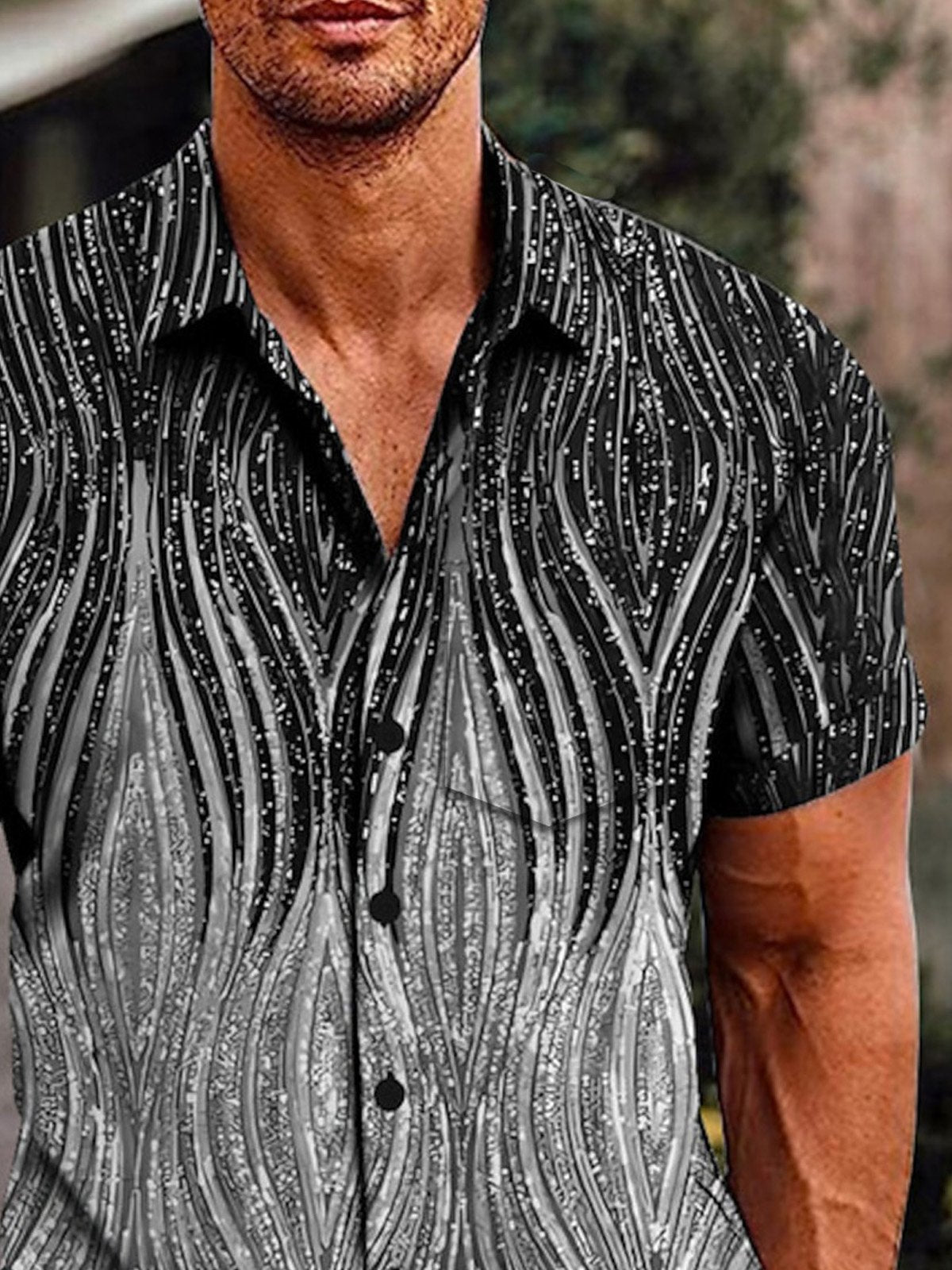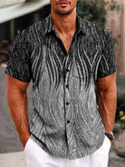 Alohadaddy 50's Retro Medieval Geometric Men's Camp Shirt Quick-drying Stretch Dark Gray Gradient Art Shirt Big Tall