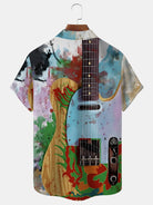 Alohadaddy 50's Retro Medieval Rock Men's Aloha Shirts Guitar Art Stretch Large Size Pocket Camp Shirts