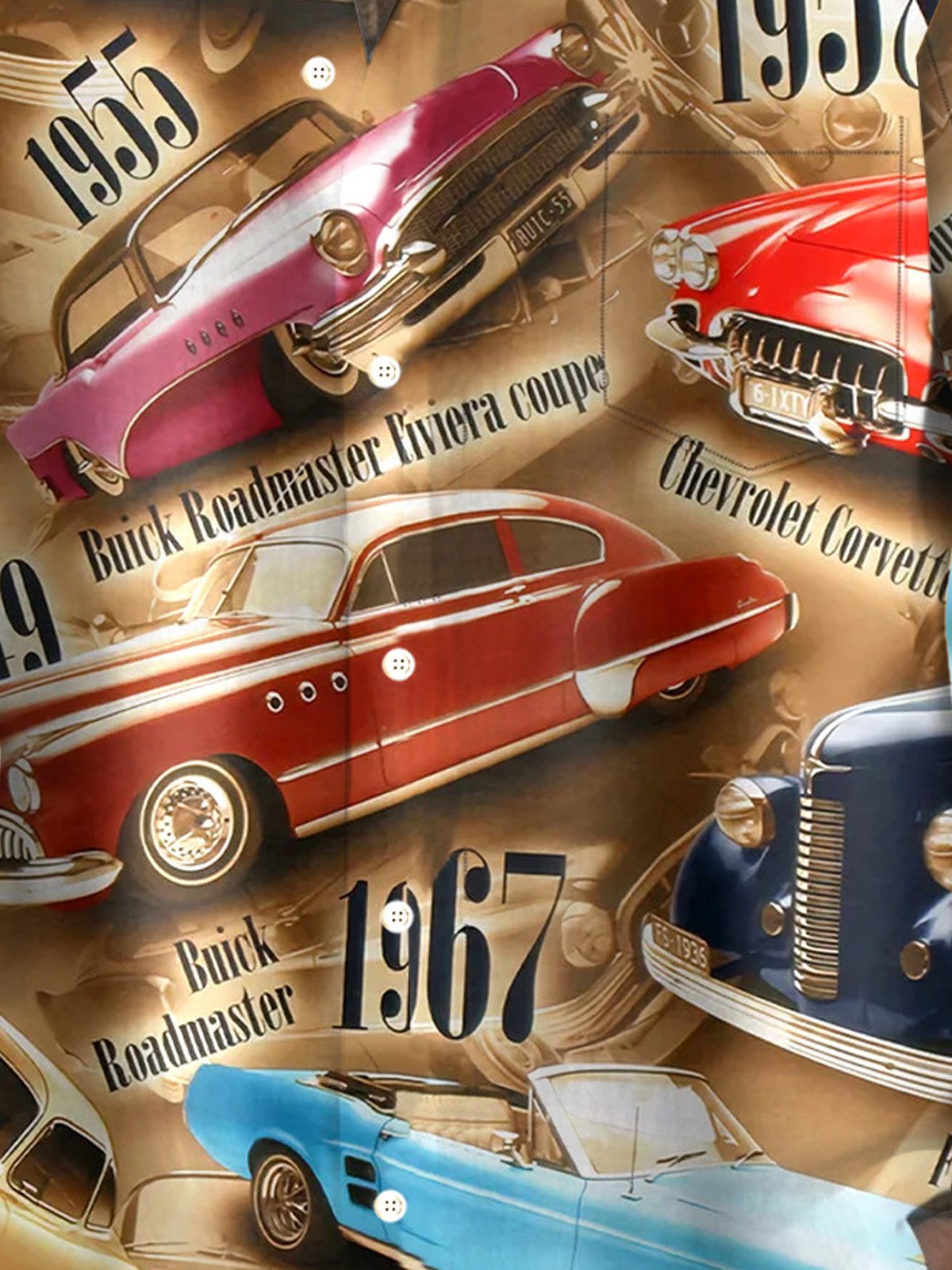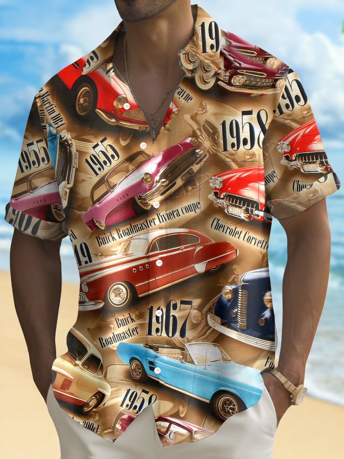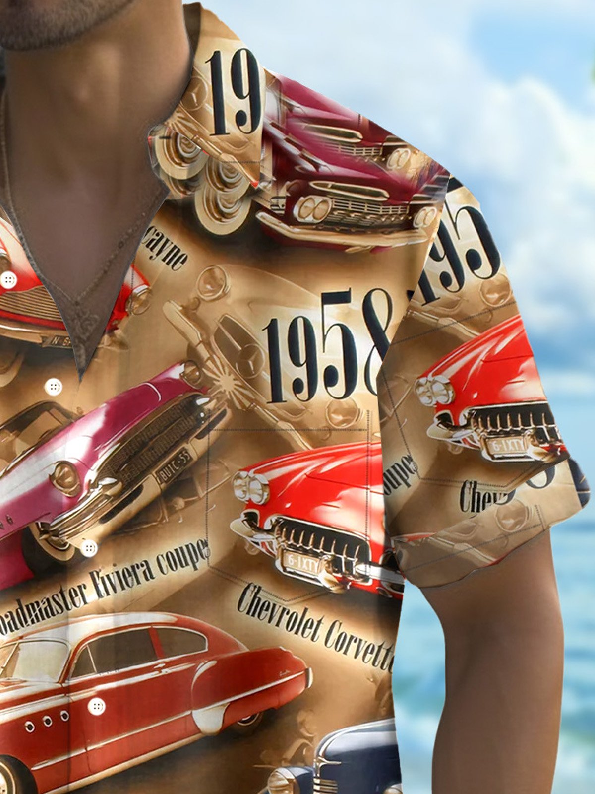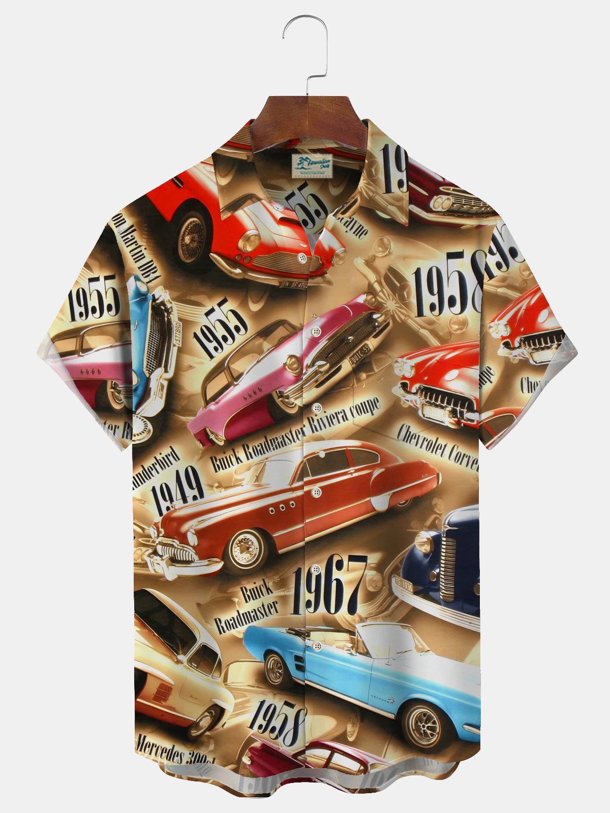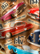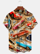 Alohadaddy 60s Retro Classic Car 3D Digital Print Men's Button Pocket Short Sleeve Shirt Big & Tall