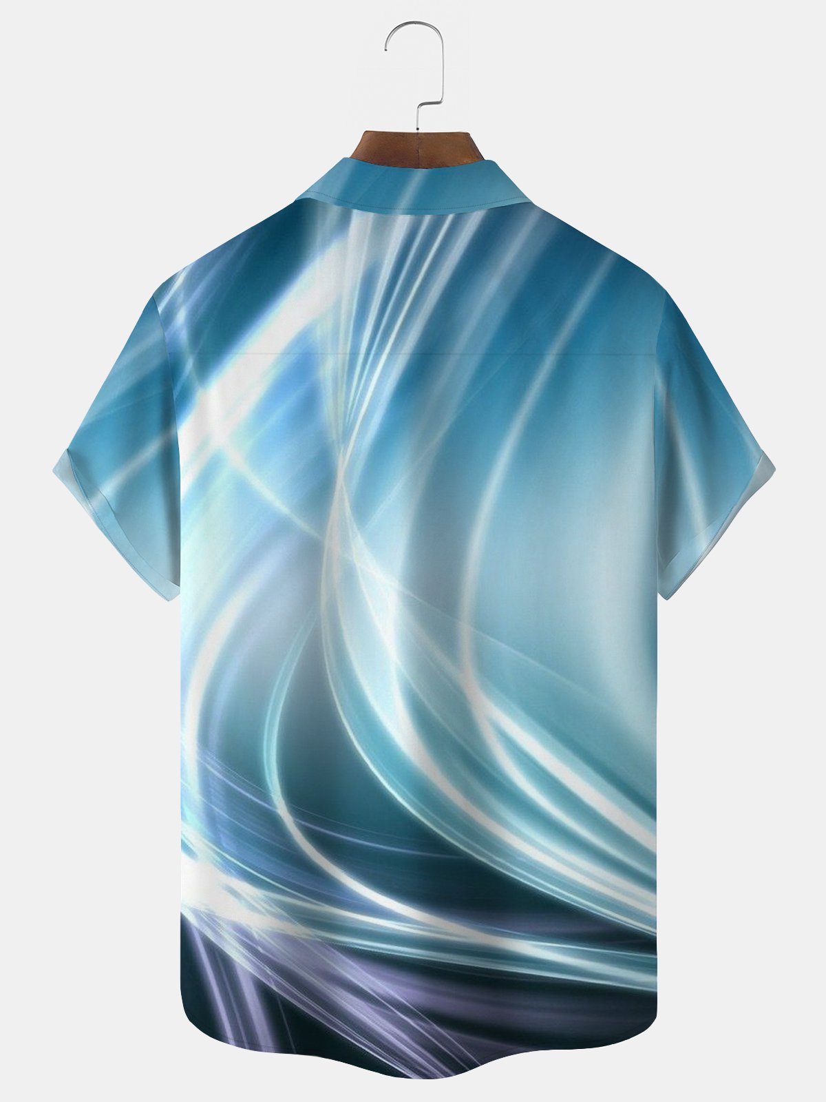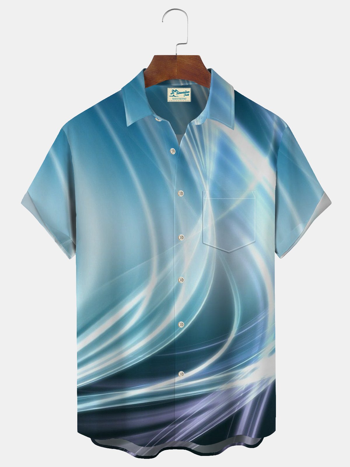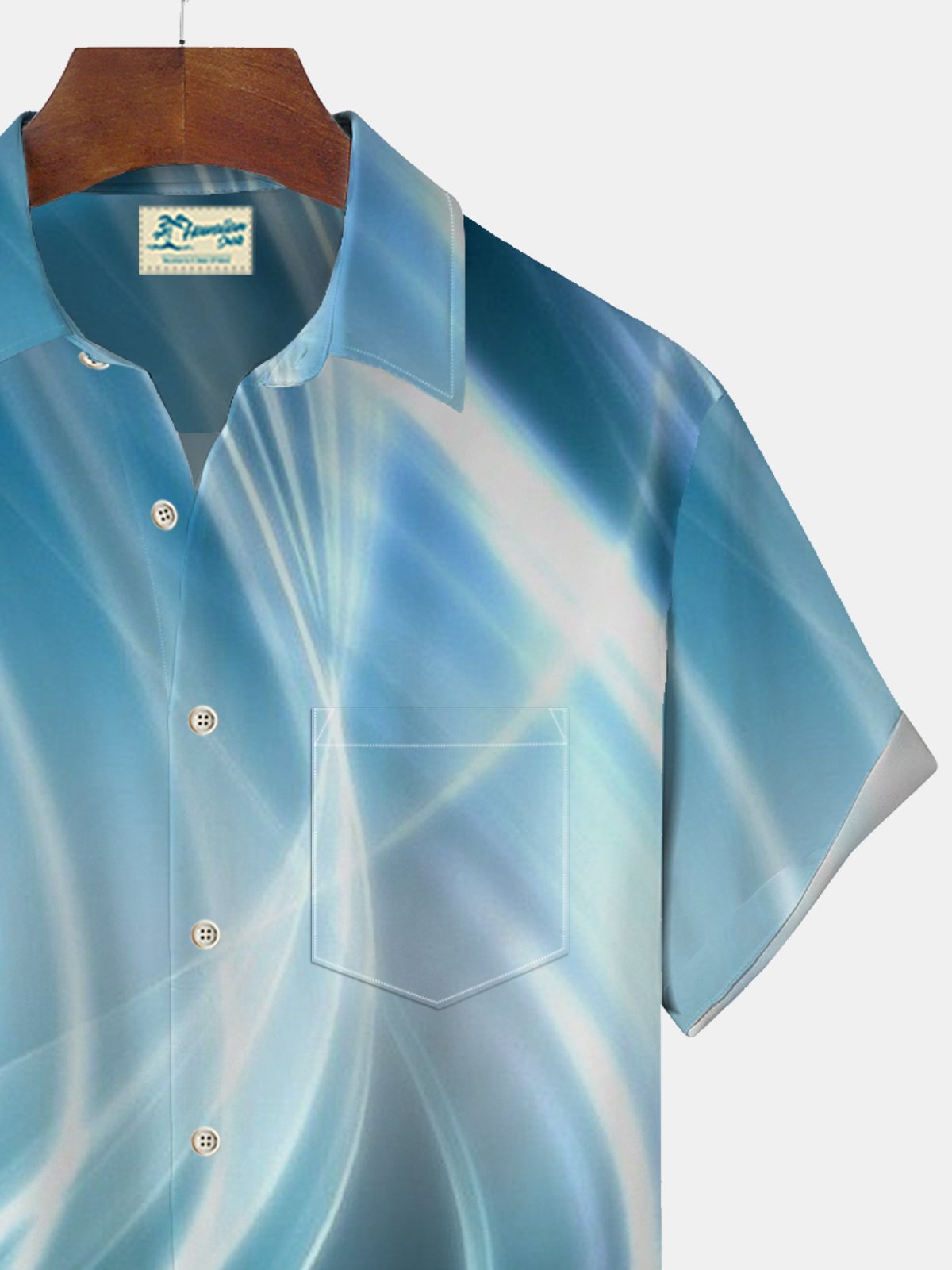 Alohadaddy Art Aurora Ombre Print Beach Men's Hawaiian Oversized Short Sleeve Shirt with Pockets