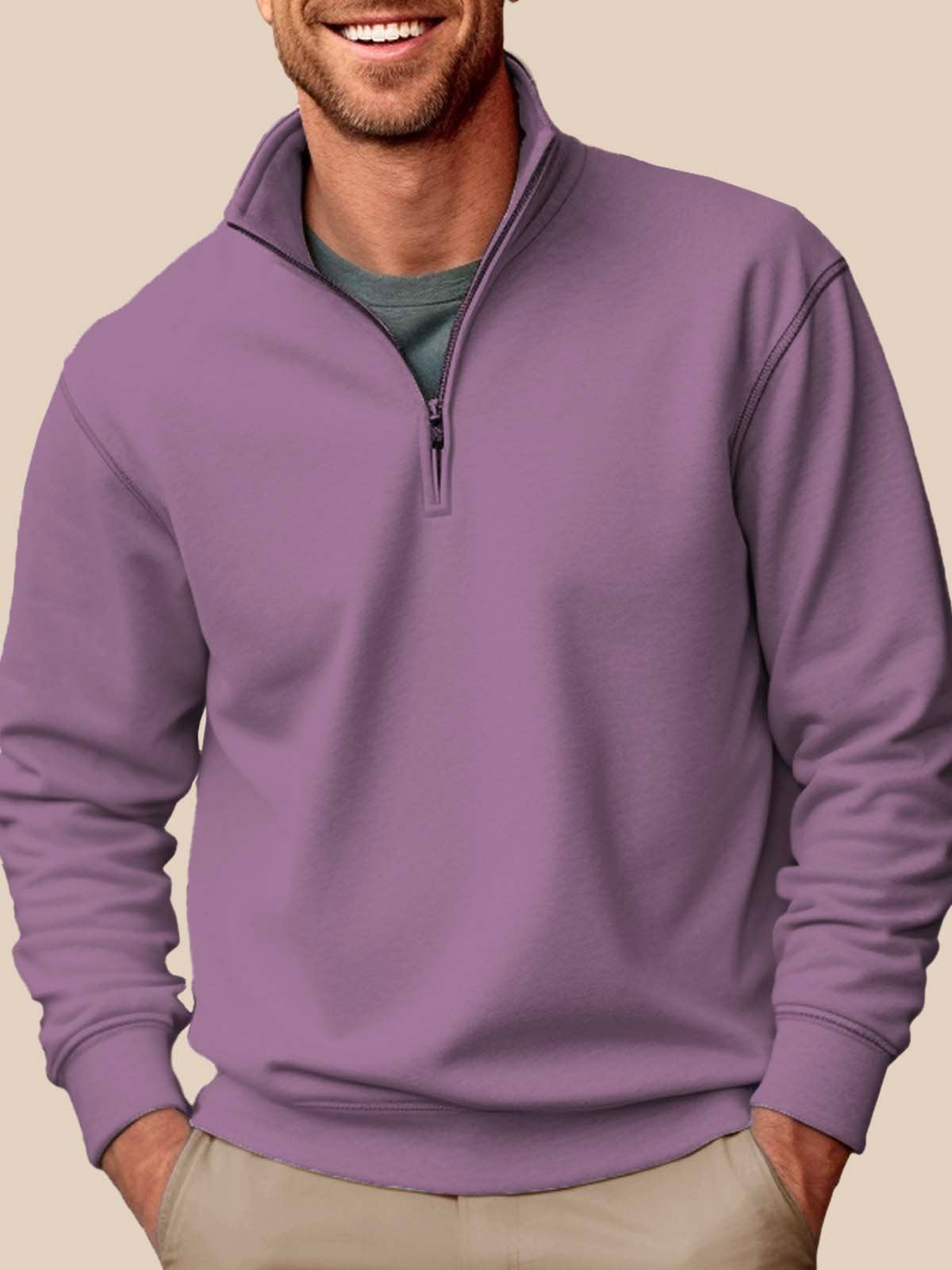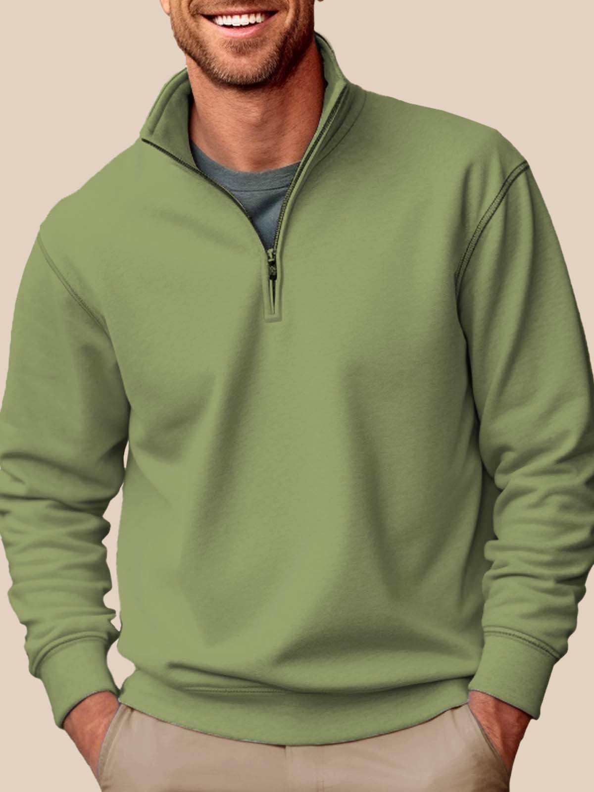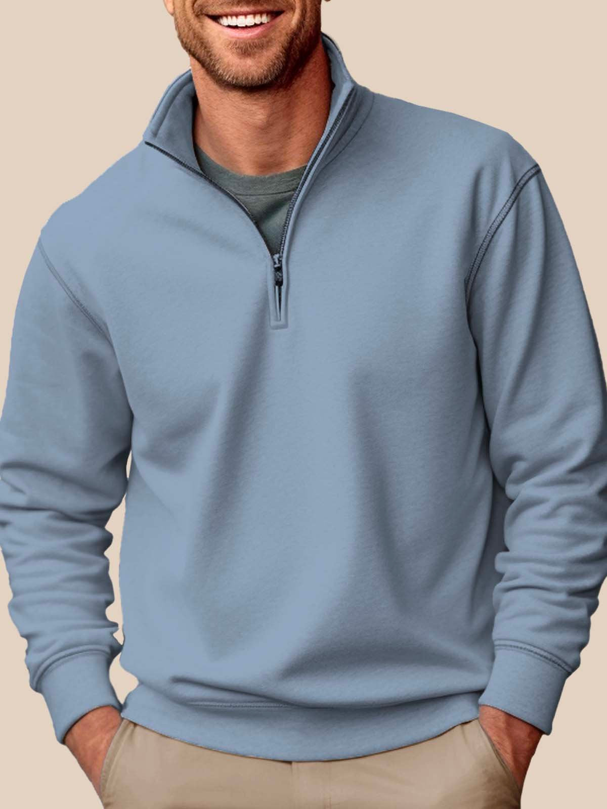 Alohadaddy Basic Half-zip Stand Collar Sweatshirts Stretch Pullover Basic Sweatshirts
