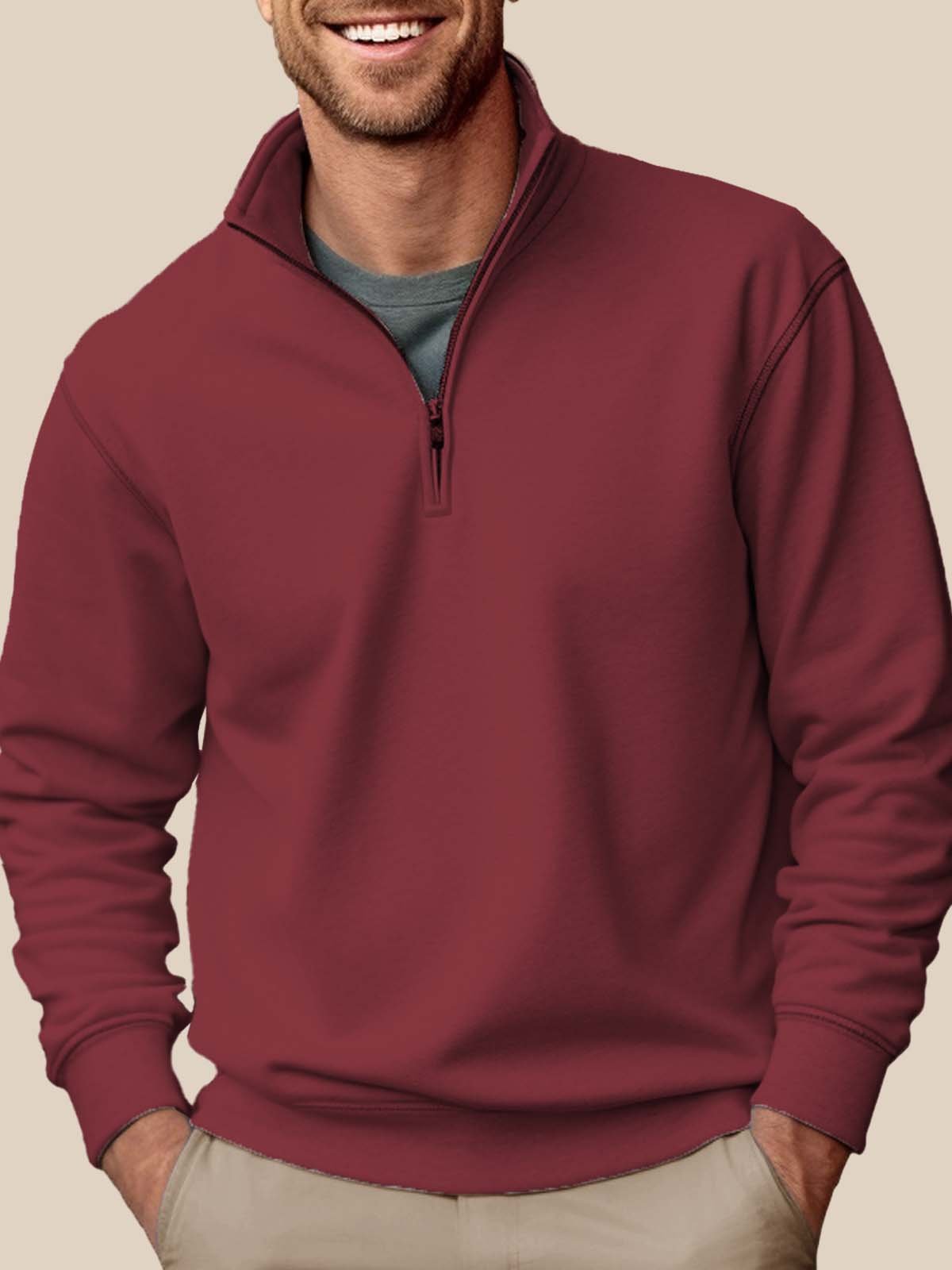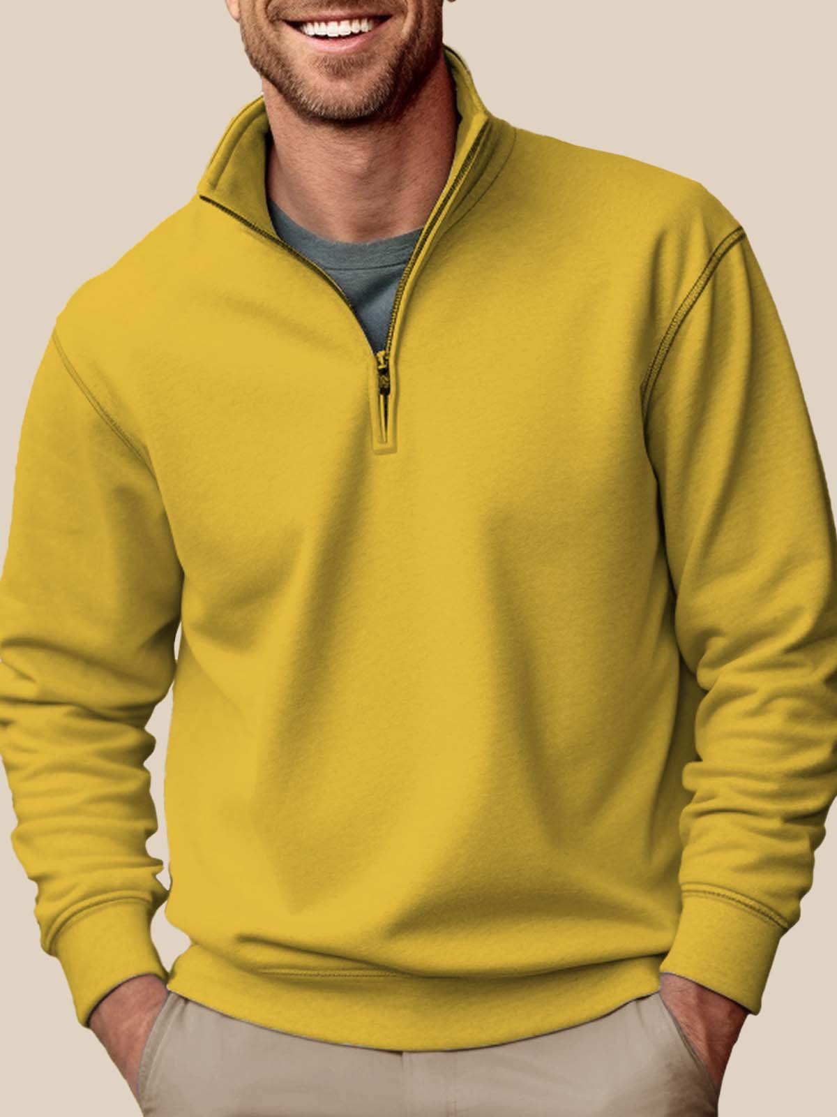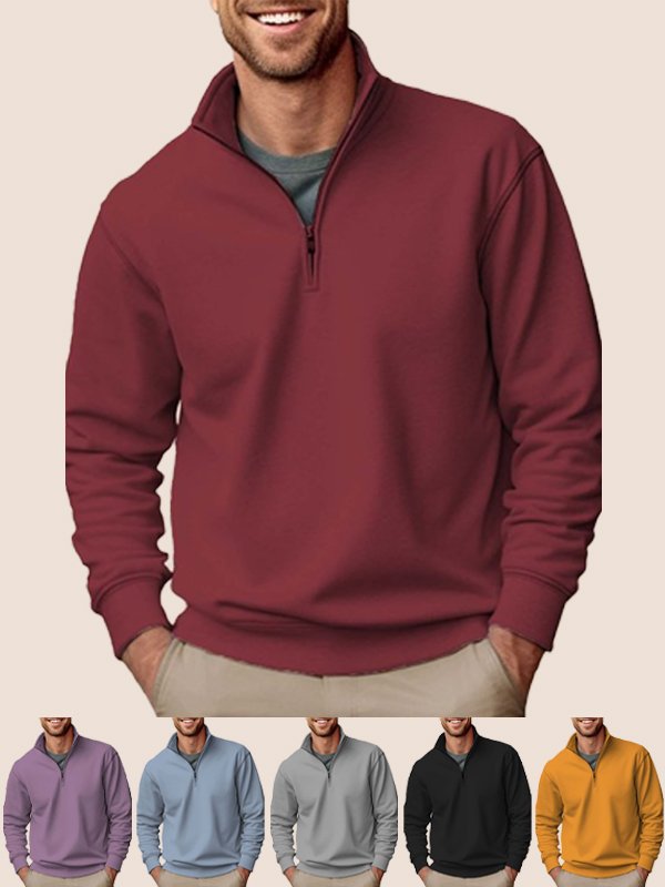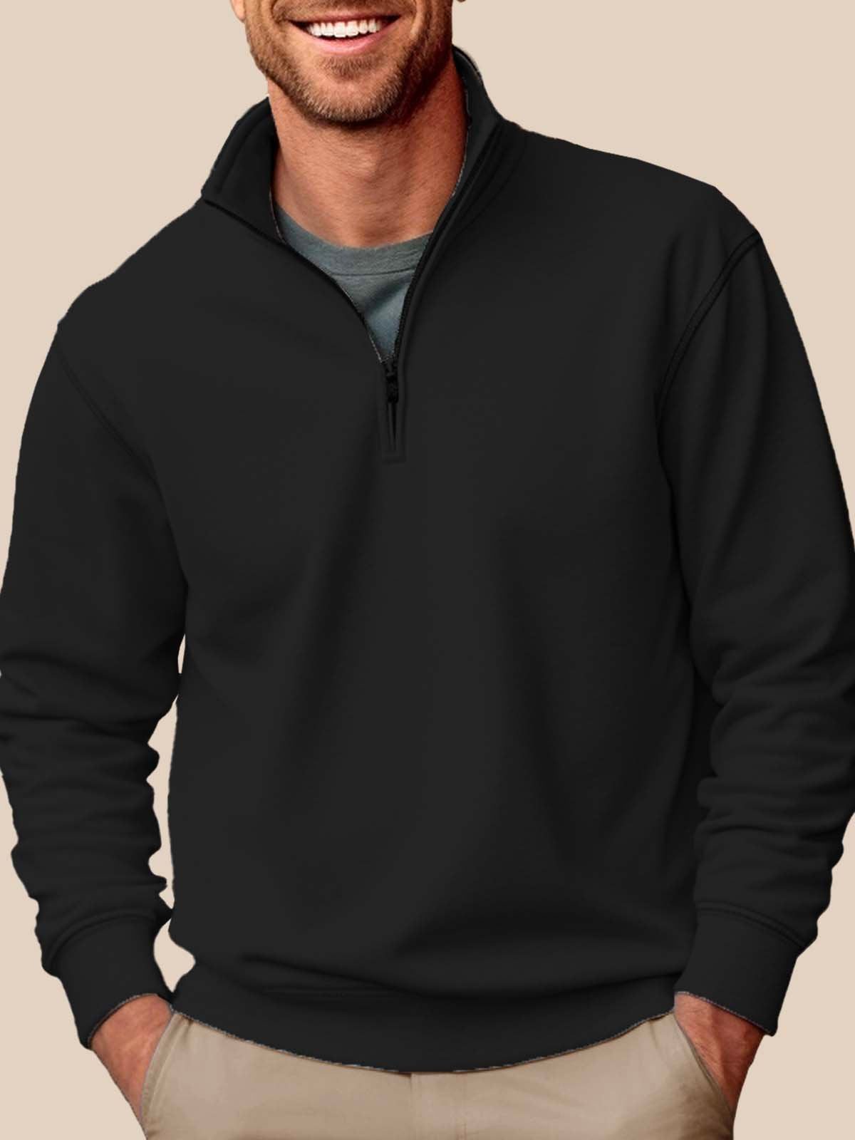 Alohadaddy Basic Half-zip Stand Collar Sweatshirts Stretch Pullover Basic Sweatshirts