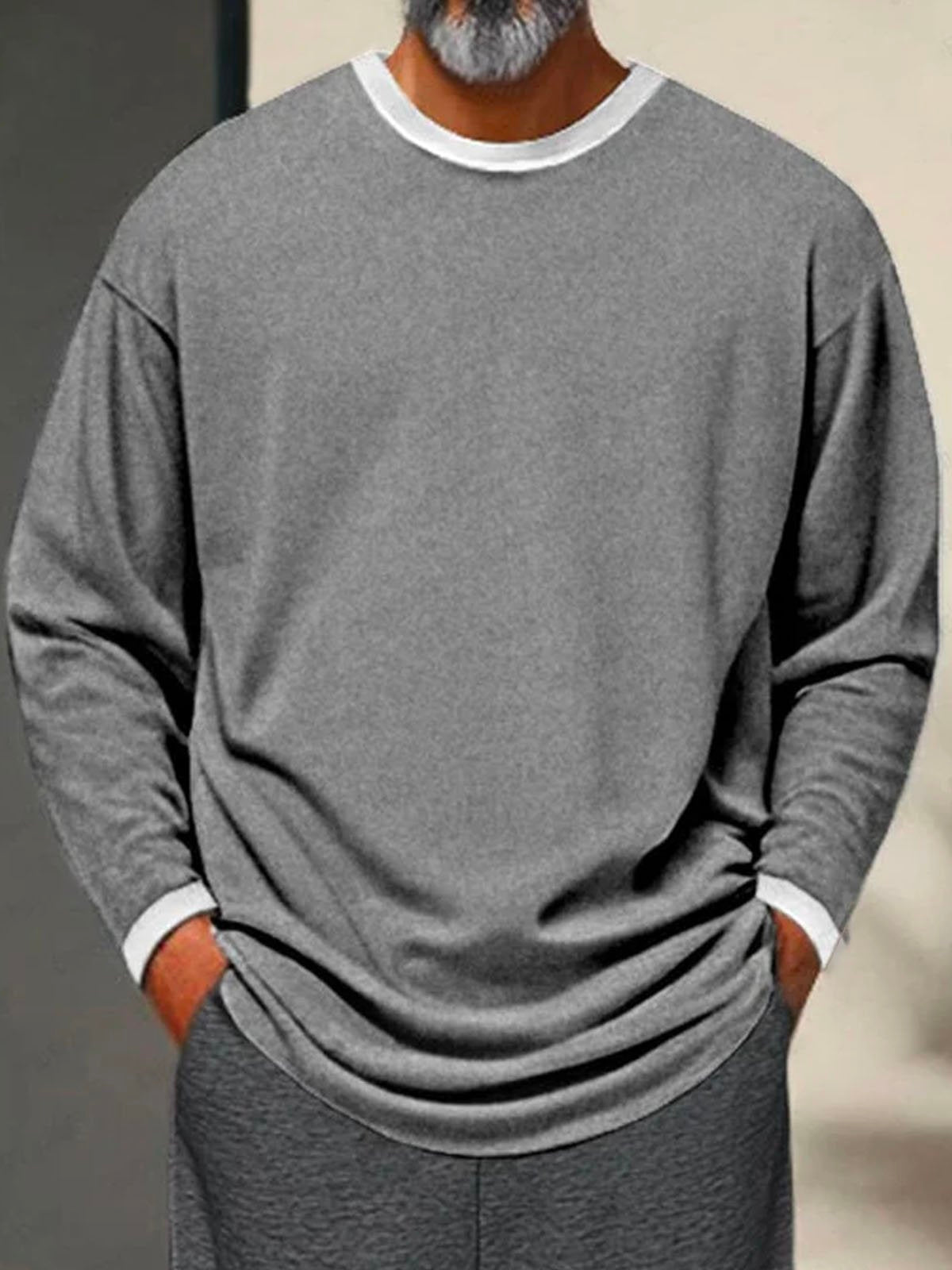 Alohadaddy Basic Plain Casual Men's Long-Sleeved Crew Neck Sweatshirt