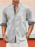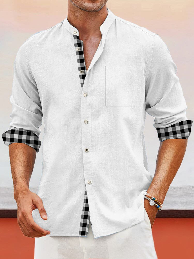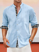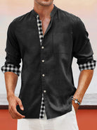 Alohadaddy Basic Stand Collar Men's Long Sleeve Shirt Easy Care Check Camp Pocket Shirts Big Tall