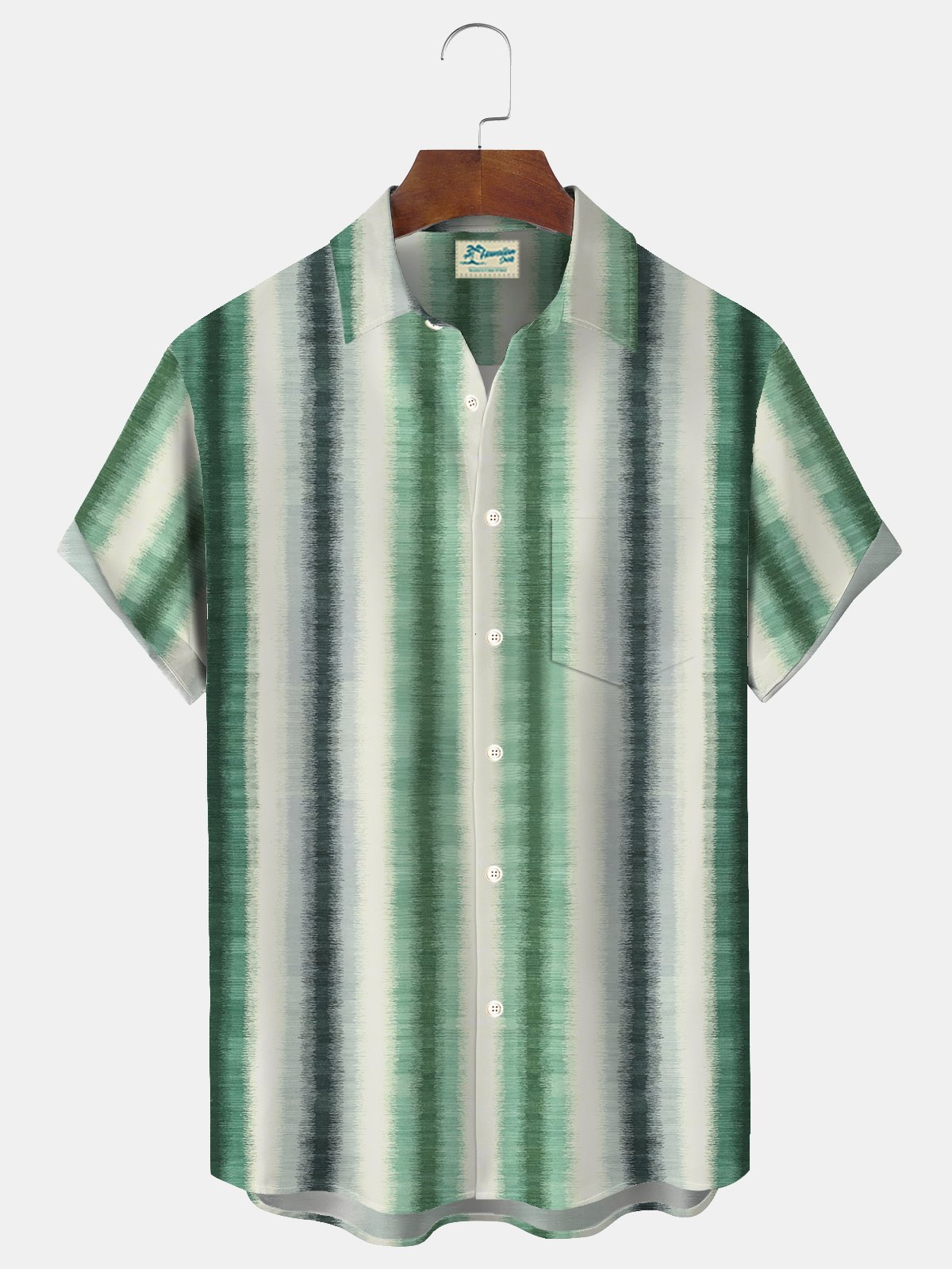 Alohadaddy Basic Stripe Gradient Printed Men's Button Pocket Shirt