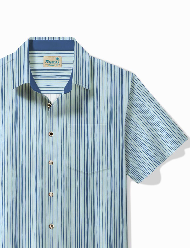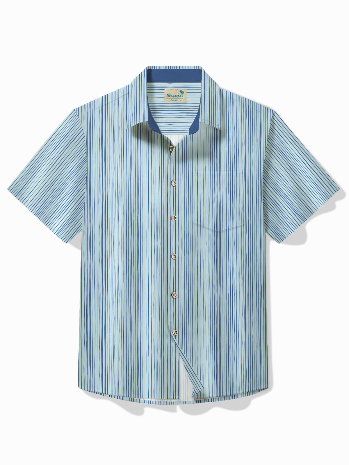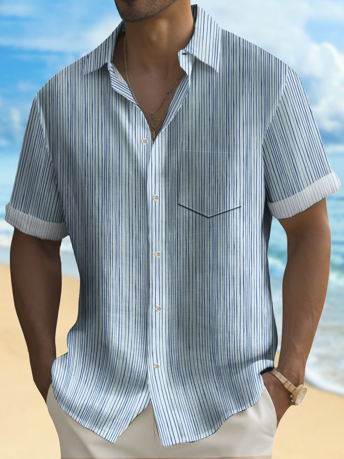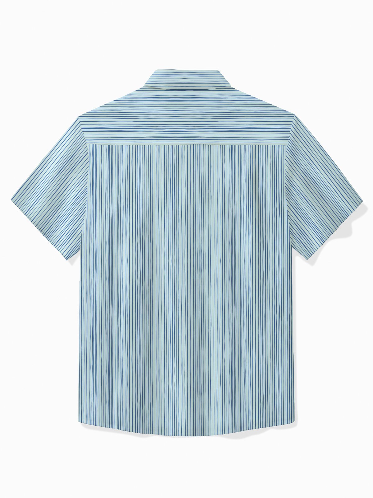 Alohadaddy Basic Striped Men's Hawaiian Shirt Stretch Easy Care Pocket Camping Shirt Big Tall