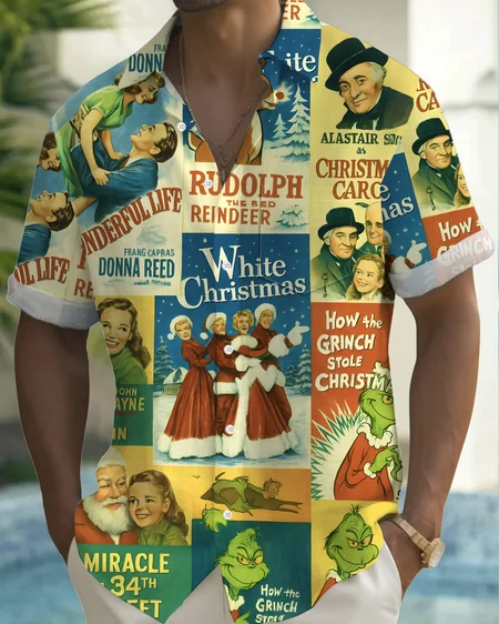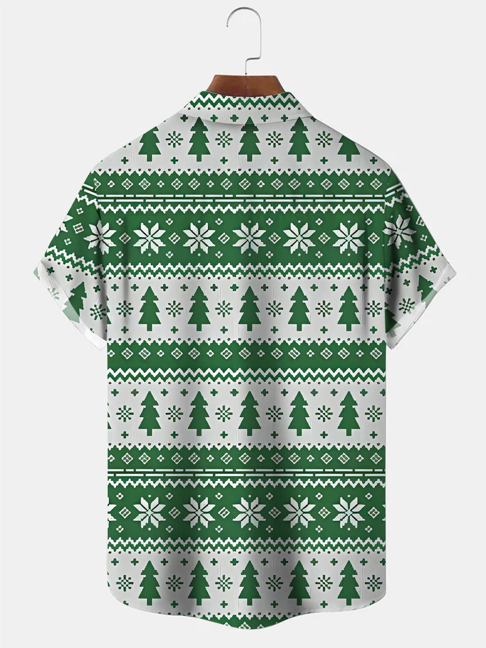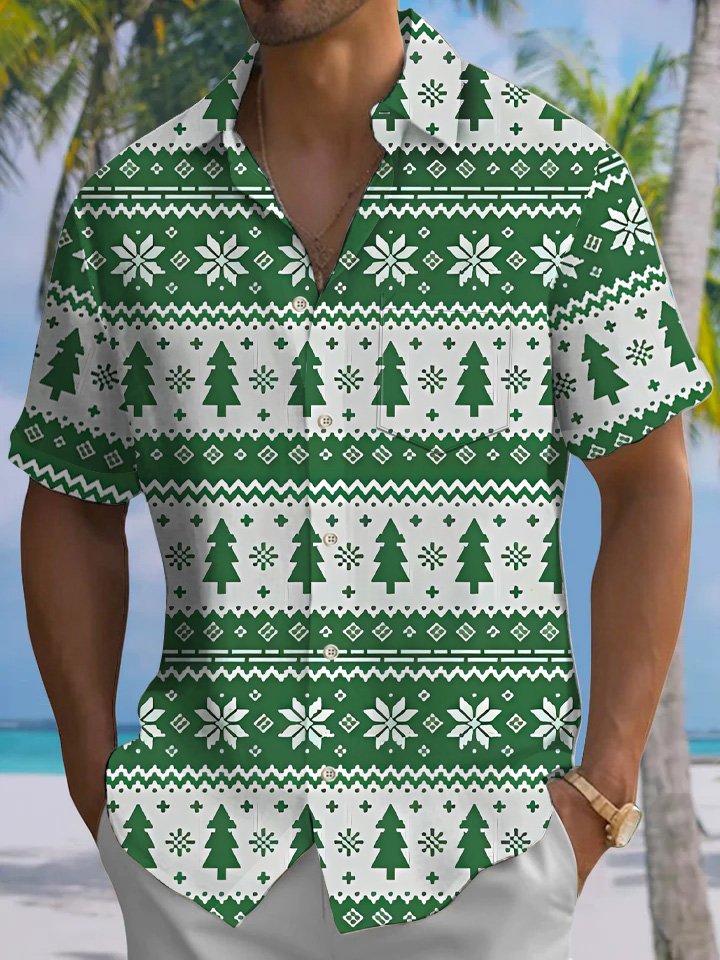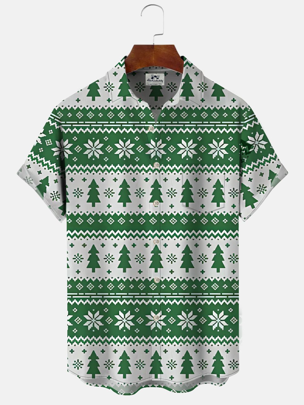 Alohadaddy Christmas Button Pocket Casual Short Sleeve Shirt