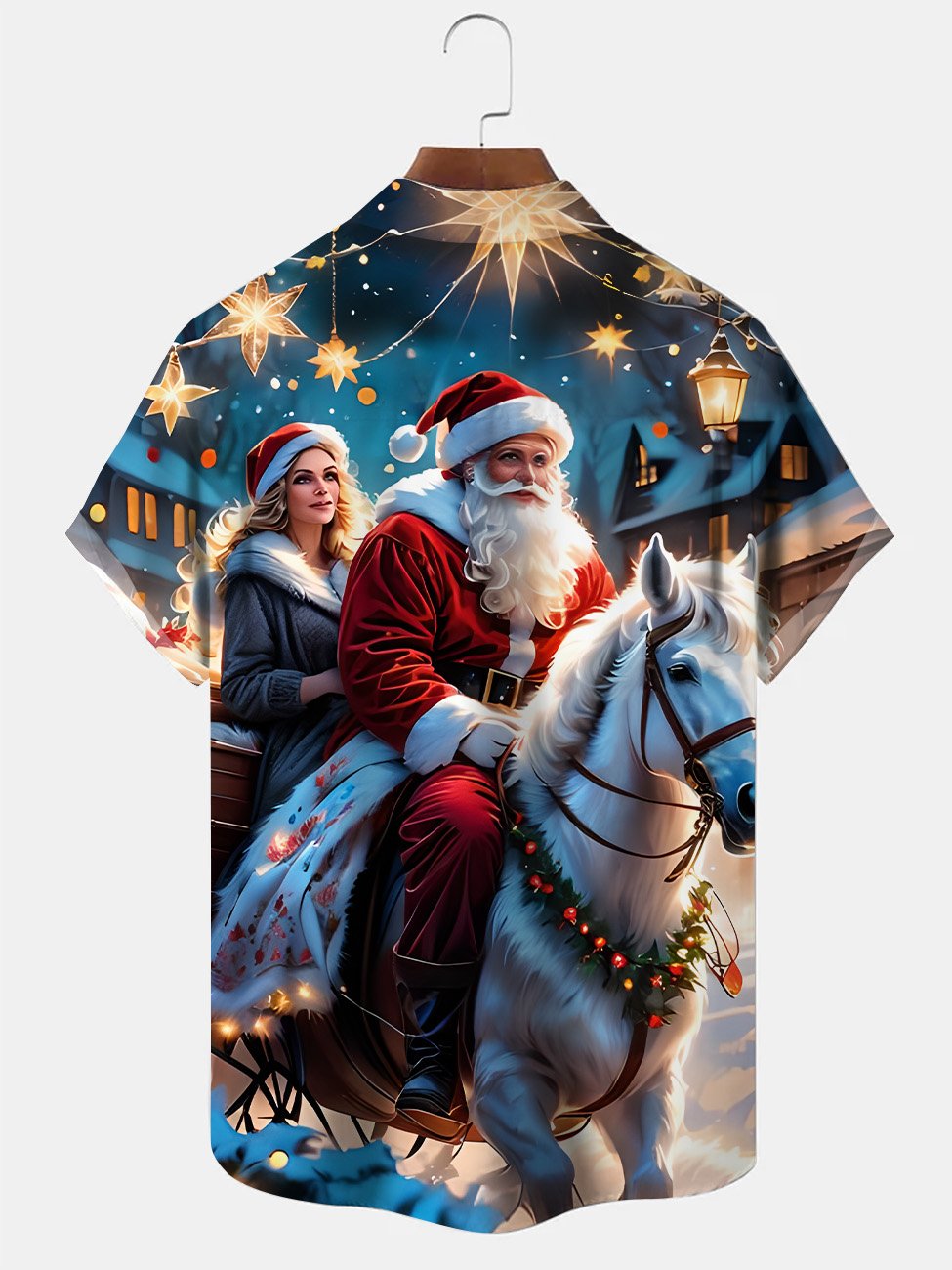 Alohadaddy Christmas Button Pocket Casual Short Sleeve Shirt