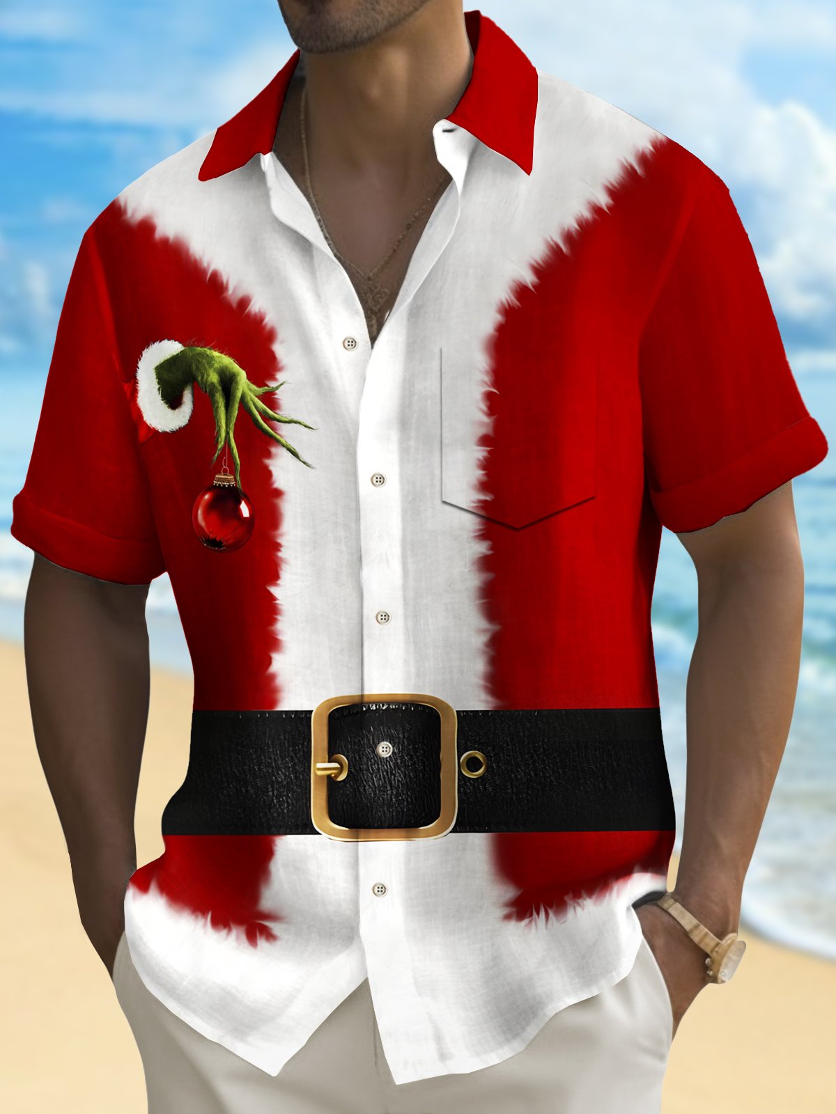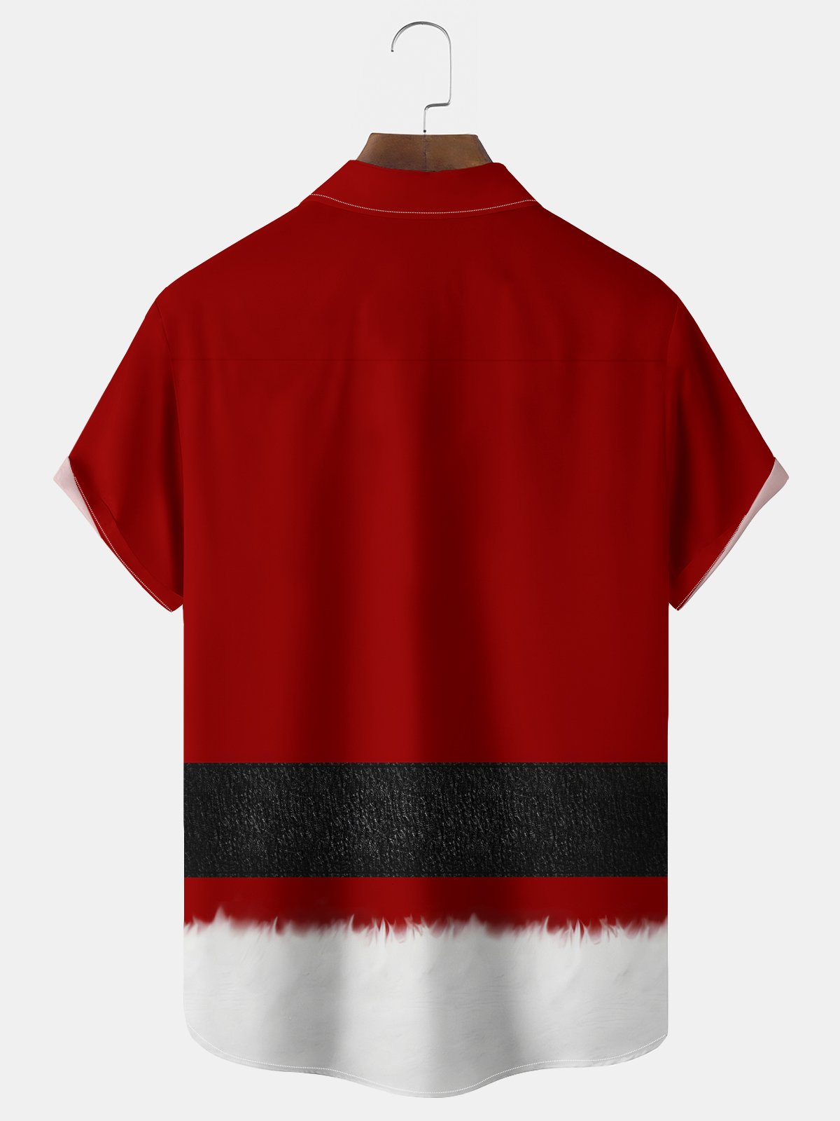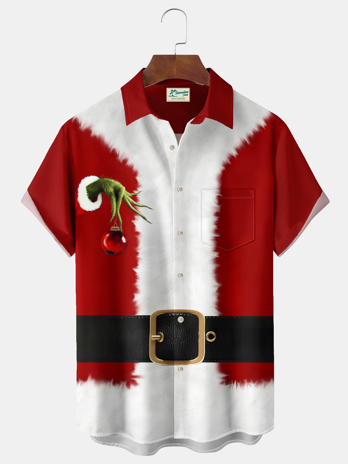 Alohadaddy Christmas Fun Cartoon Print Men's Chest Pocket Stretch Shirt Big Tall