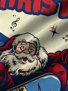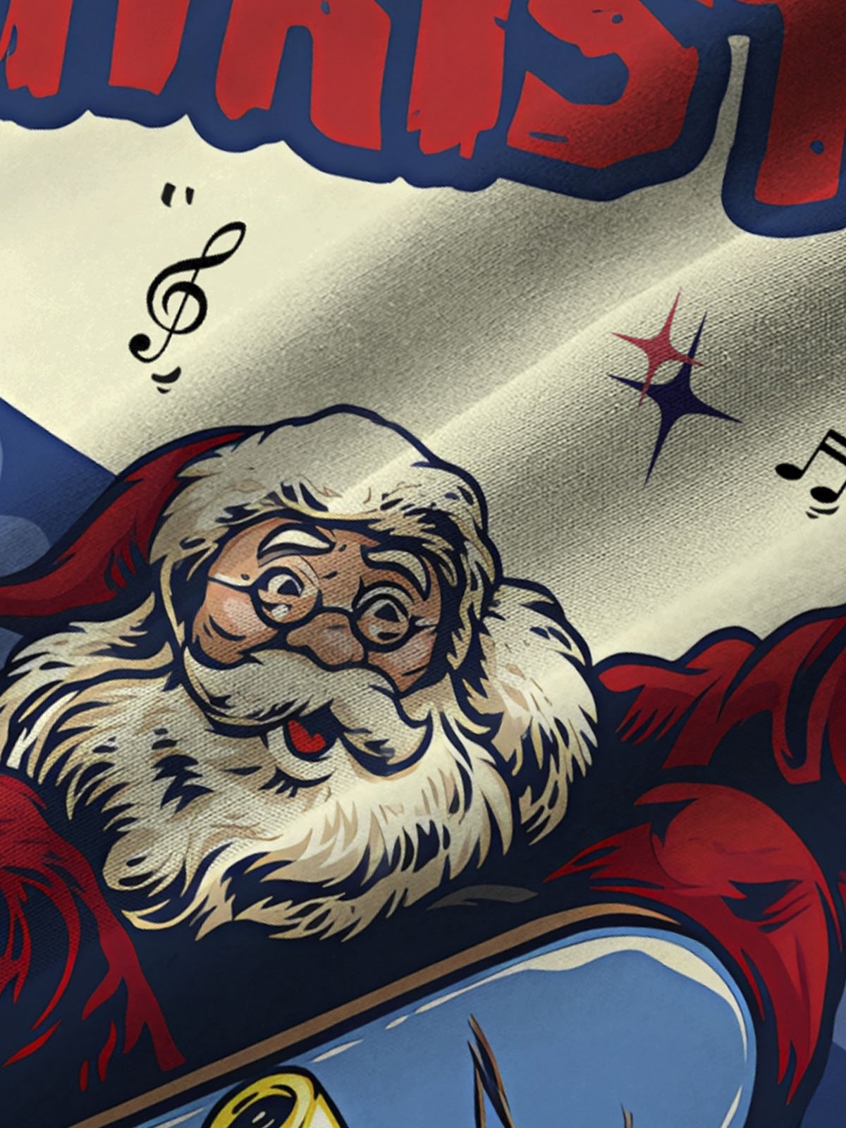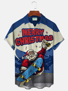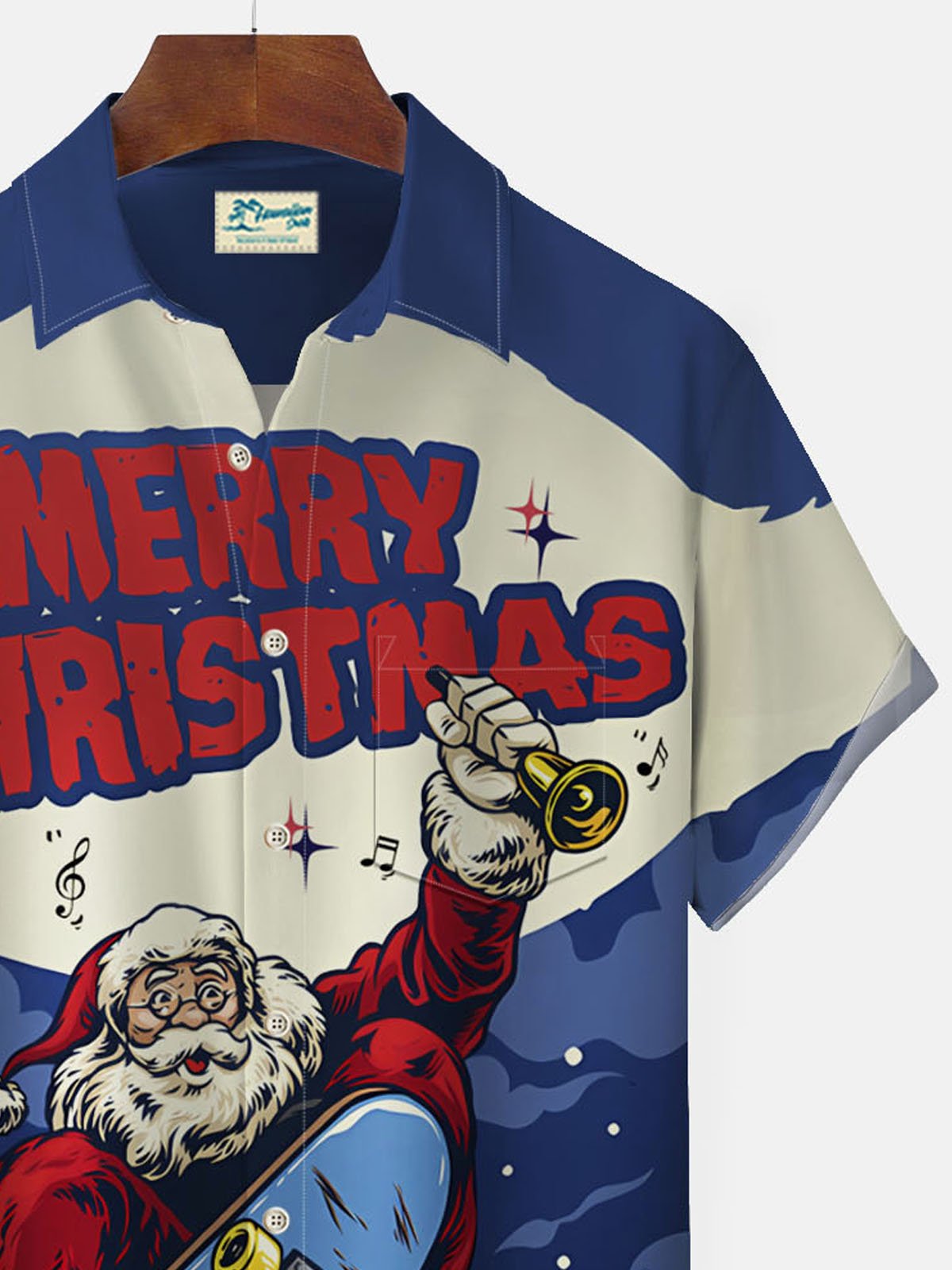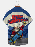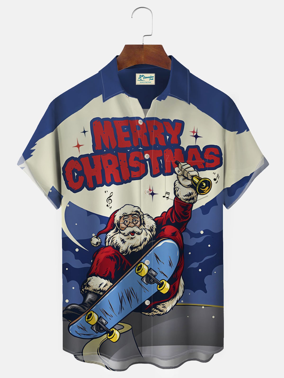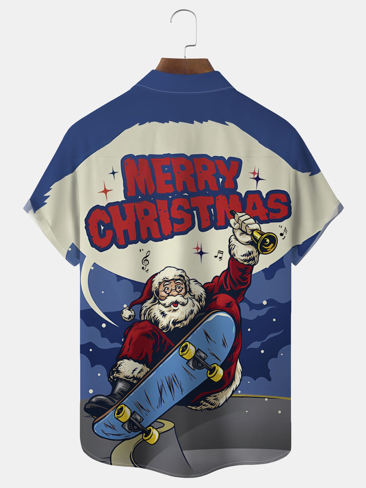 Alohadaddy Christmas Holiday Blue Men's Hawaiian Shirts Skateboard Santa Claus Cartoon Stretch Pocket Shirt Big Tall