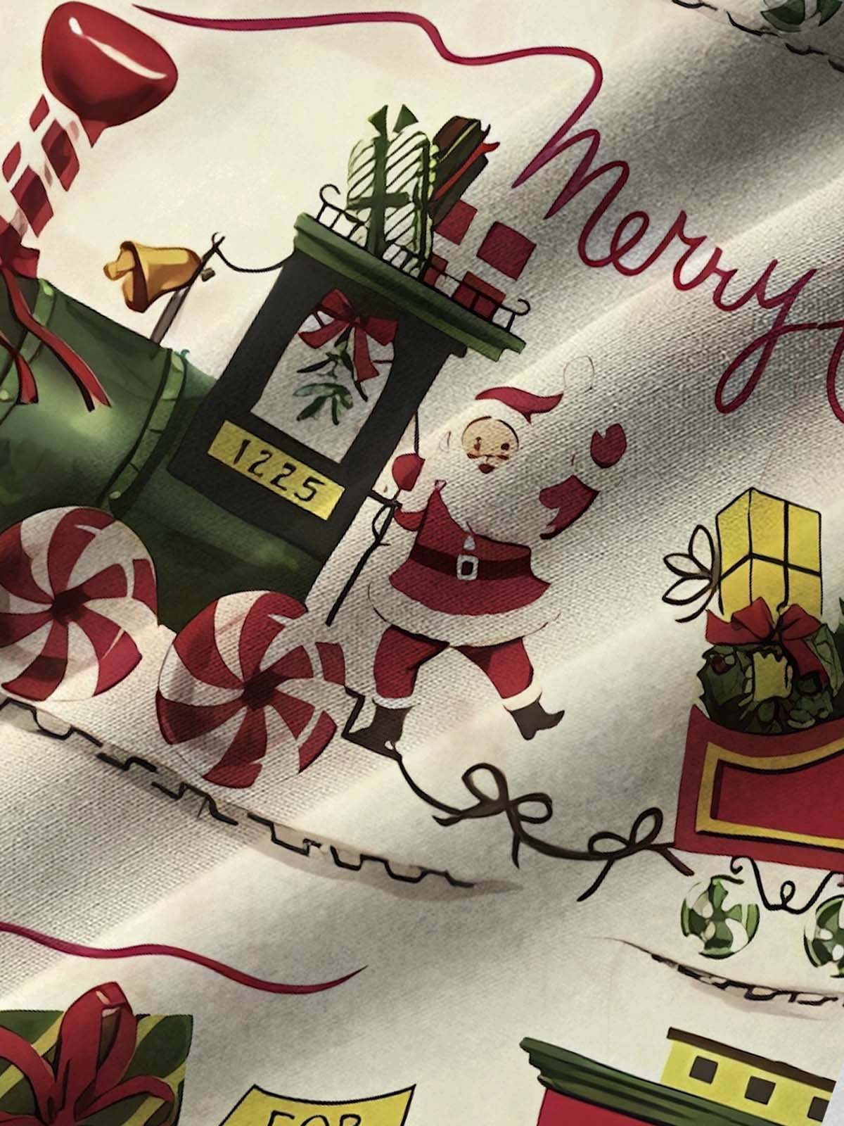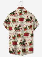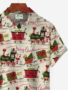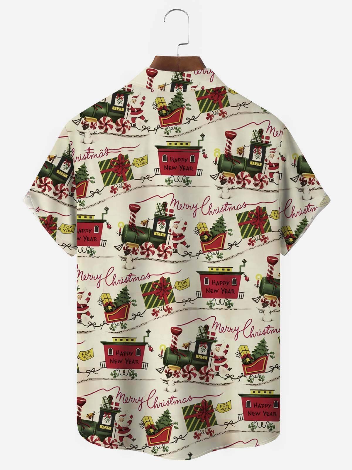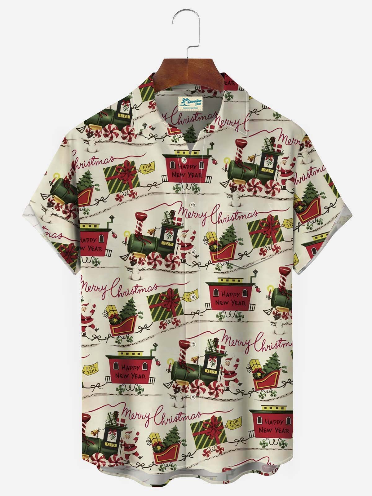 Alohadaddy Christmas Holiday Khaki Men's Hawaiian Shirt Santa Sleigh Fun Cartoon Plus Size Pocket Button-Down Shirts
