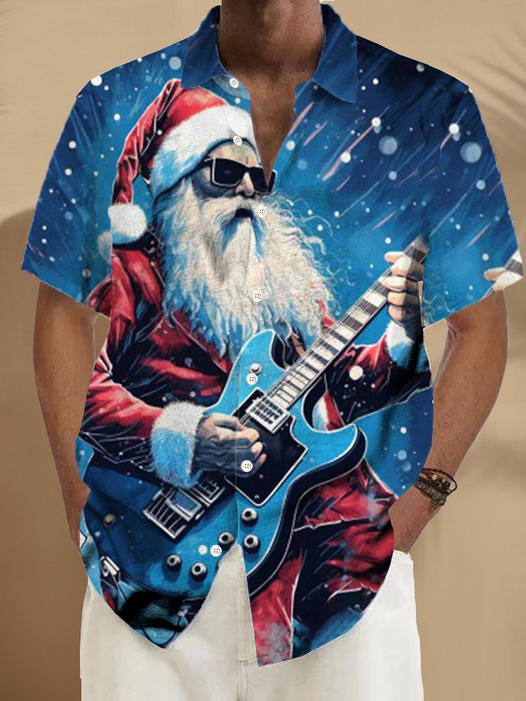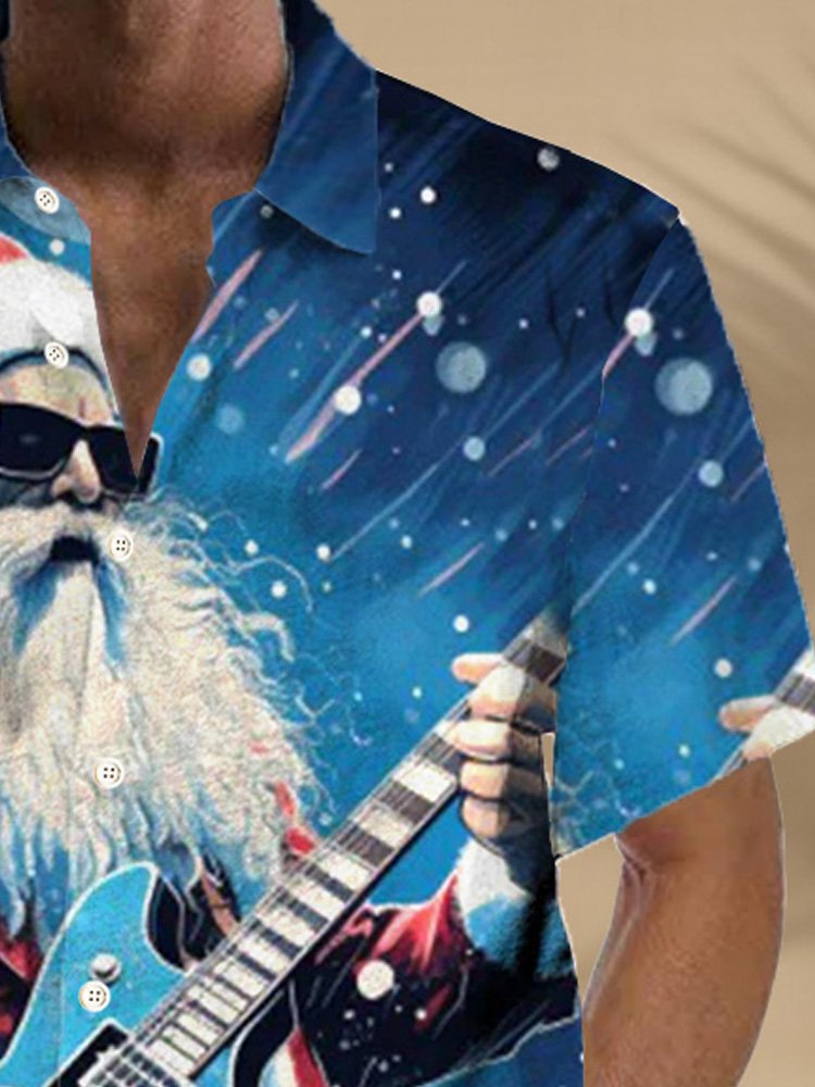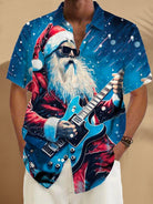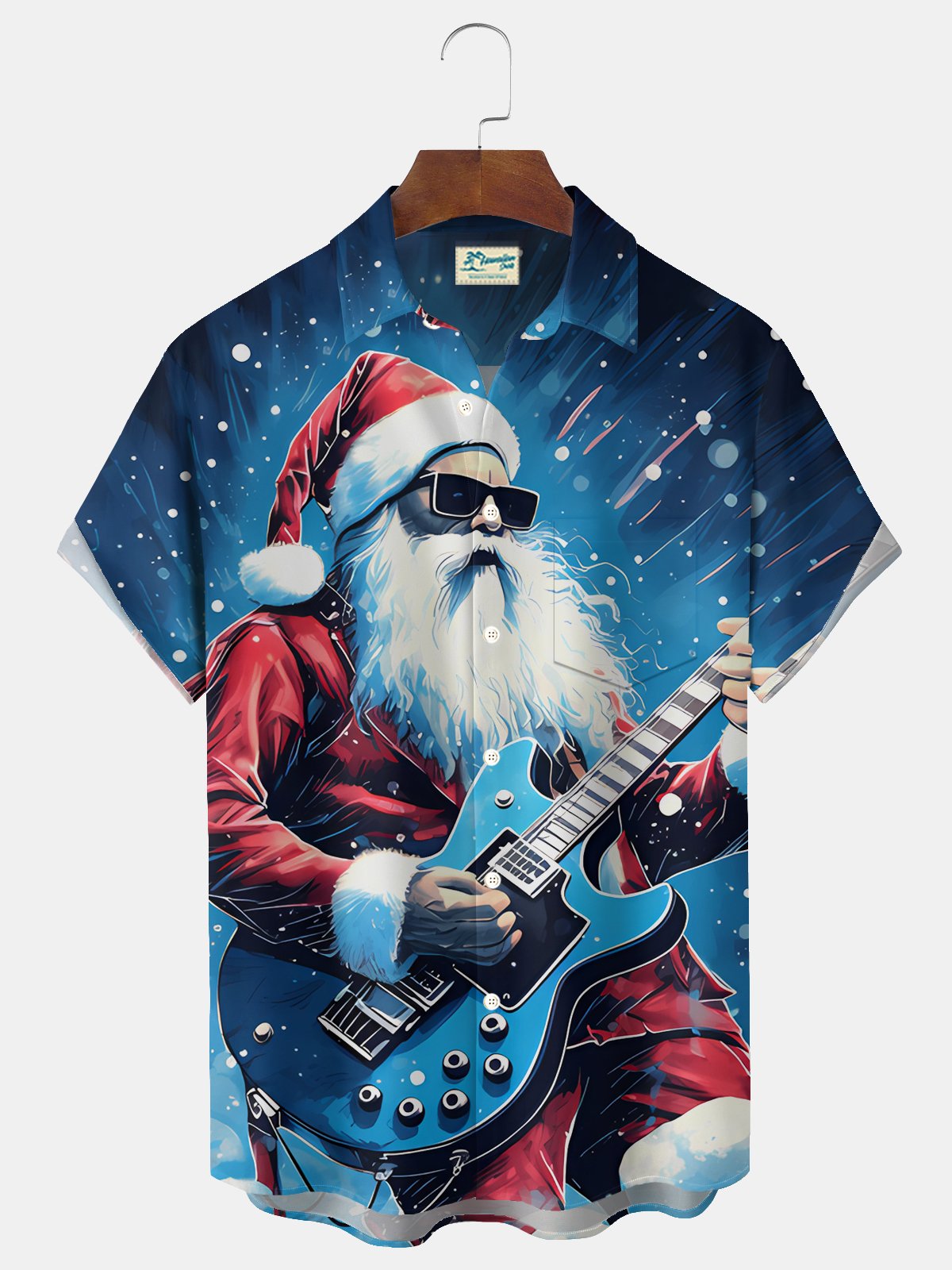 Alohadaddy Christmas Music Print Men's Button Pocket Short Sleeve Shirt