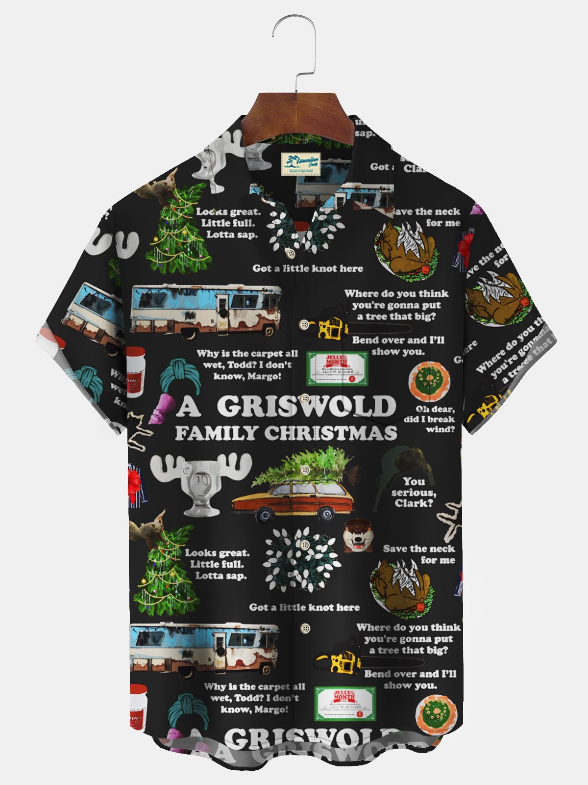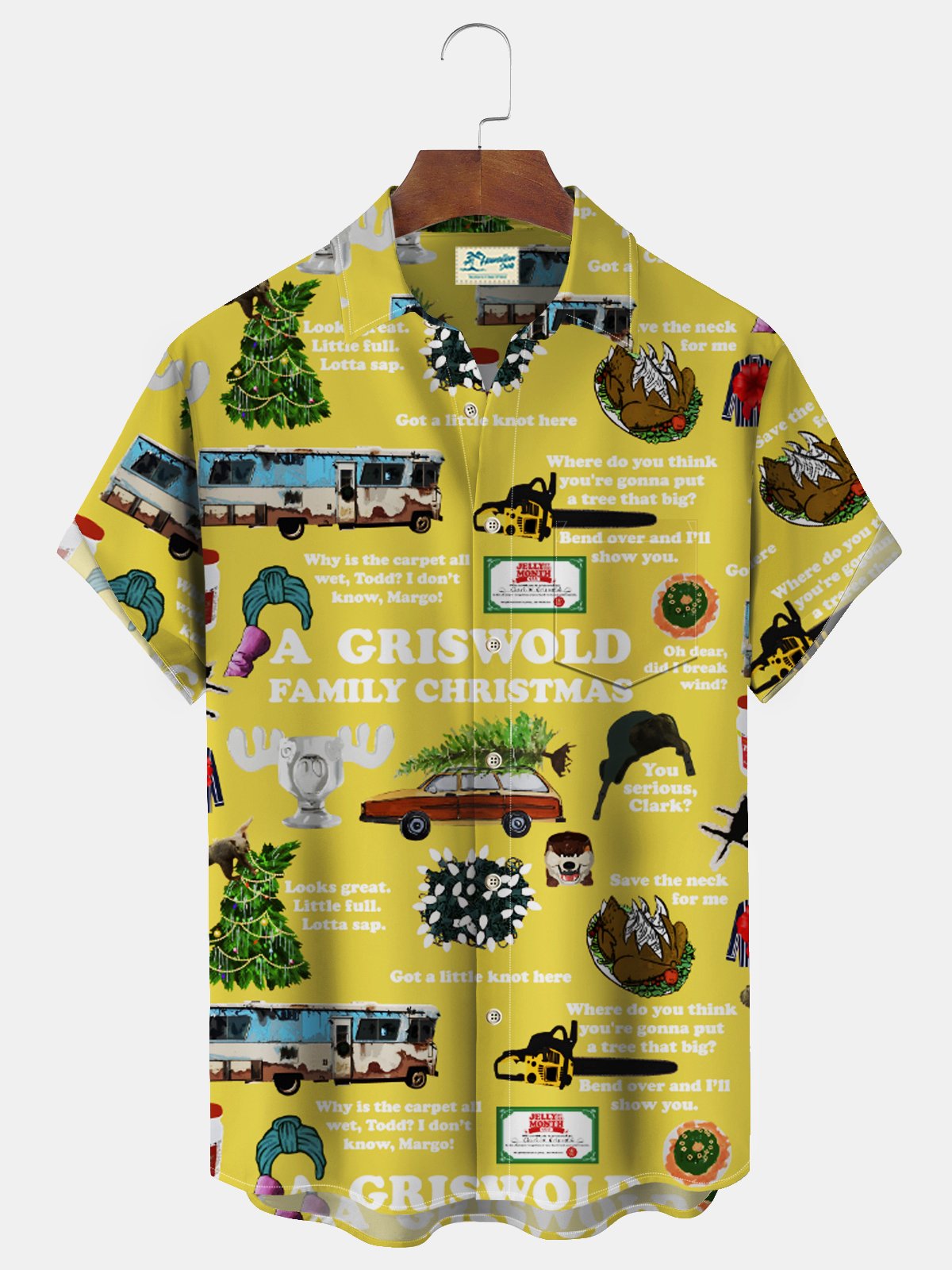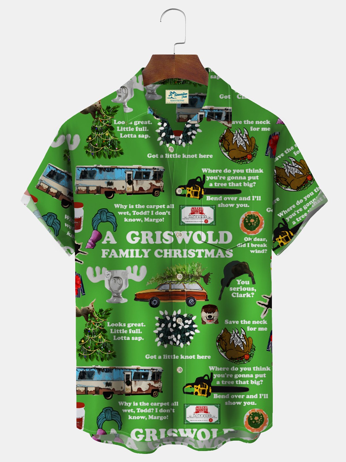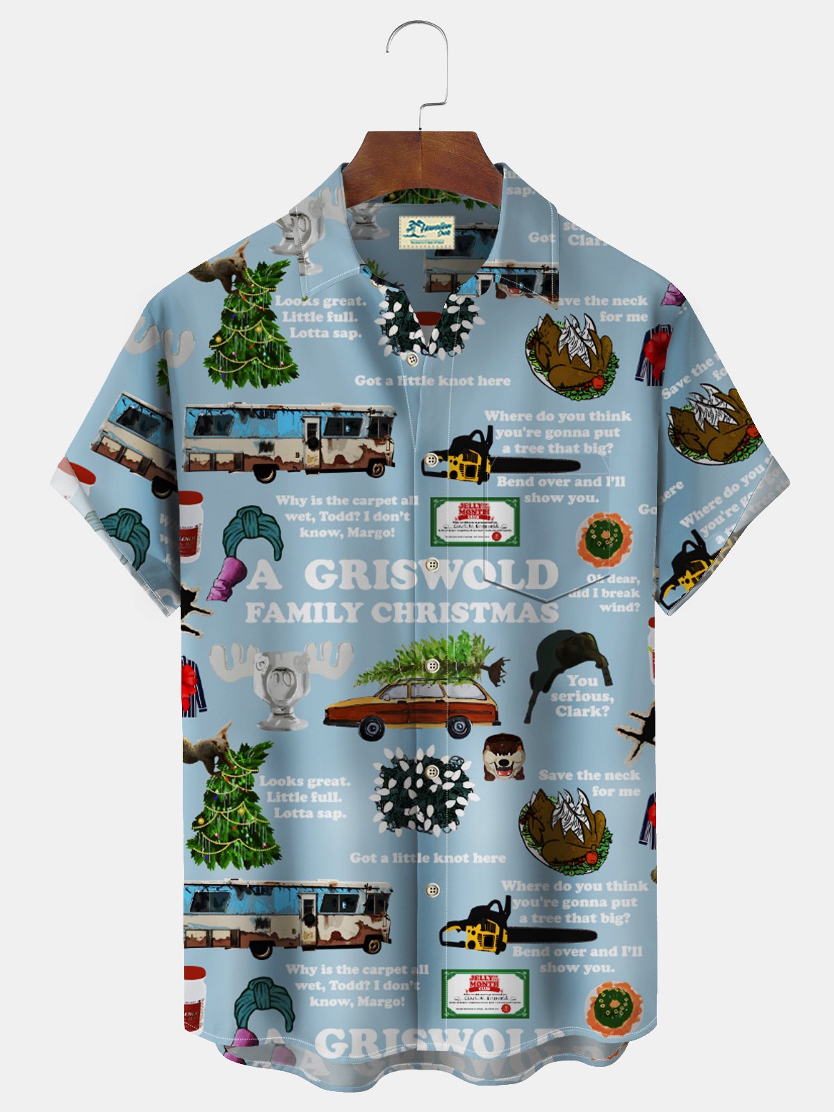 Alohadaddy Christmas Red Men's Hawaiian Shirt Stretch Aloha Pocket Cartoon Camp Shirts