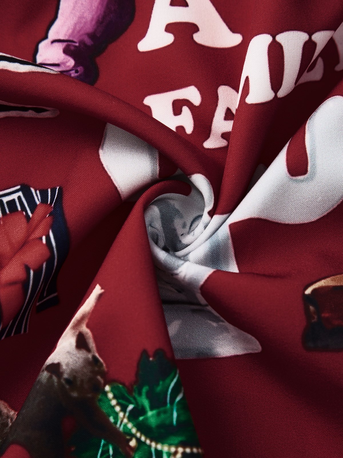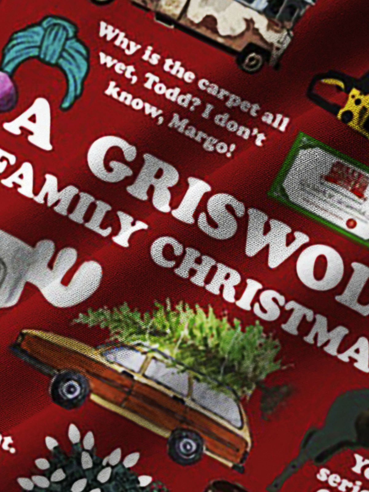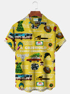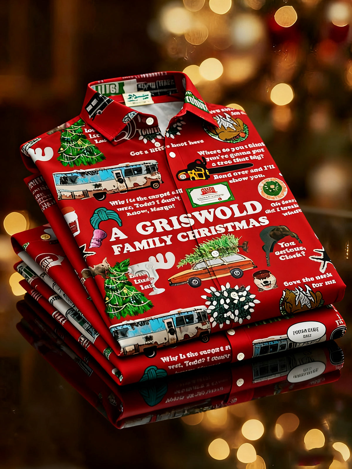 Alohadaddy Christmas Red Men's Hawaiian Shirt Stretch Aloha Pocket Cartoon Camp Shirts