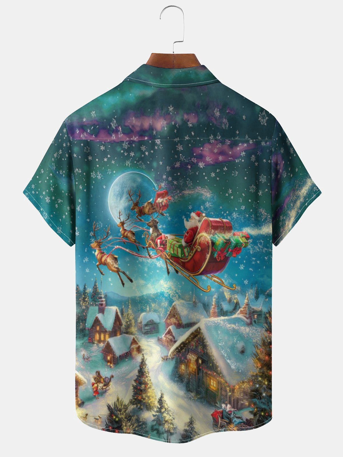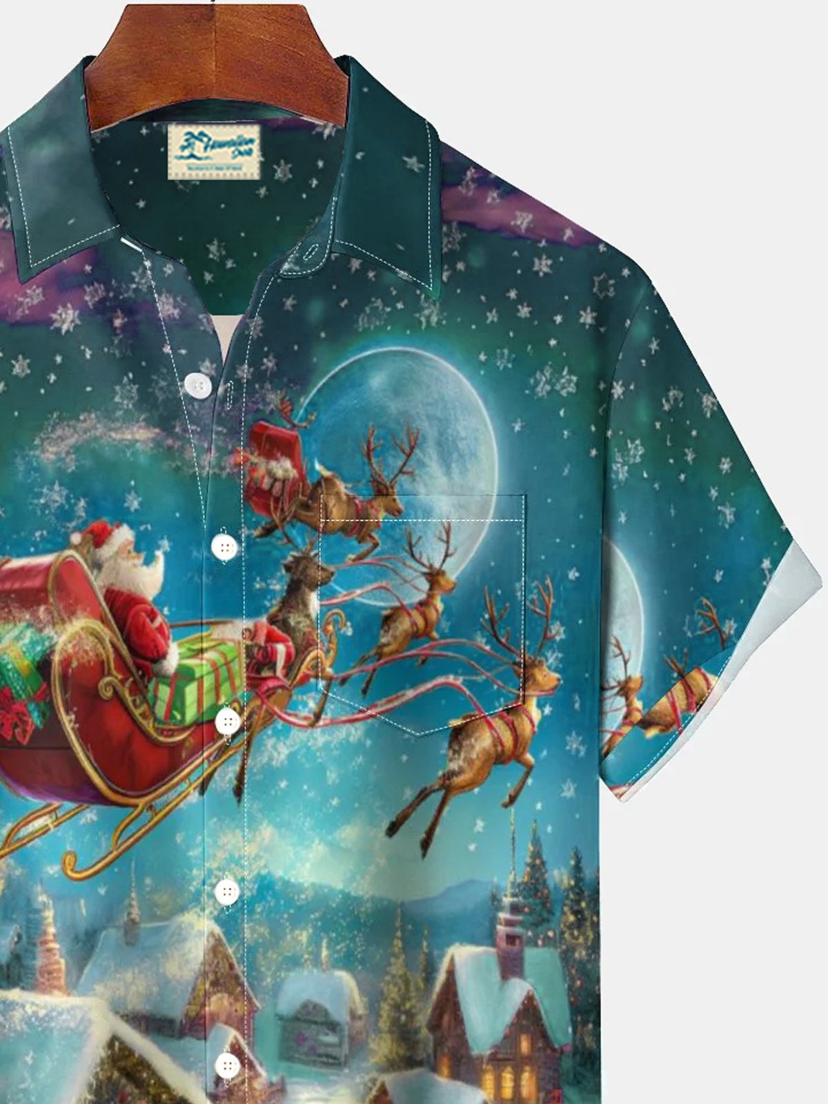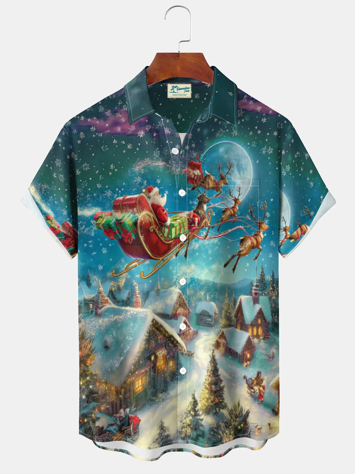 Alohadaddy Christmas Santa 3D Digital Print Men's Button Pocket Short Sleeve Shirt Big & Tall