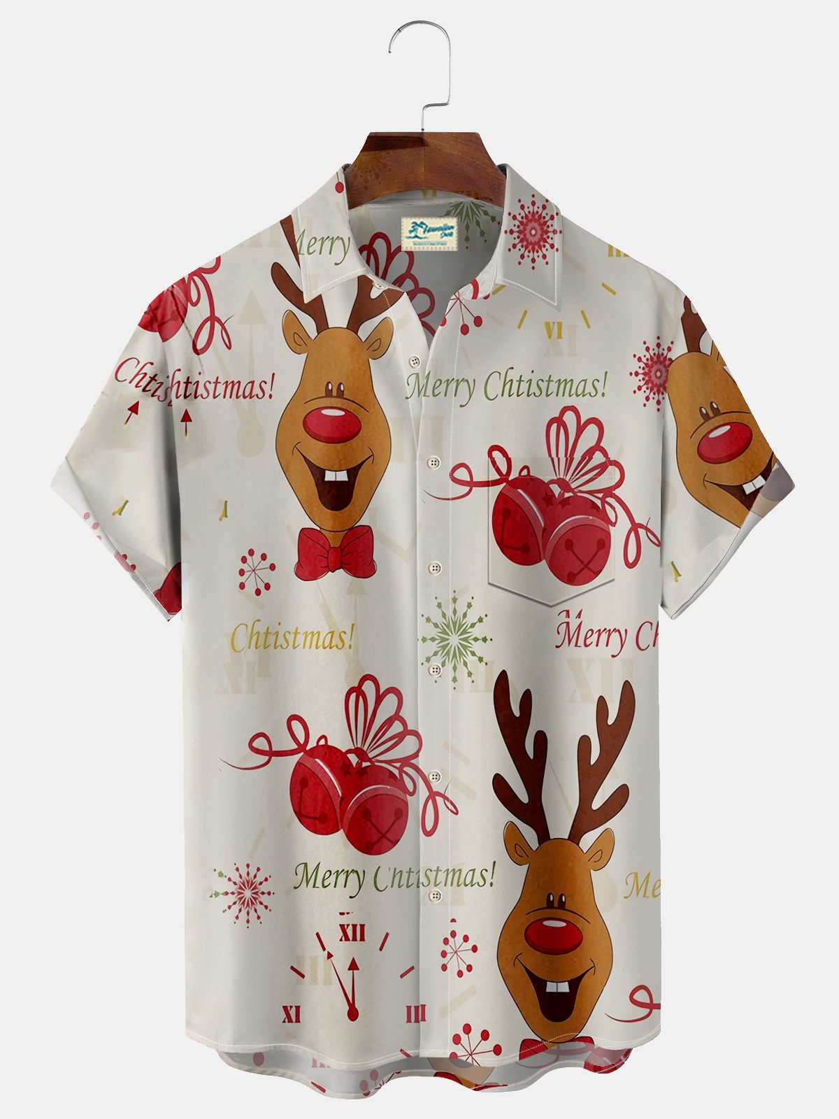 Alohadaddy Christmas Sika Deer Print Men's Button Pocket Shirt