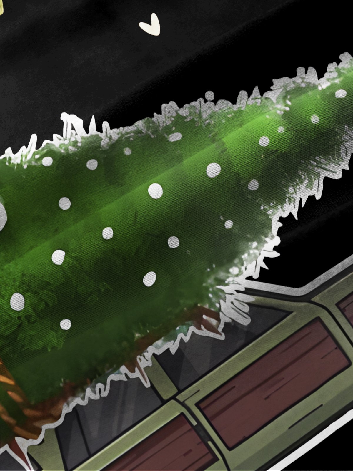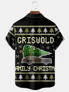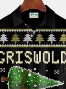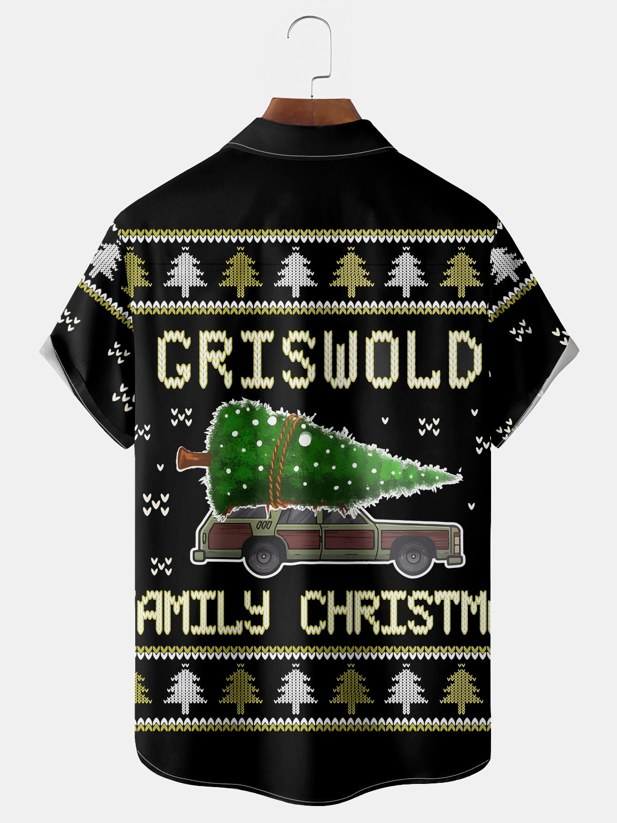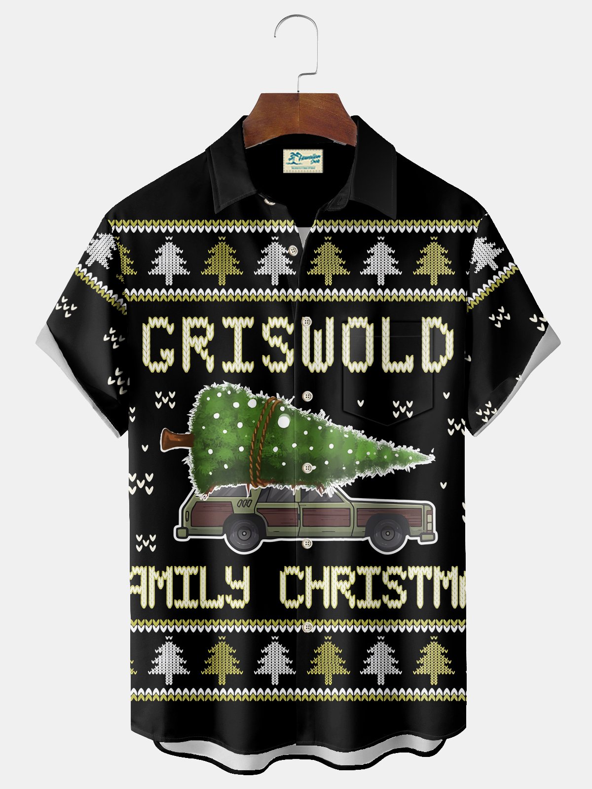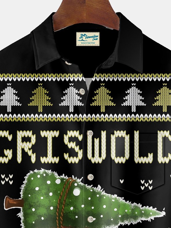 Alohadaddy Christmas Vacation Cartoon Print Men's Chest Pocket Stretch Shirt Big Tall