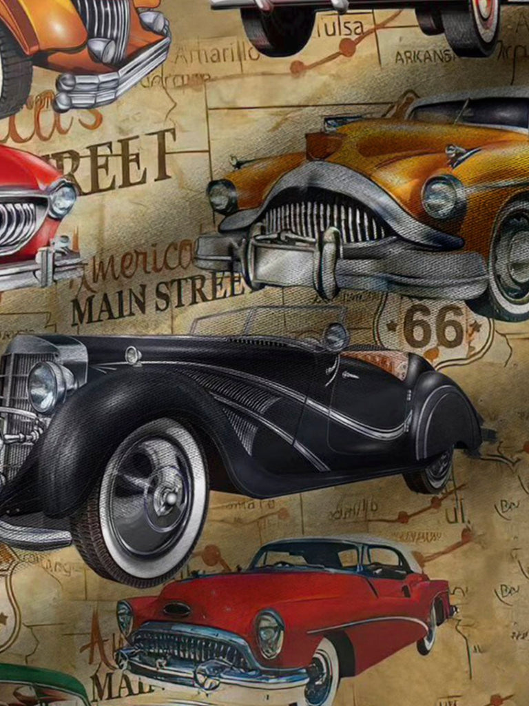 Alohadaddy Classic Cars In The City Print Men's Hawaiian Oversized Shirt with Pockets
