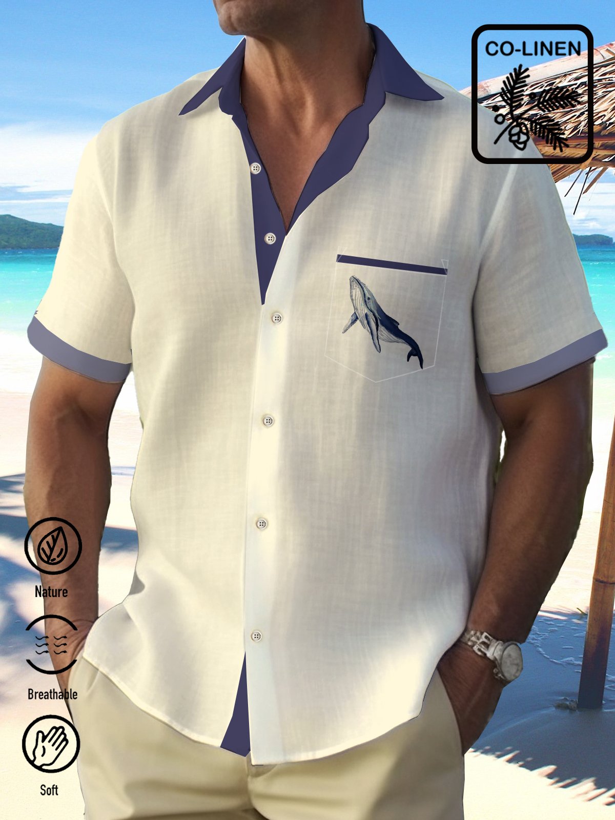 Alohadaddy Cotton Linen Coconut Whale Basics Casual Print Men's Vacation Hawaiian Big And Tall Aloha Shirt