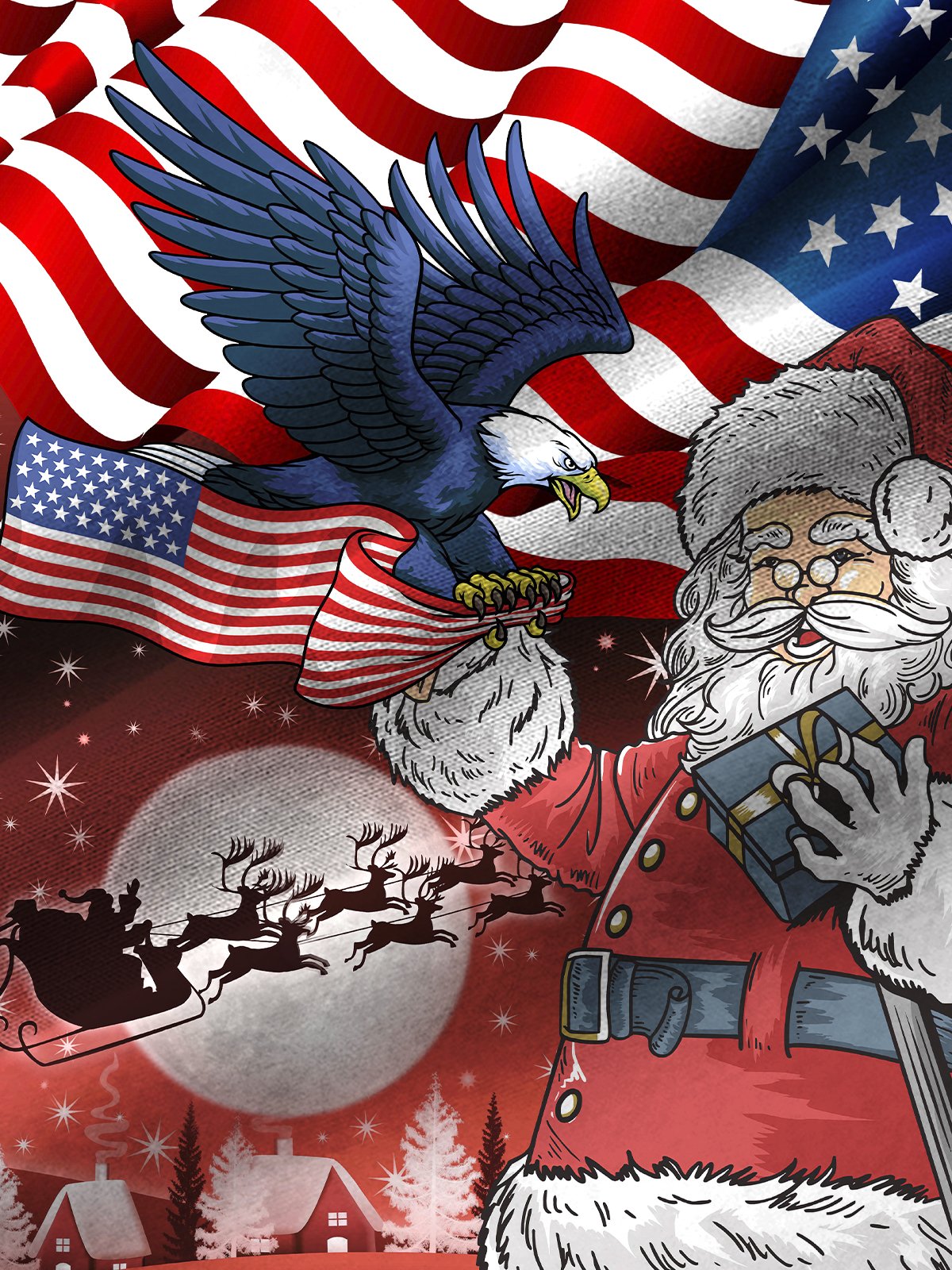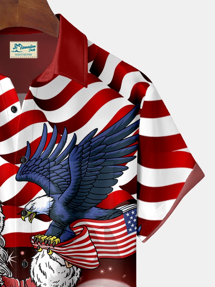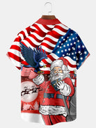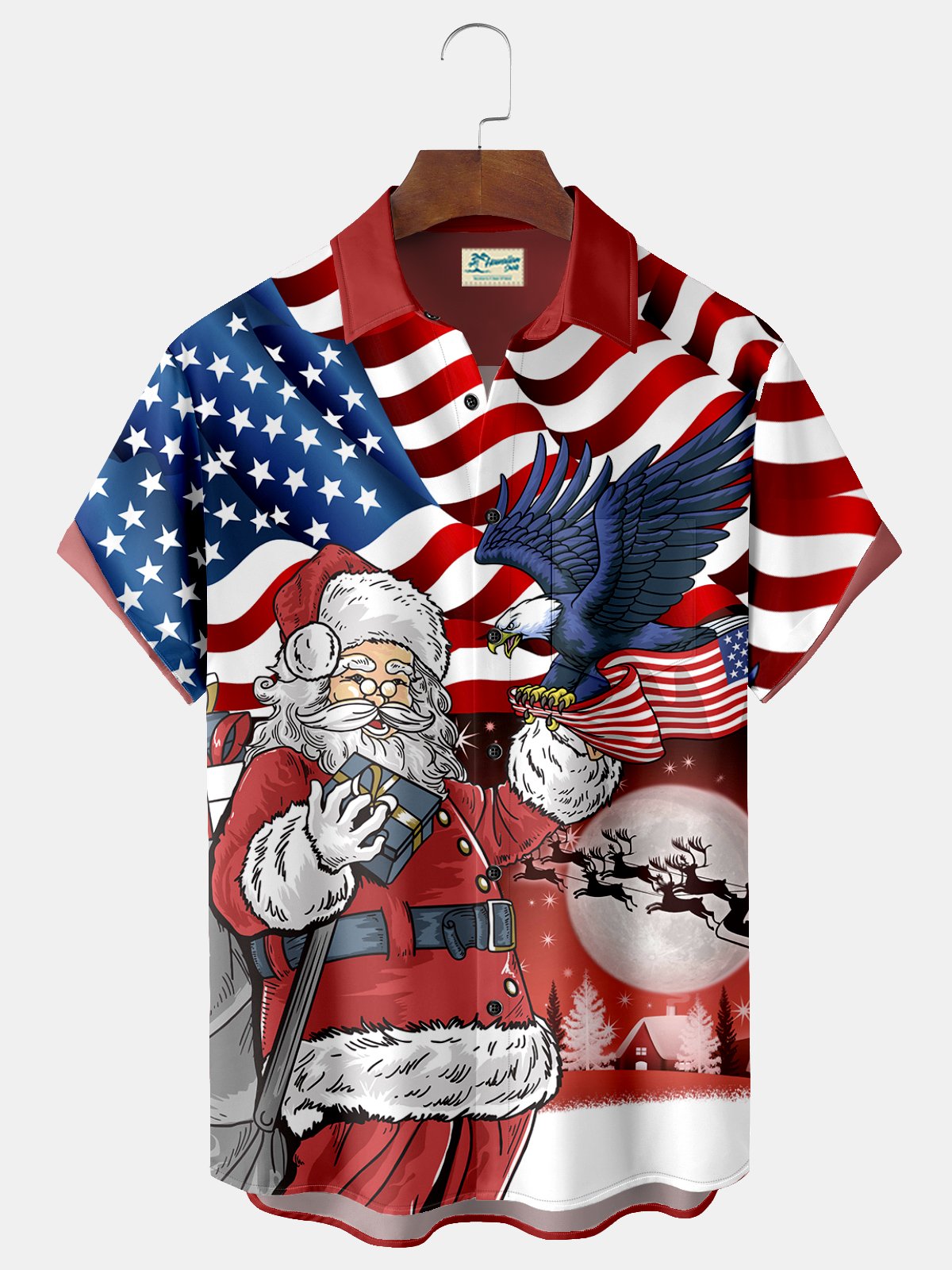 Alohadaddy Flag Eagle Santa Claus Print Men's Hawaiian Oversized Shirt with Pockets