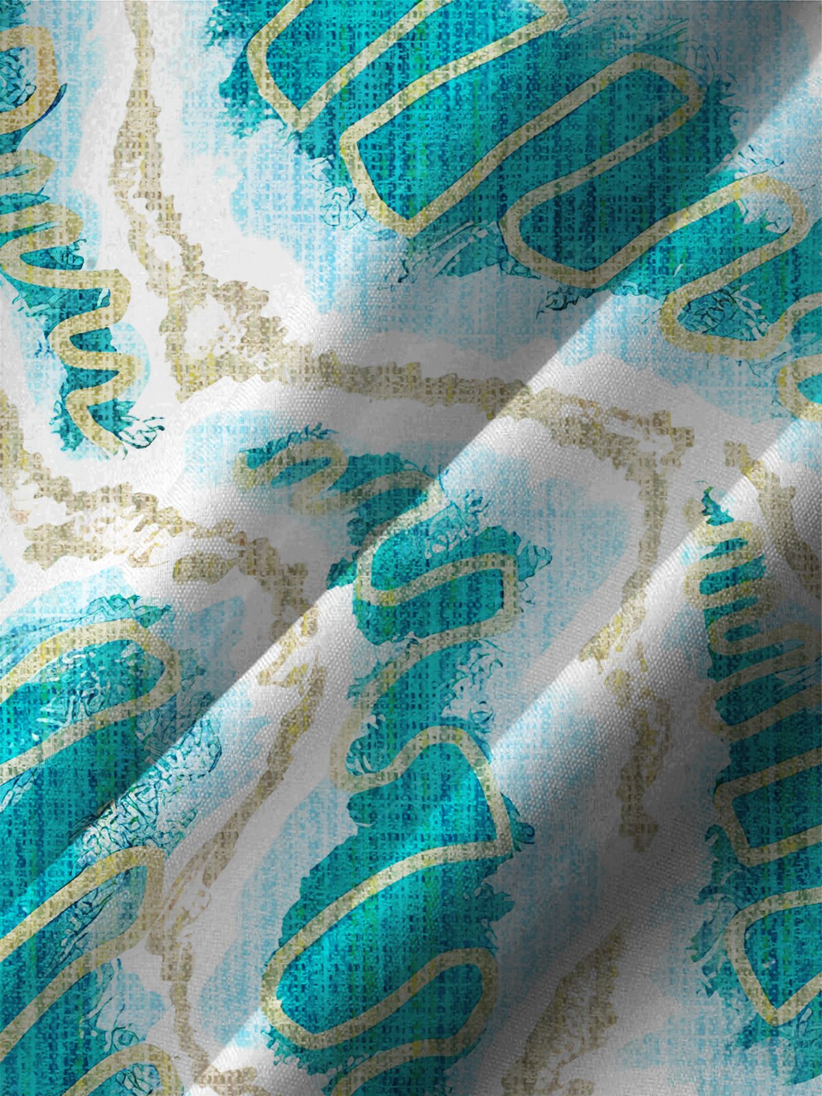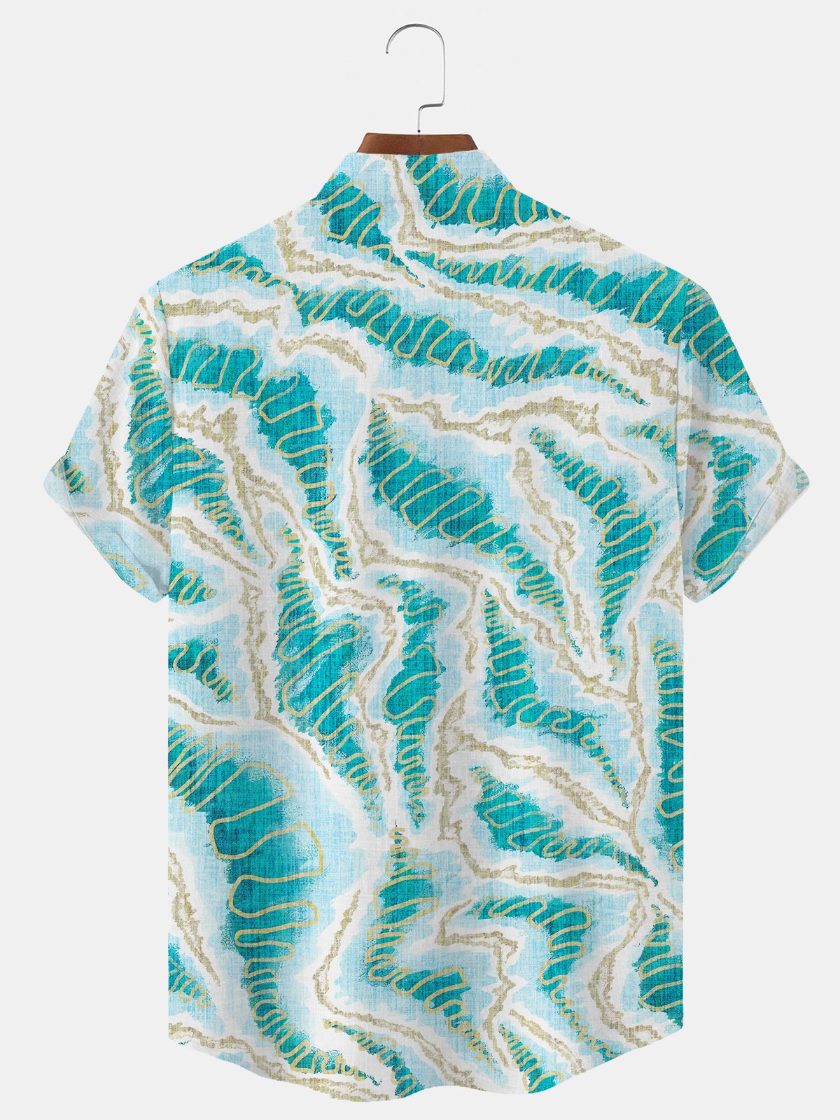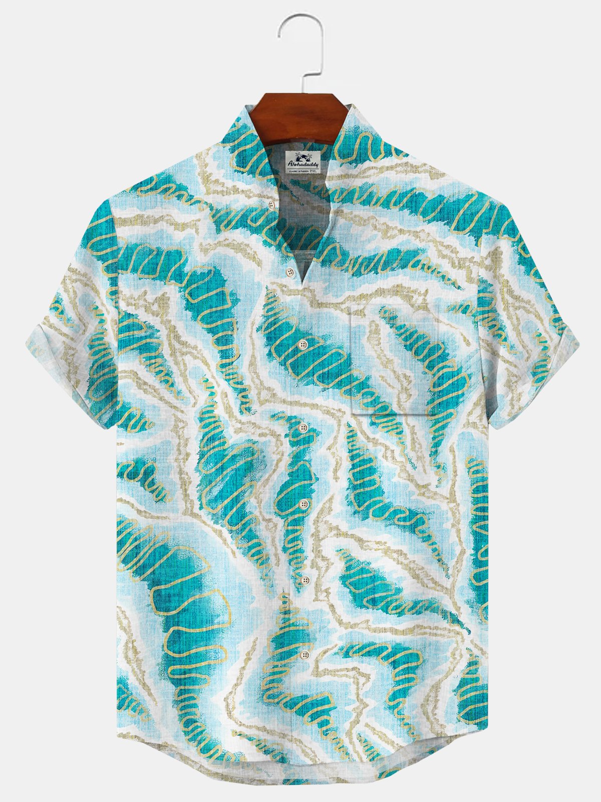 Alohadaddy Geometric Button Pocket Casual Short Sleeve Stand Collar Shirt