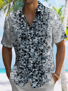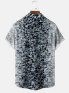 Alohadaddy Geometric Gradient Button Pocket Casual Short Sleeve Shirt