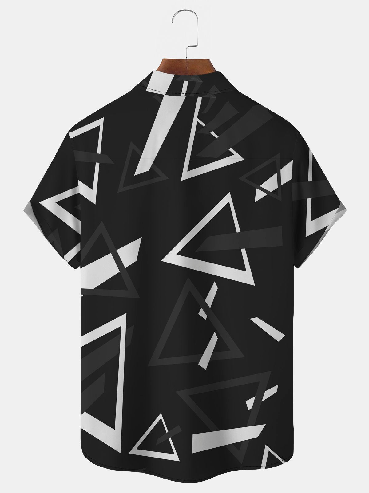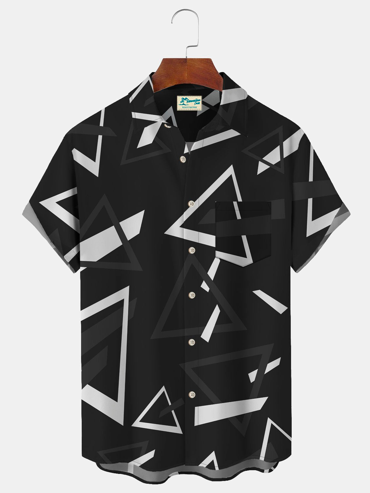 Alohadaddy Geometric Triangle Print Men's Button Pocket Short Sleeve Shirt