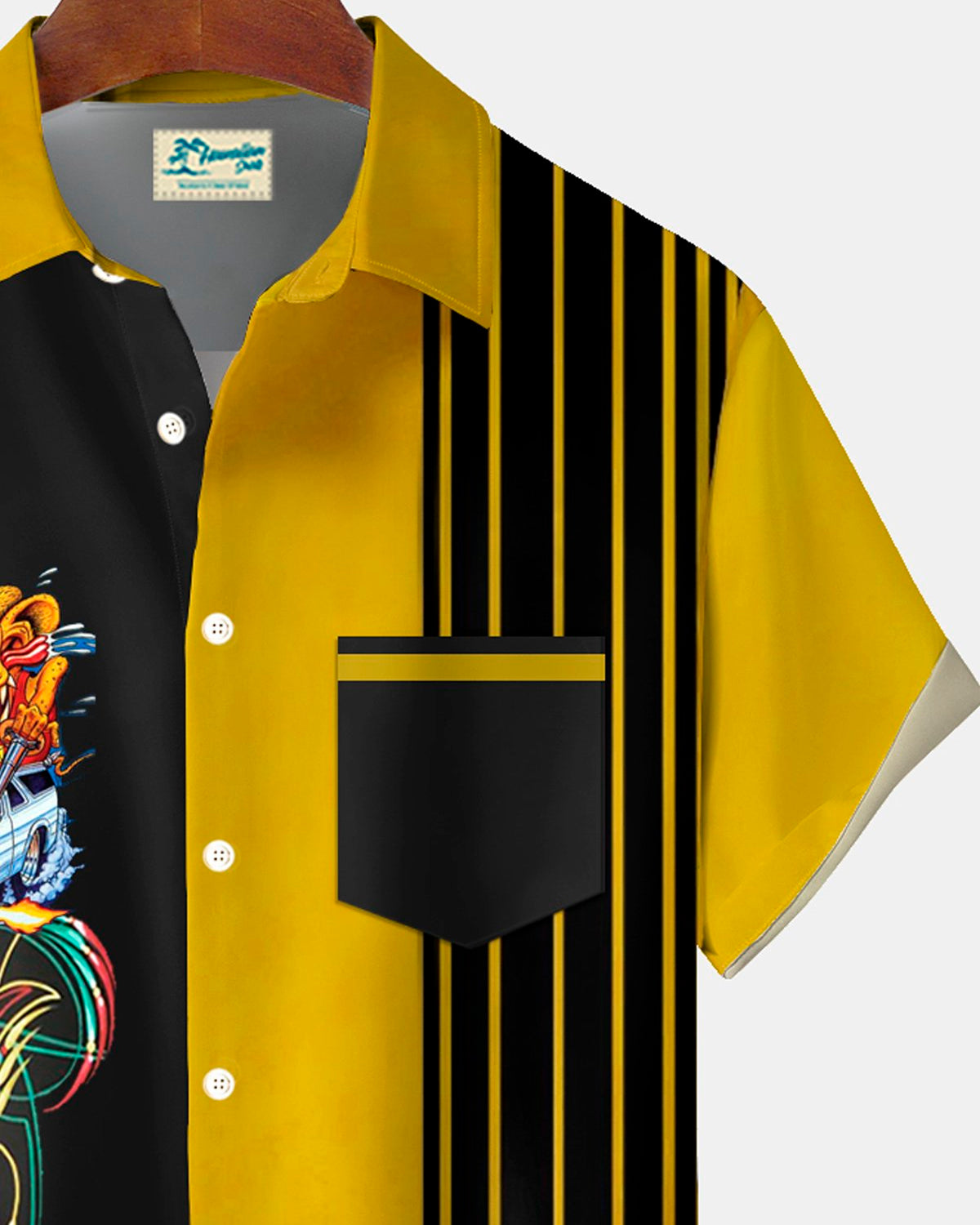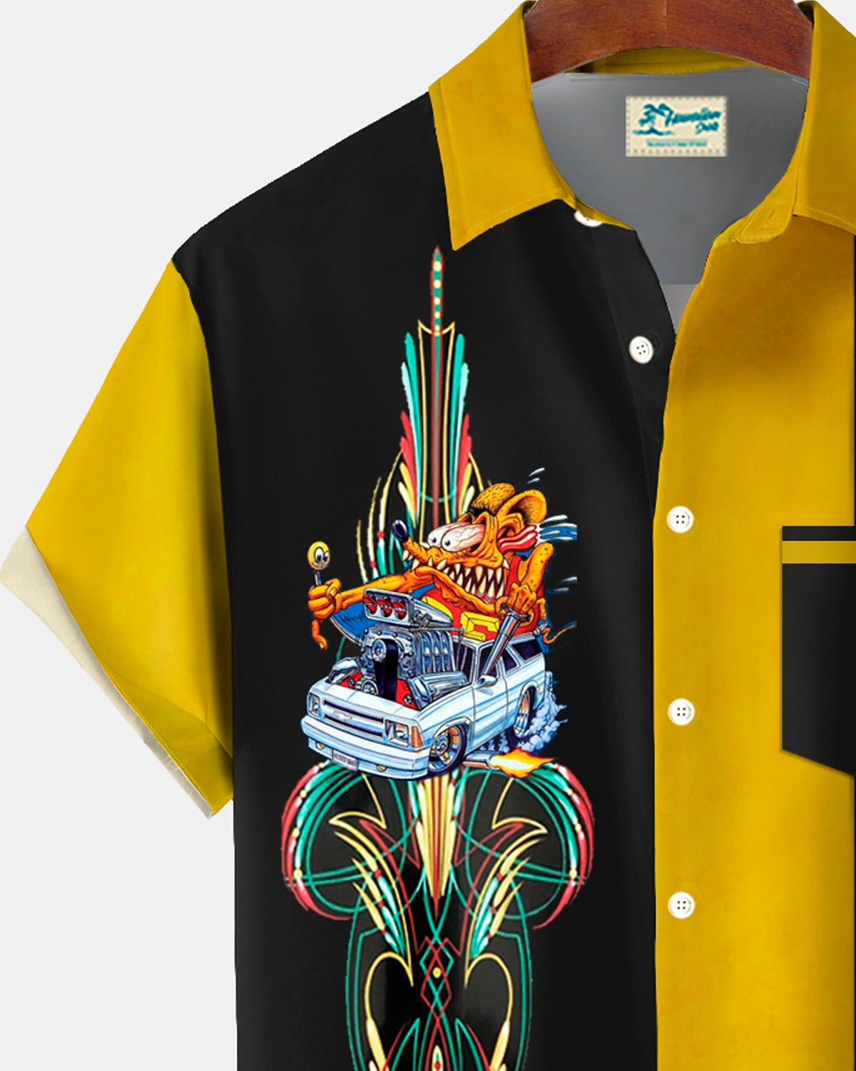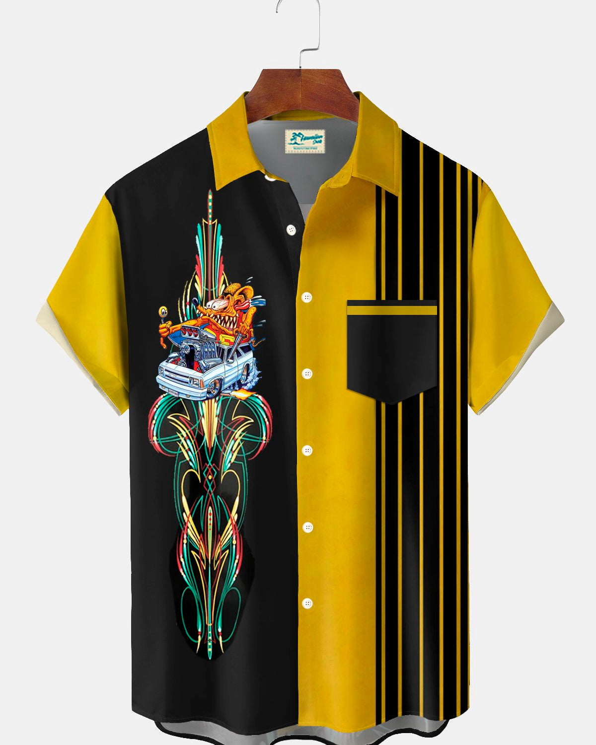 Alohadaddy Hawaiian Coconut Tree Gradient Sunset Landscape Print Men's Button Pocket Short Sleeve Shirt