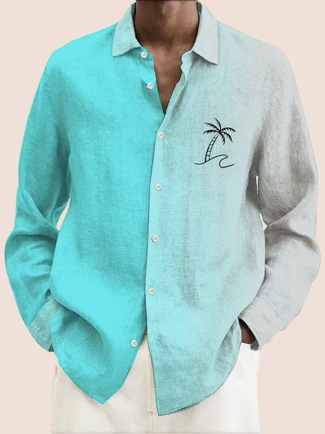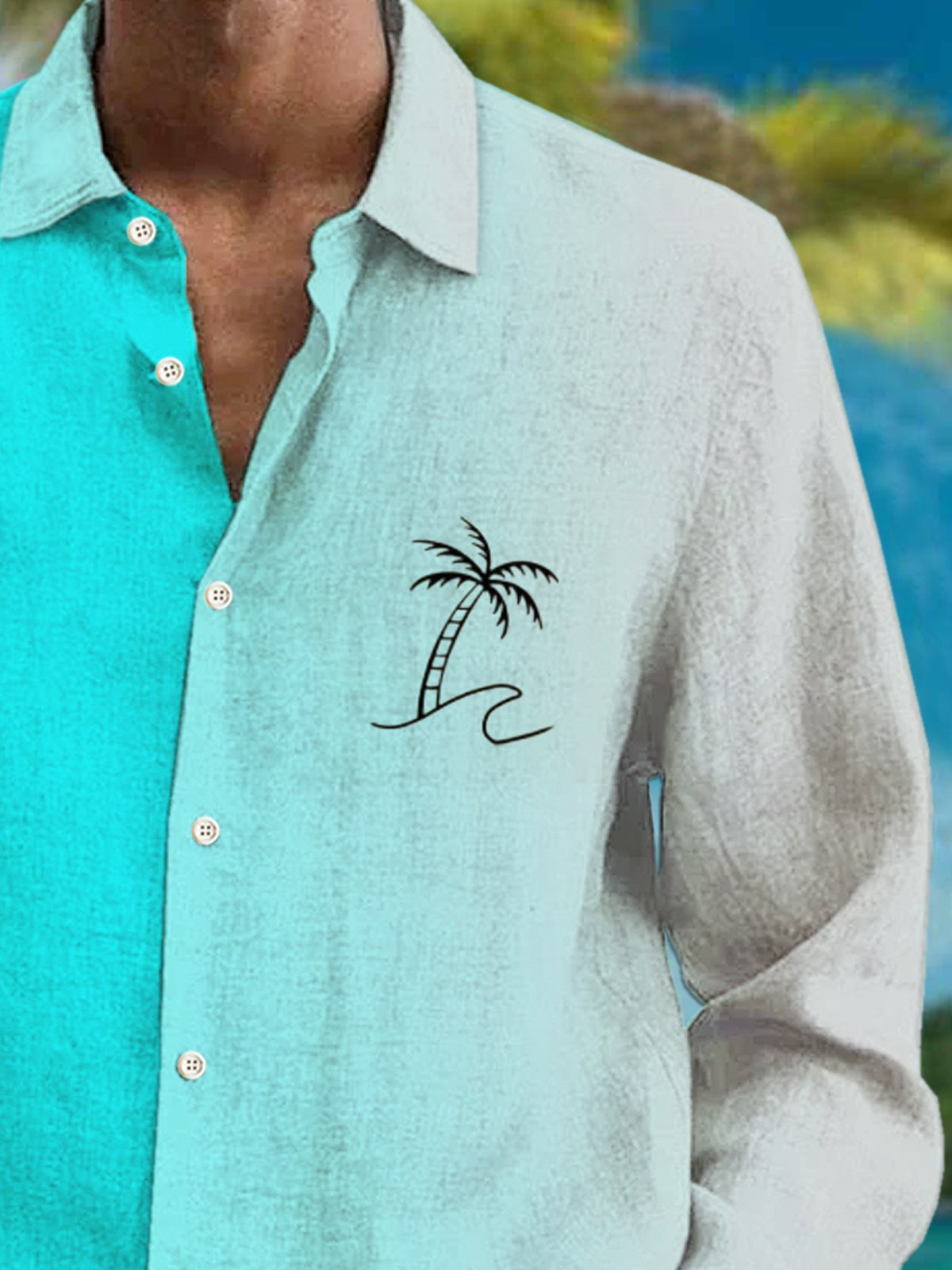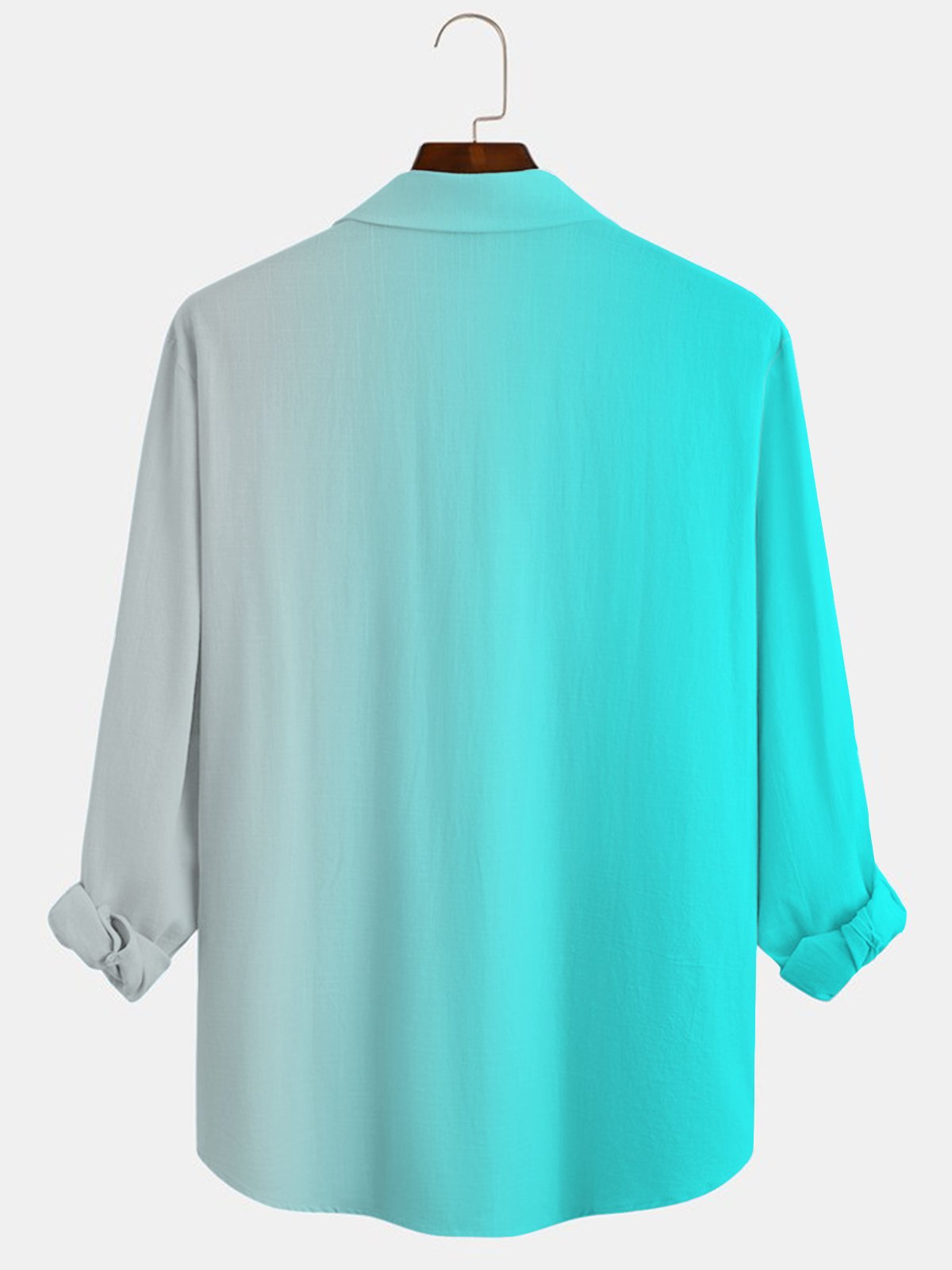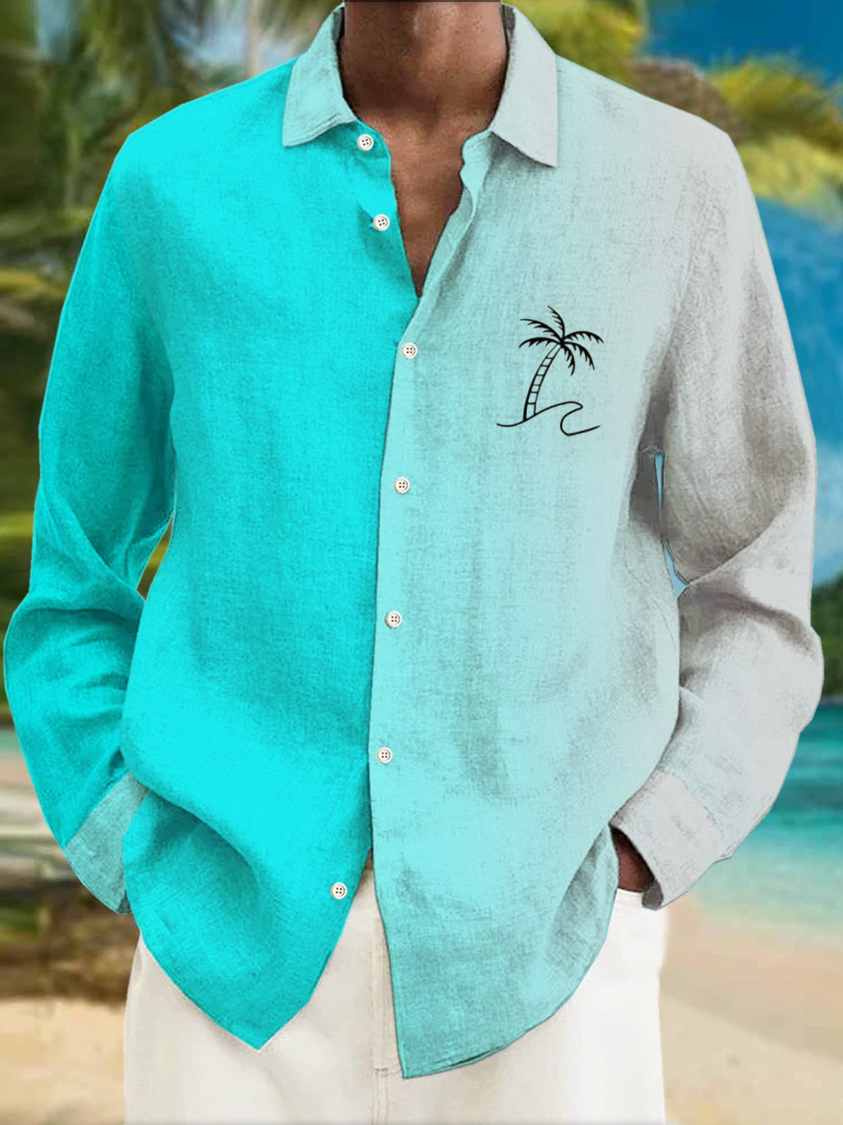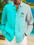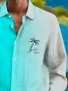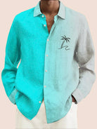 Alohadaddy Hawaiian Gradient Coconut Tree Print Men's Button Pocket Long Sleeve Shirt