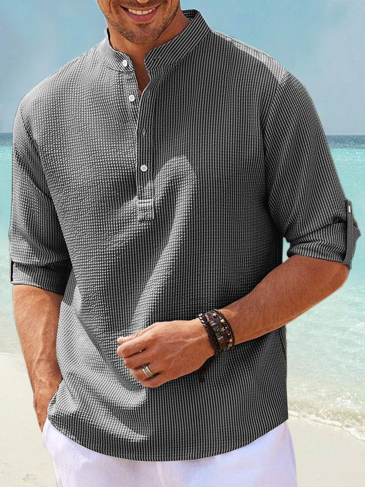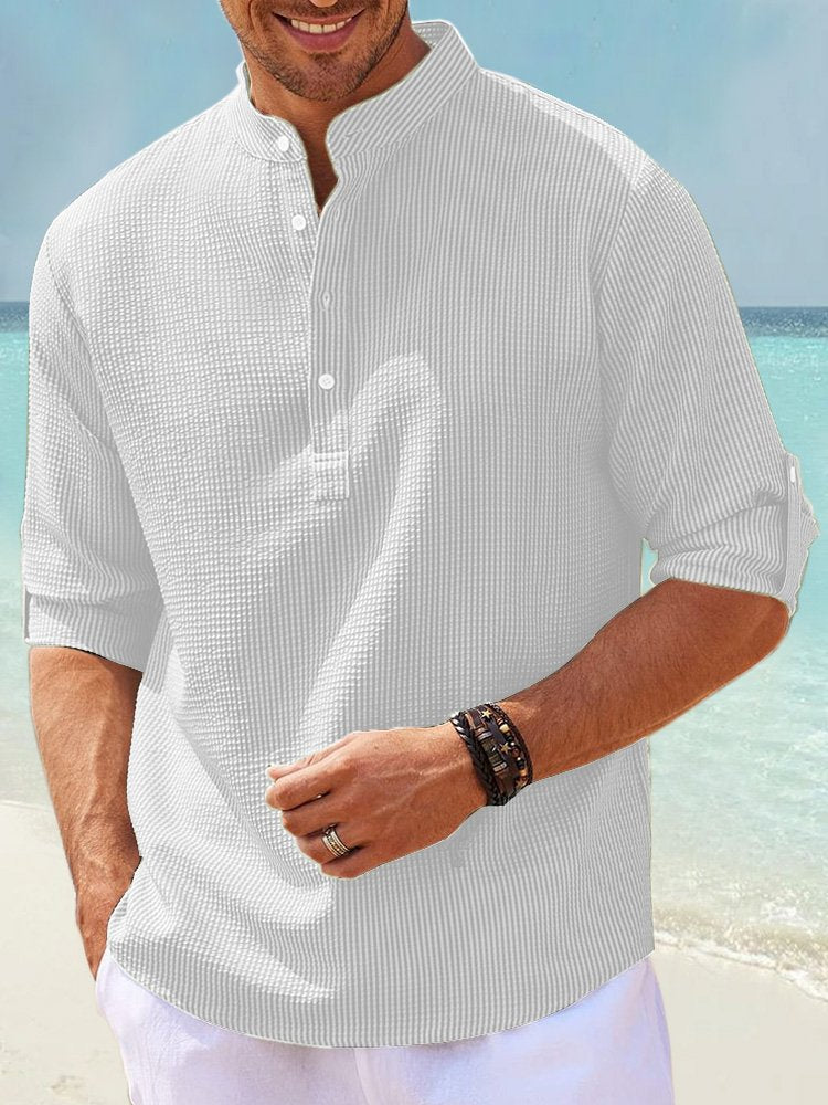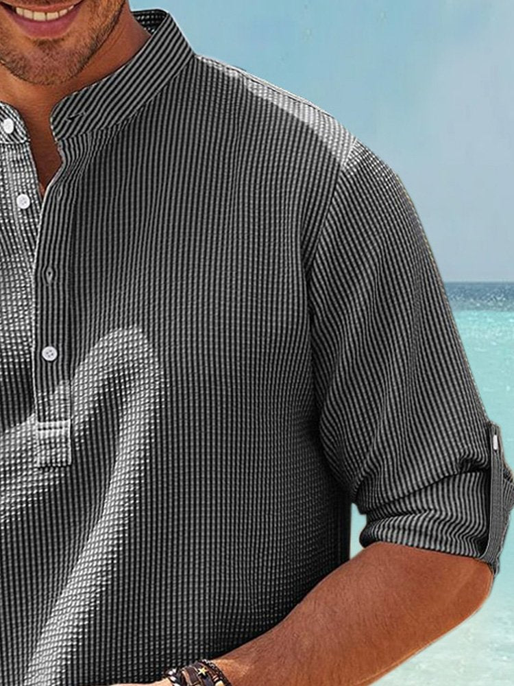 Alohadaddy Hawaiian Seersucker Cardigan Men's Button Down Long Sleeve Plus Size Shirt